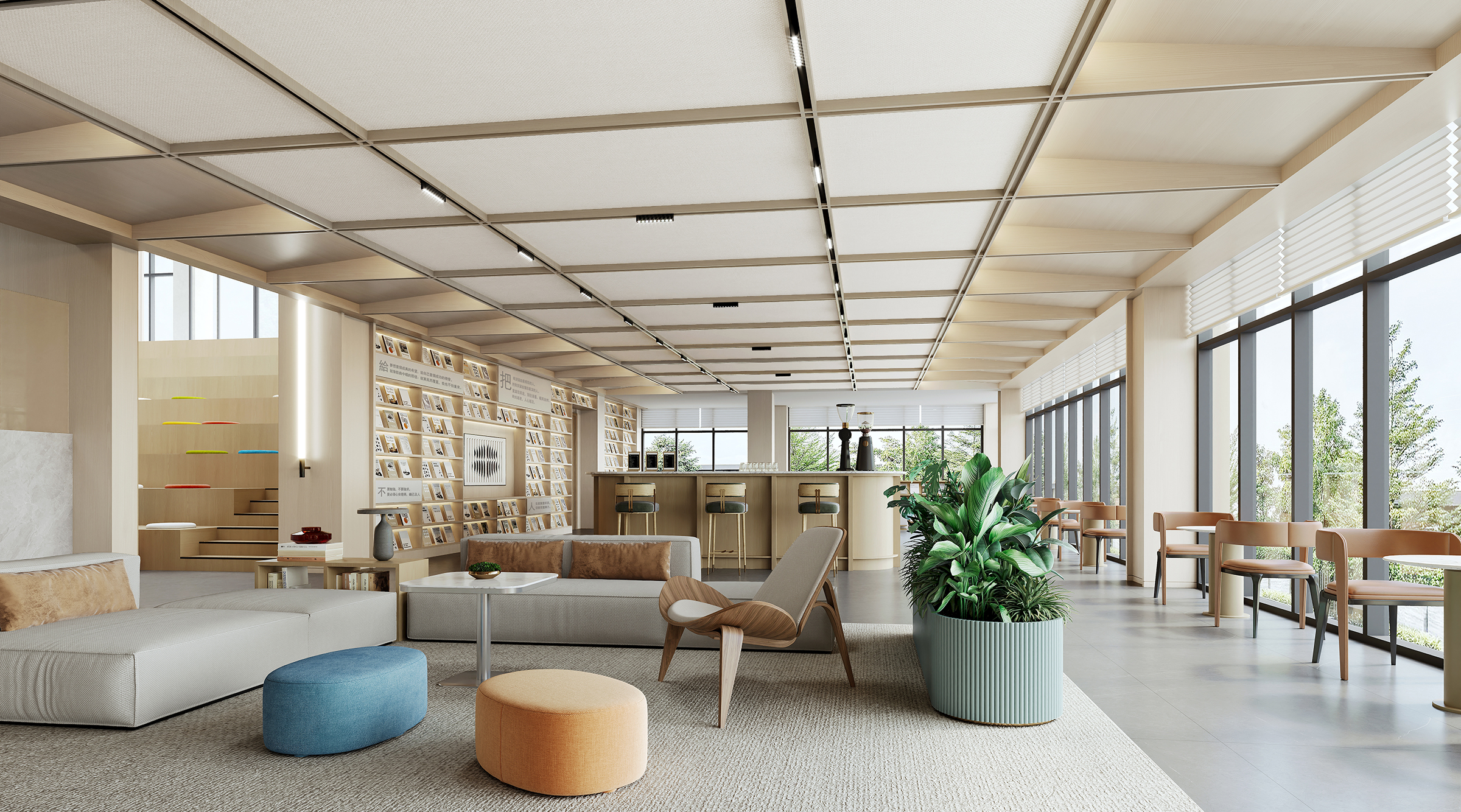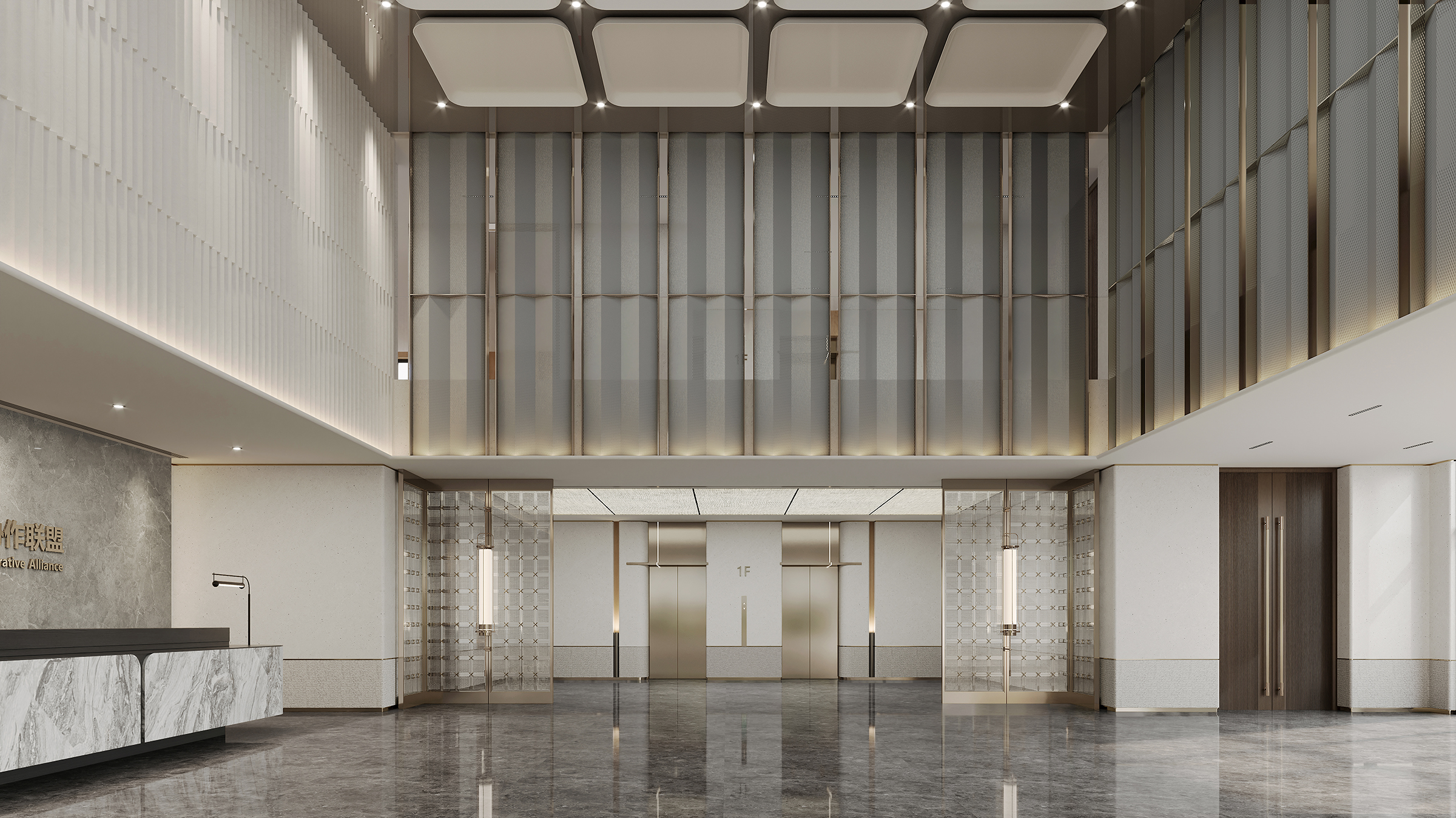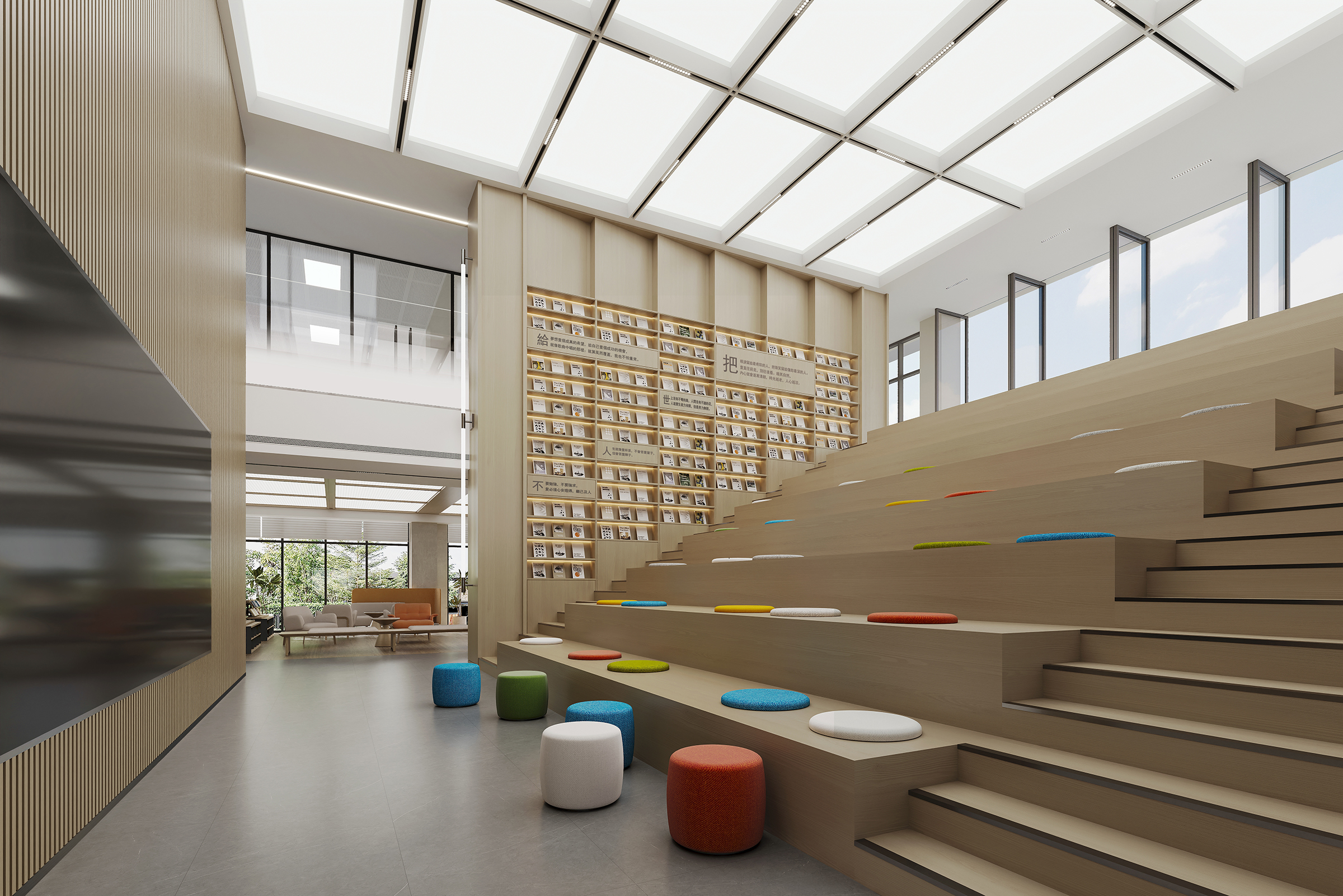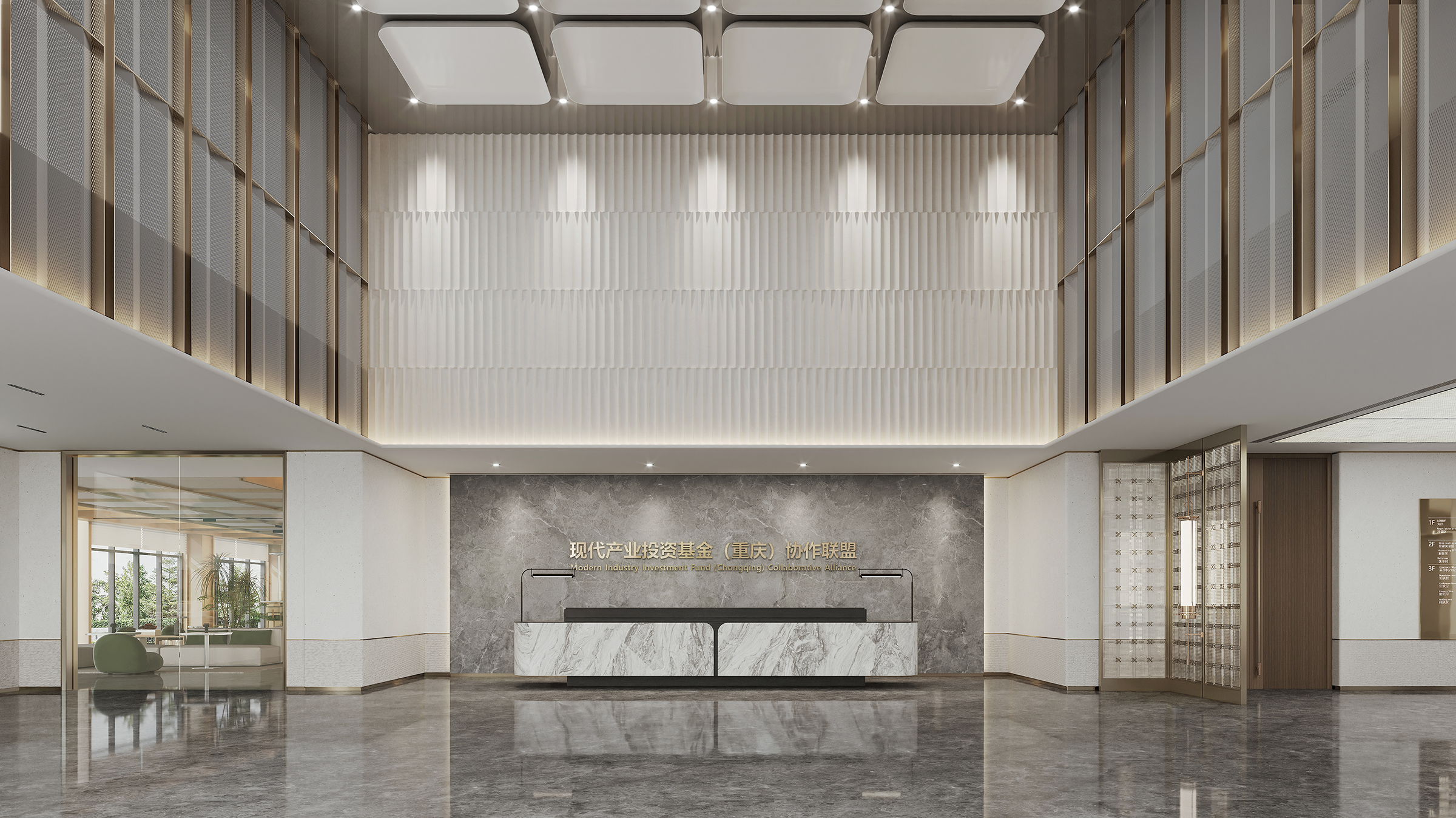 The decoration and renovation project of Bailin Park 1 # and 2 # is located in Bailin Park, Yubei District, Chongqing. The total construction area is about 5100 square meters, with four floors, one underground and three above ground. This project is carefully planned based on the diversified needs of the fund company, and the first floor will create an internal cafeteria and supporting facilities for the fund company, providing employees with a convenient and comfortable dining environment; On the first floor, a grand entrance hall for fund companies is set up, and a coffee shop that can be opened to the public is also planned. The open multi-functional staircase communication area running through the two floors at the end of the coffee shop not only becomes a visual focus, but also creates an open space for diverse communication. The second floor focuses on the office and conference functions of fund companies to ensure efficient work; The third floor is responsible for external reception and meetings, showcasing the corporate image. The design style is deeply in line with the characteristics of the fund industry, with a modern, efficient, and concise tone, using simple and smooth lines and high-quality materials to create a professional and stylish spatial atmosphere.