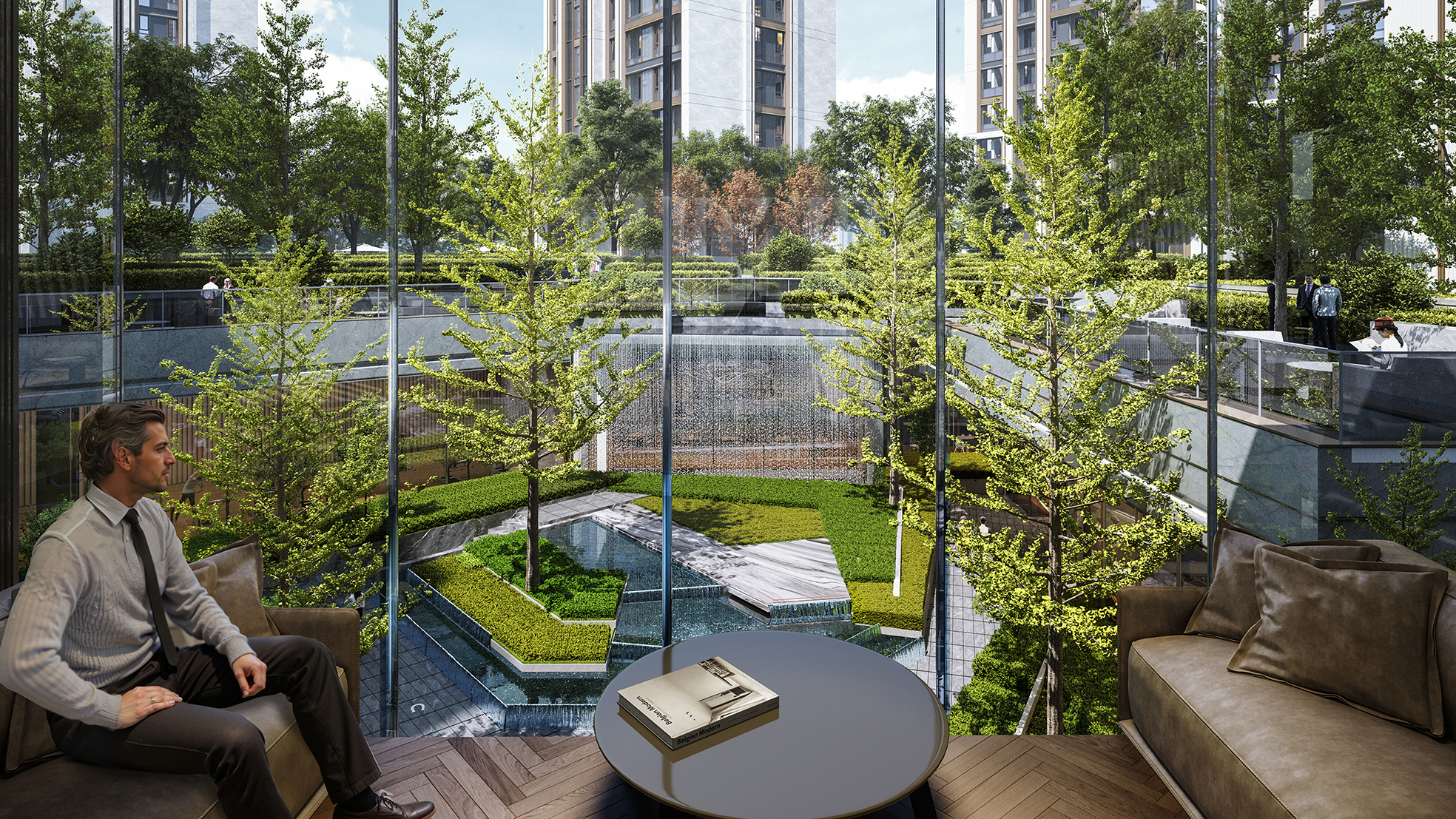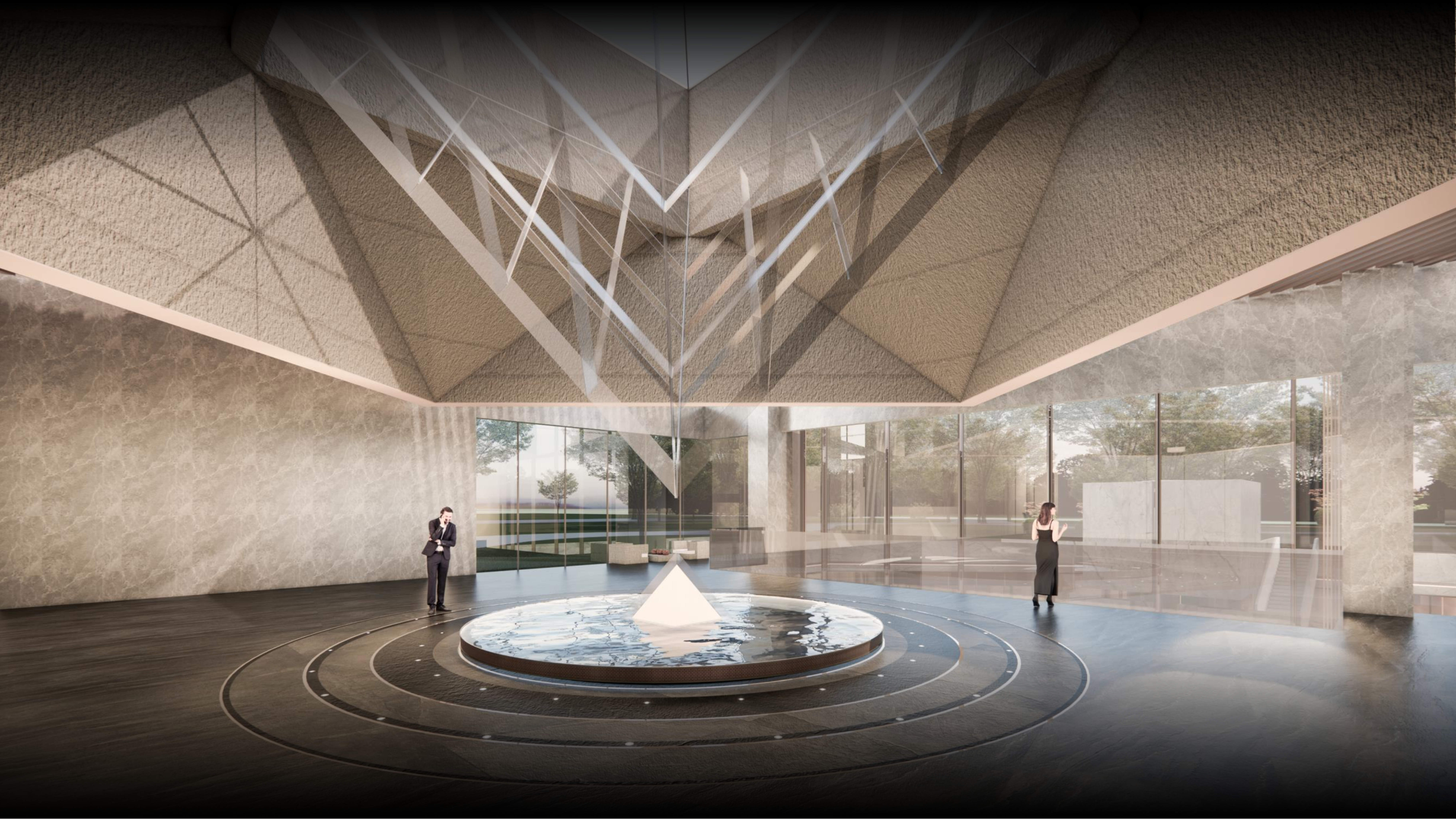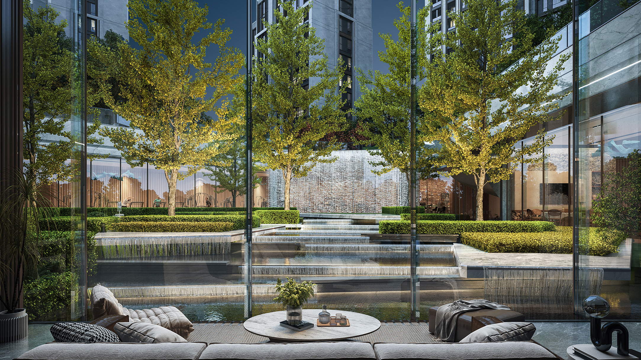 Stepping into the clubhouse, one discovers not a traditional lobby but a temple of light art that practices sustainable development. In the double-height space, light filters through precision metal grilles, casting shifting light and shadow art on the floor. The metal grilles are made of recyclable materials to reduce resource waste. Floor-to-ceiling glass introduces natural light and cloud reflections into the interior, collaborating with vertical metal lines to outline a three-dimensional picture full of ritual sense. The glass adopts low-emissivity materials, effectively insulating heat and reducing air conditioning energy consumption.