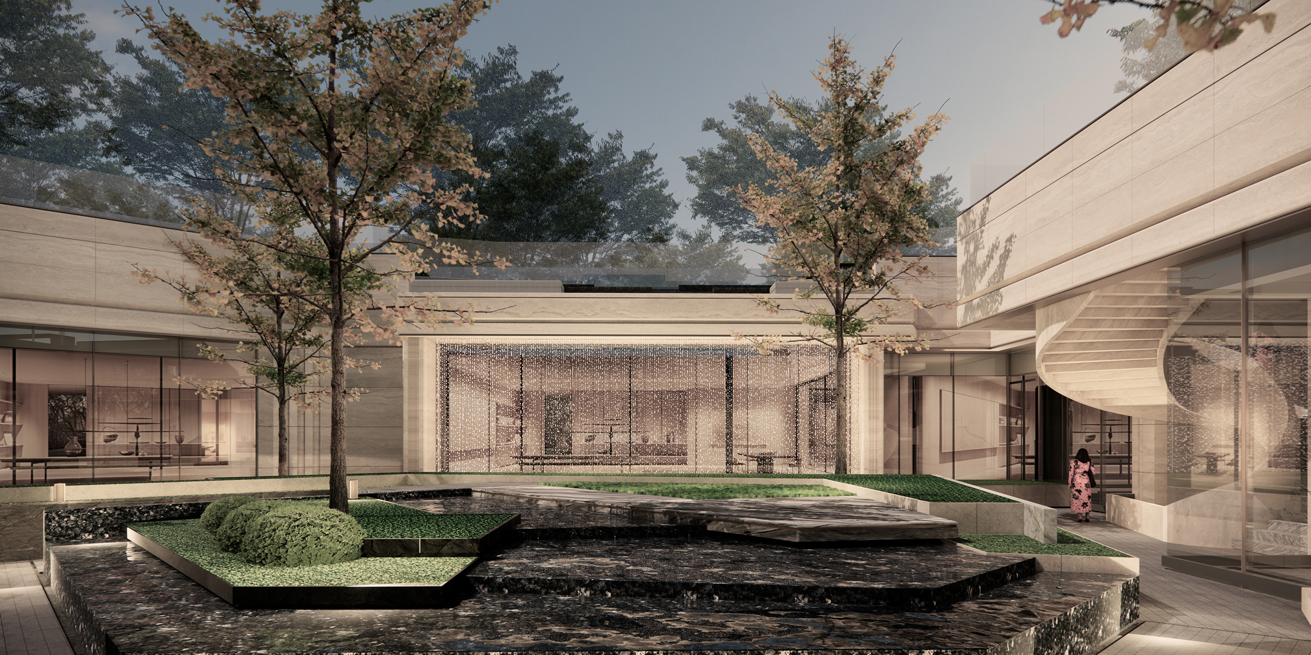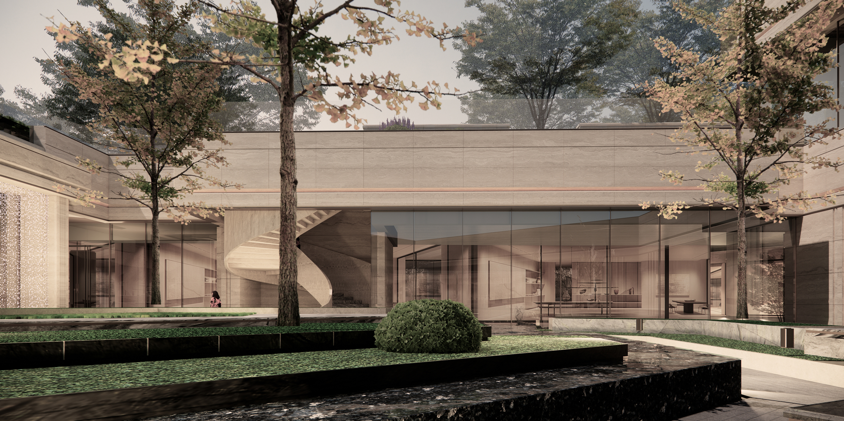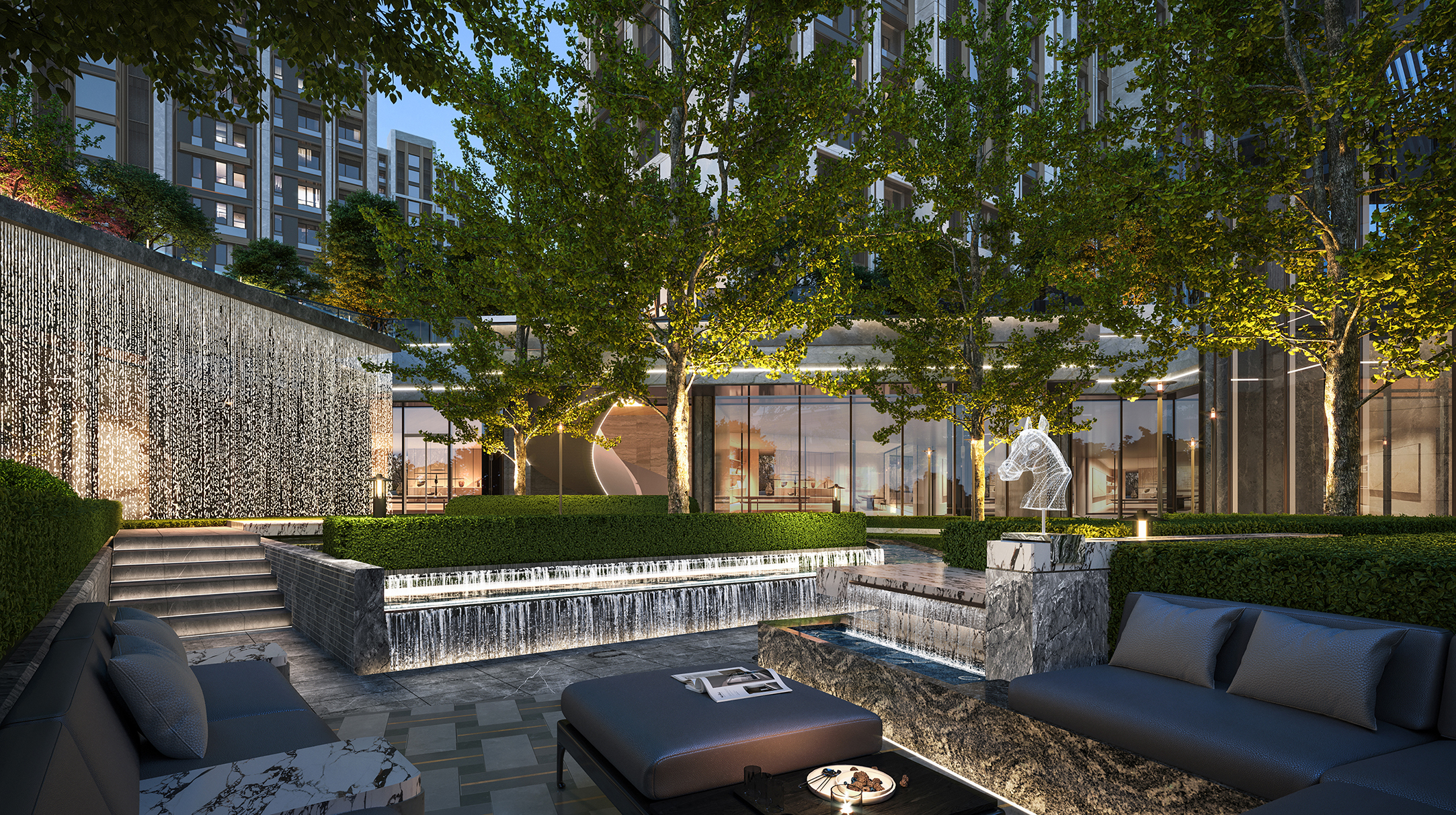 Stepping into the clubhouse, one discovers not a traditional lobby but a temple of light art that practices sustainable development. In the double-height space, light filters through precision metal grilles, casting shifting light and shadow art on the floor. The metal grilles are made of recyclable materials to reduce resource waste. Floor-to-ceiling glass introduces natural light and cloud reflections into the interior, collaborating with vertical metal lines to outline a three-dimensional picture full of ritual sense. The glass adopts low-emissivity materials, effectively insulating heat and reducing air conditioning energy consumption.