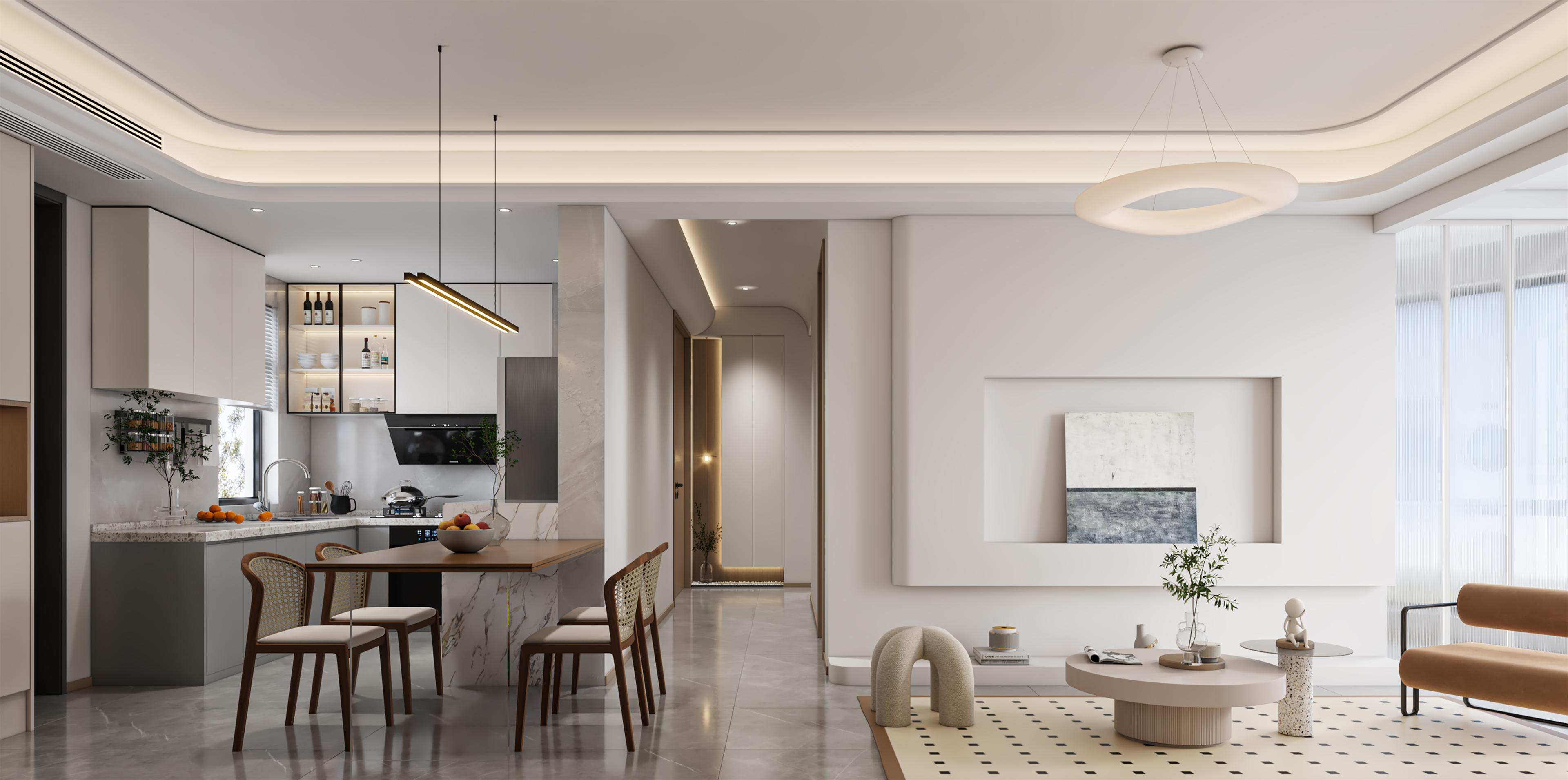 In its spatial layout, the design reimagines daily living through a minimal and fluid rhythm. The extended dining area connects with the living room without intruding on its comfort, forming a smooth and intuitive circulation. The bedroom embraces soft lines to cultivate a sense of ease, allowing blank spaces to hold poetic meaning while details quietly enrich the atmosphere. With a restrained aesthetic carrying warmth and a clean visual language conveying cultural depth, the space offers a calm, rhythmic experience in everyday life, presenting a warm and distinctive expression unique to Cosy White.