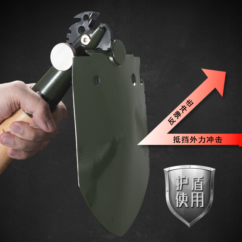 The thickened shovel head serves dual purposes of digging and chopping, offering superior strength and durability for cutting through hard soil or branches. The folding joint adopts a multifunctional rotary disc, allowing both angle adjustment and enhanced structural stability. Precision machining and reinforced bolts ensure strong impact resistance, reflecting a synergy of structural innovation and mechanical reliability.