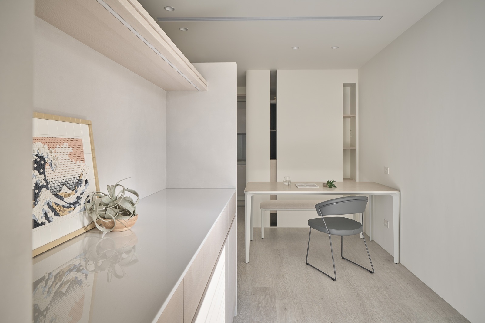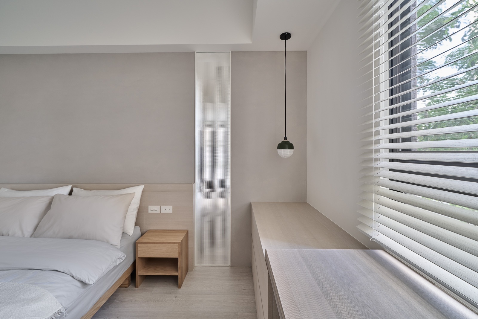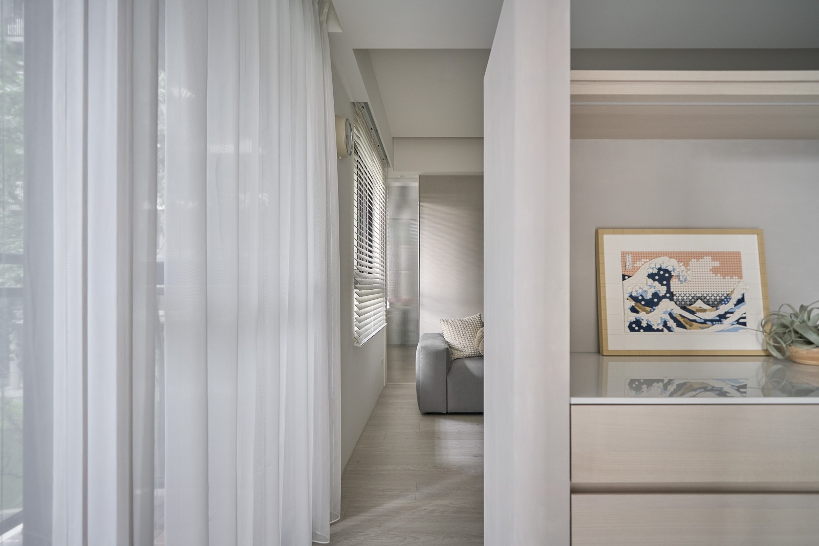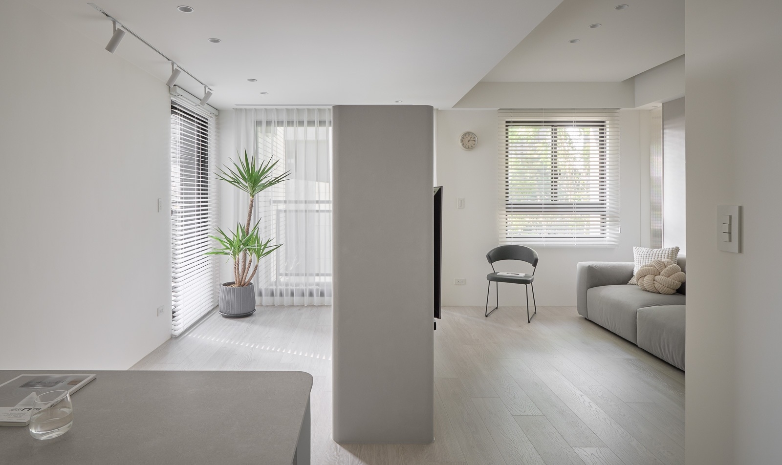 空間的色彩與材質主要使用淺色的色調,旨在營造放鬆、明亮且溫潤的氛圍。這樣不僅將自然光最大限度地反射進入室內,更為整體空間注入一股溫暖而療癒的能量。