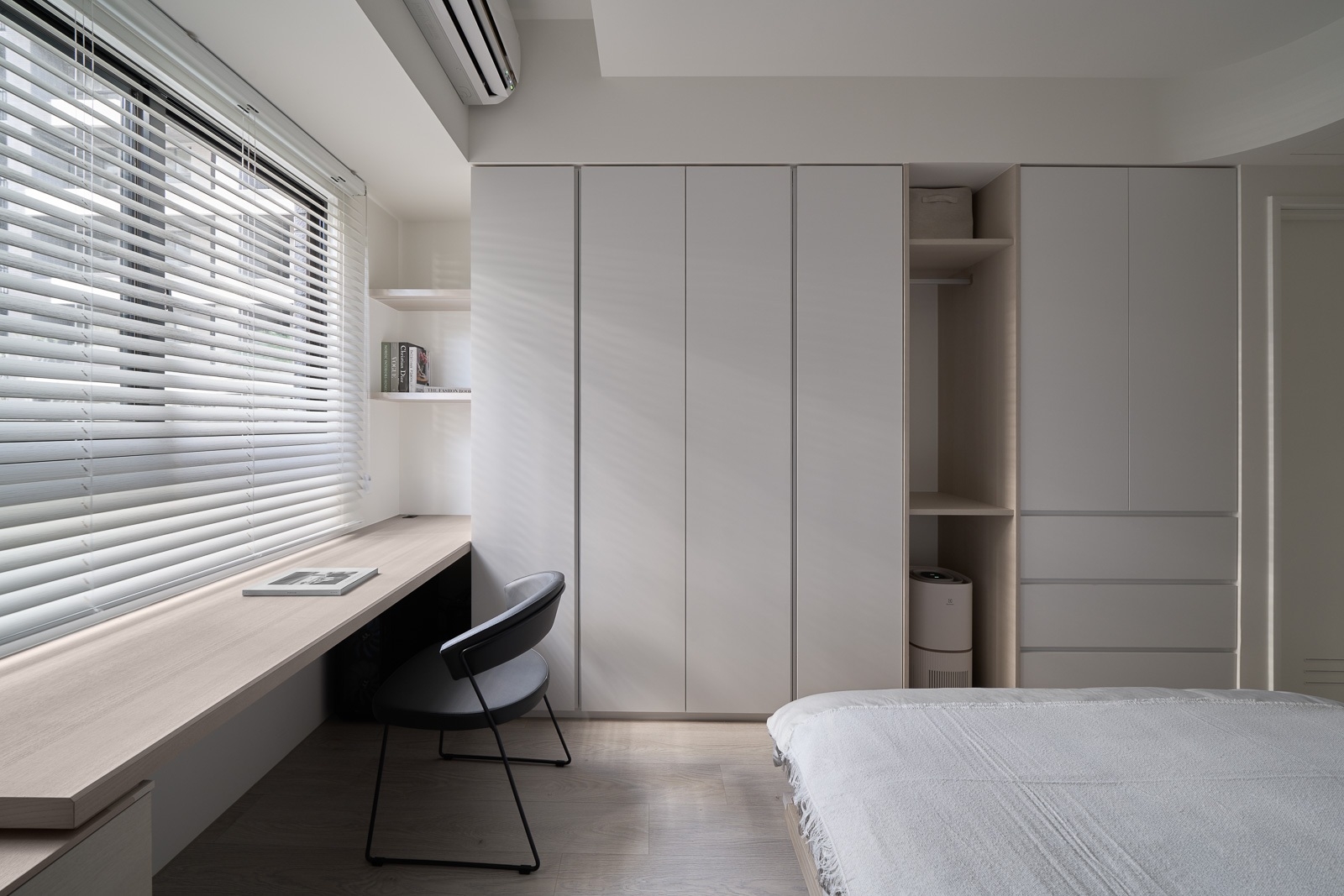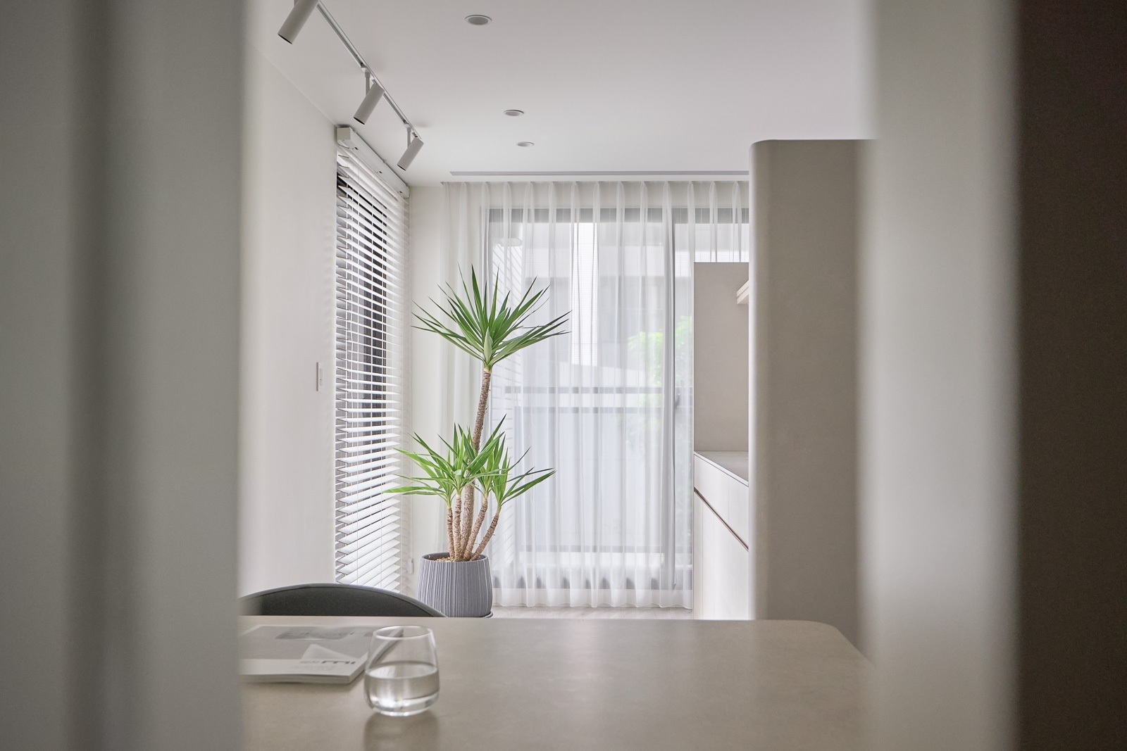 最後選用簡潔俐落的木百葉簾,讓戶外光線透過葉片縫隙,以富有層次感的姿態穿梭在室內空間,為空間賦予了生動的詩意與節奏感。