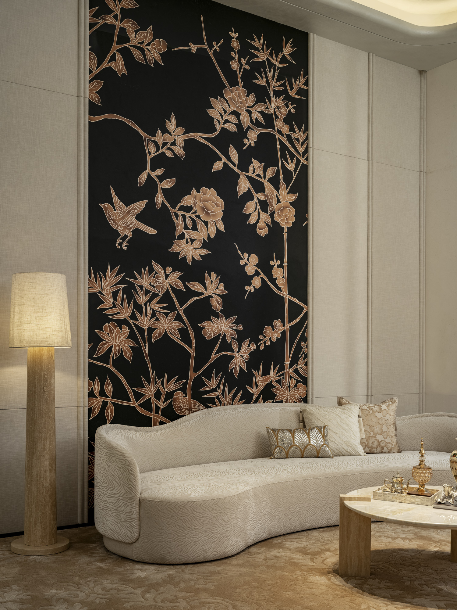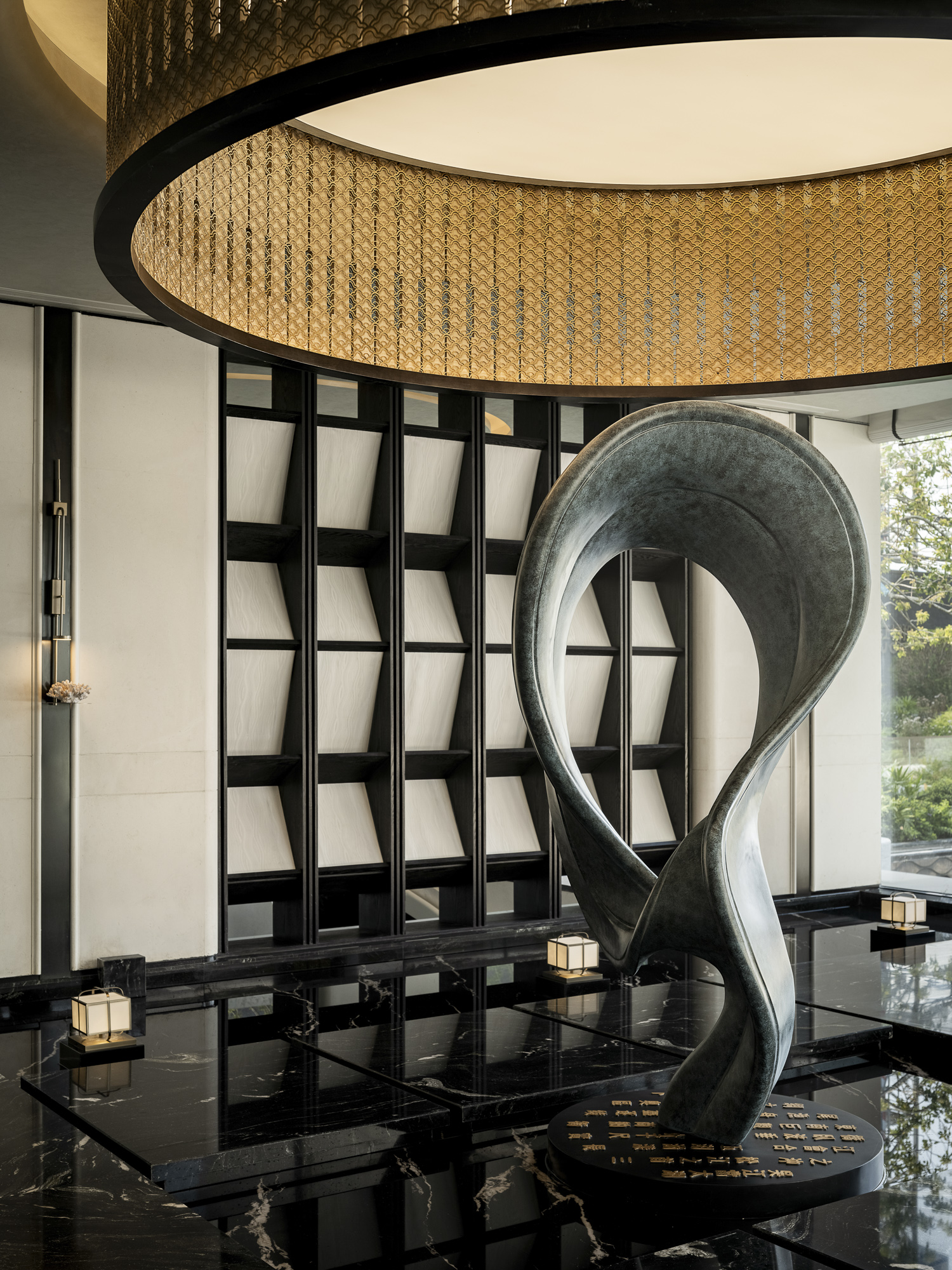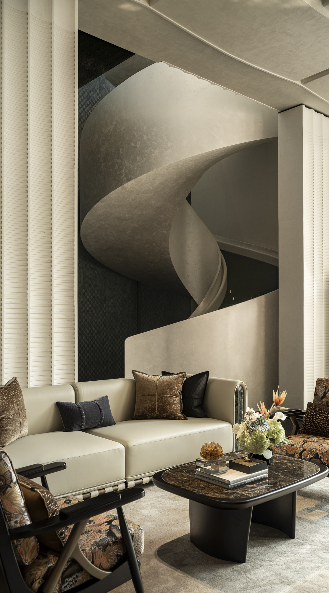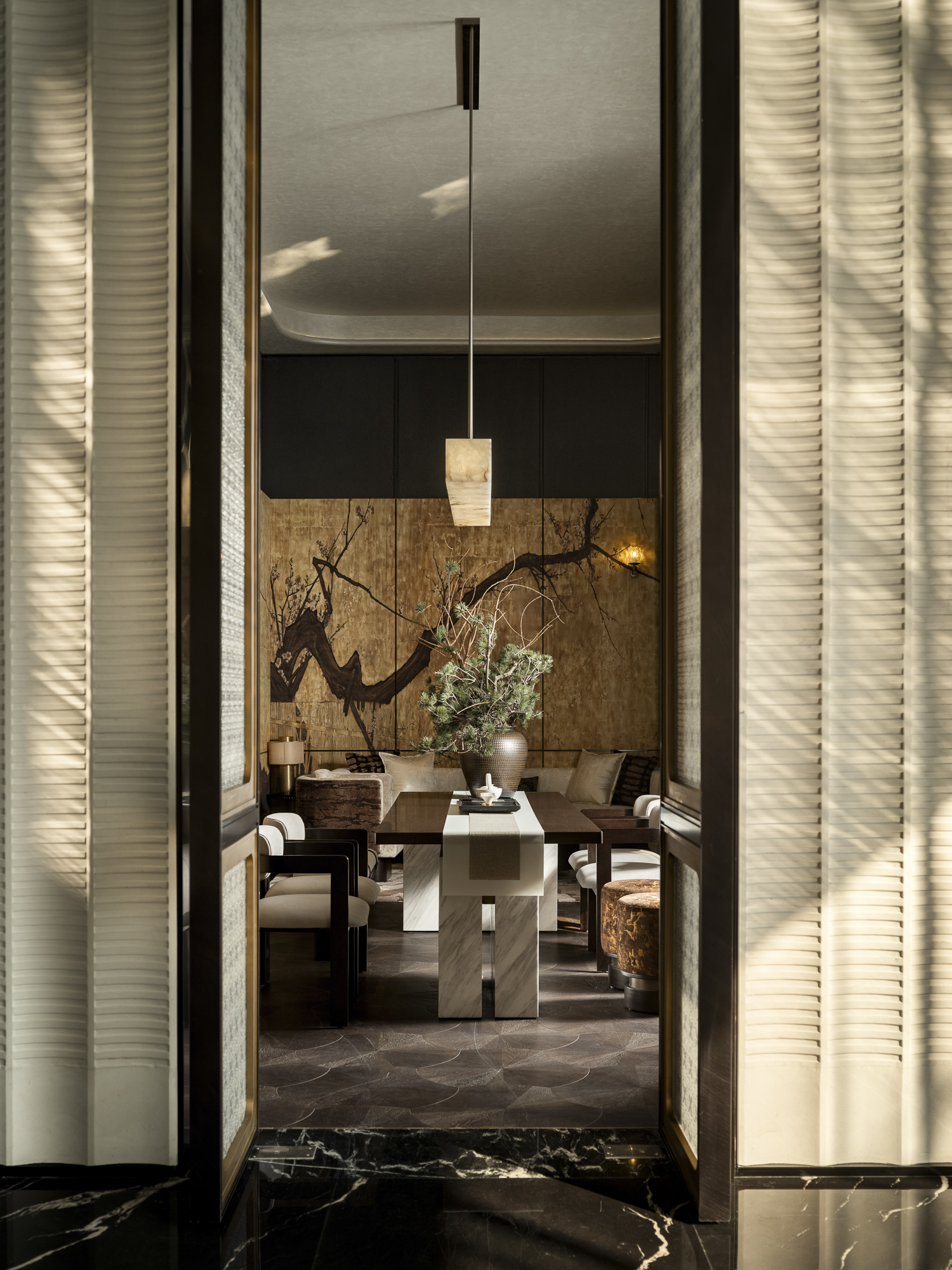 The clubhouse unfolds as a journey through light, water, and emotion. Curved architectural lines recall the flowing gestures of traditional dance, while delicate textures in stone, wood, and metal evoke the tactile beauty of handmade craftsmanship. Spaces are fluid yet composed — a modern reimagining of Suzhou’s “garden within garden” philosophy, where nature and architecture breathe together.
