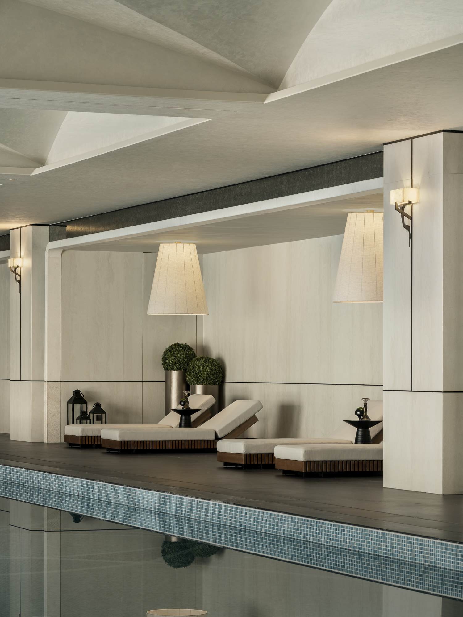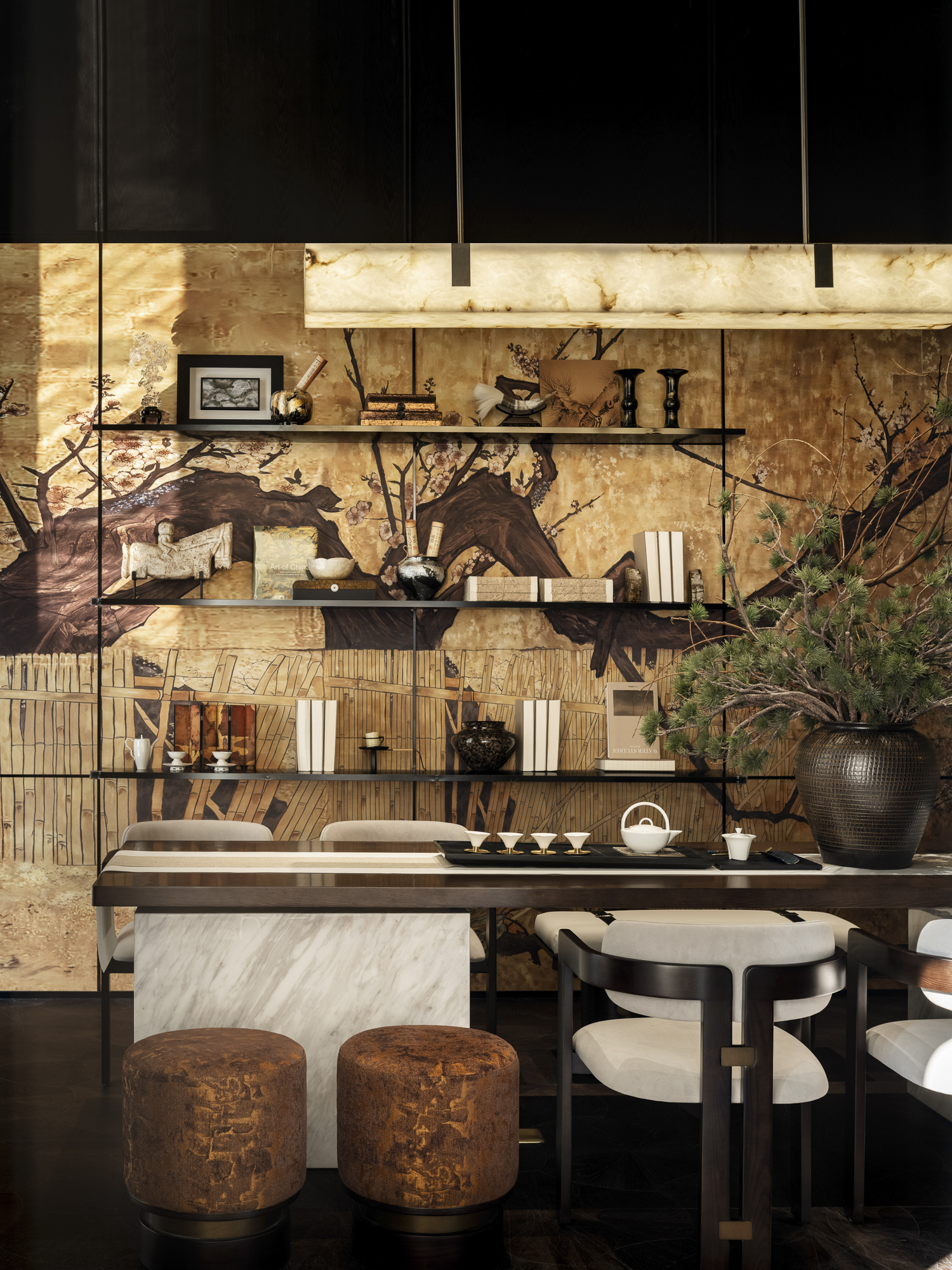Each zone carries a poetic theme: the reception hall welcomes guests with gentle rhythm and light, the tea lounge and wine bar celebrate refined social rituals, and the wellness and swimming area provides an immersive retreat inspired by the shimmering reflections of Taihu. The design harmonizes human experience with cultural memory, offering residents an elegant, multi-sensory sanctuary.