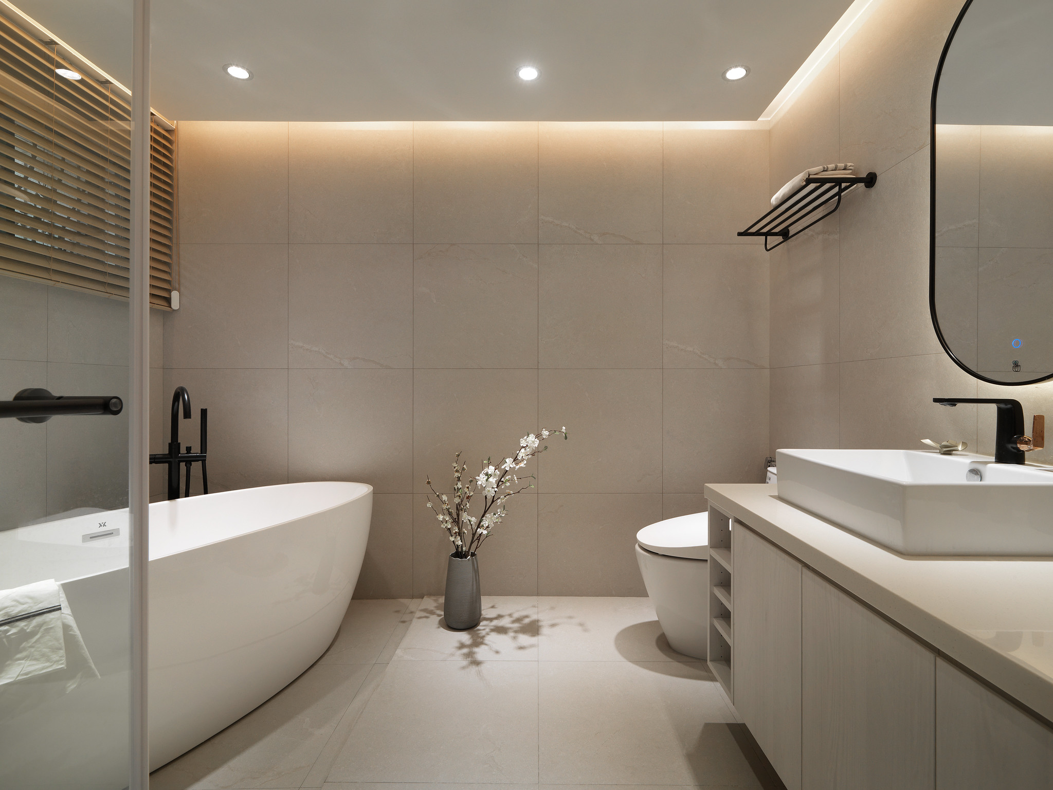Finally, in the public areas, the designer integrated the living room, dining room, kitchen, and study into a unified space, employing an open layout and permeable materials to create a spacious and comfortable environment that fosters interaction and a sense of belonging among family members. Various color palettes and artworks are cleverly incorporated, and each room includes a bathroom to the maximum extent possible. This not only provides residents with ample living space but also enhances their comfort and overall living experience. Simultaneously, it reflects the homeowner's personal taste for understated luxury and elegance.