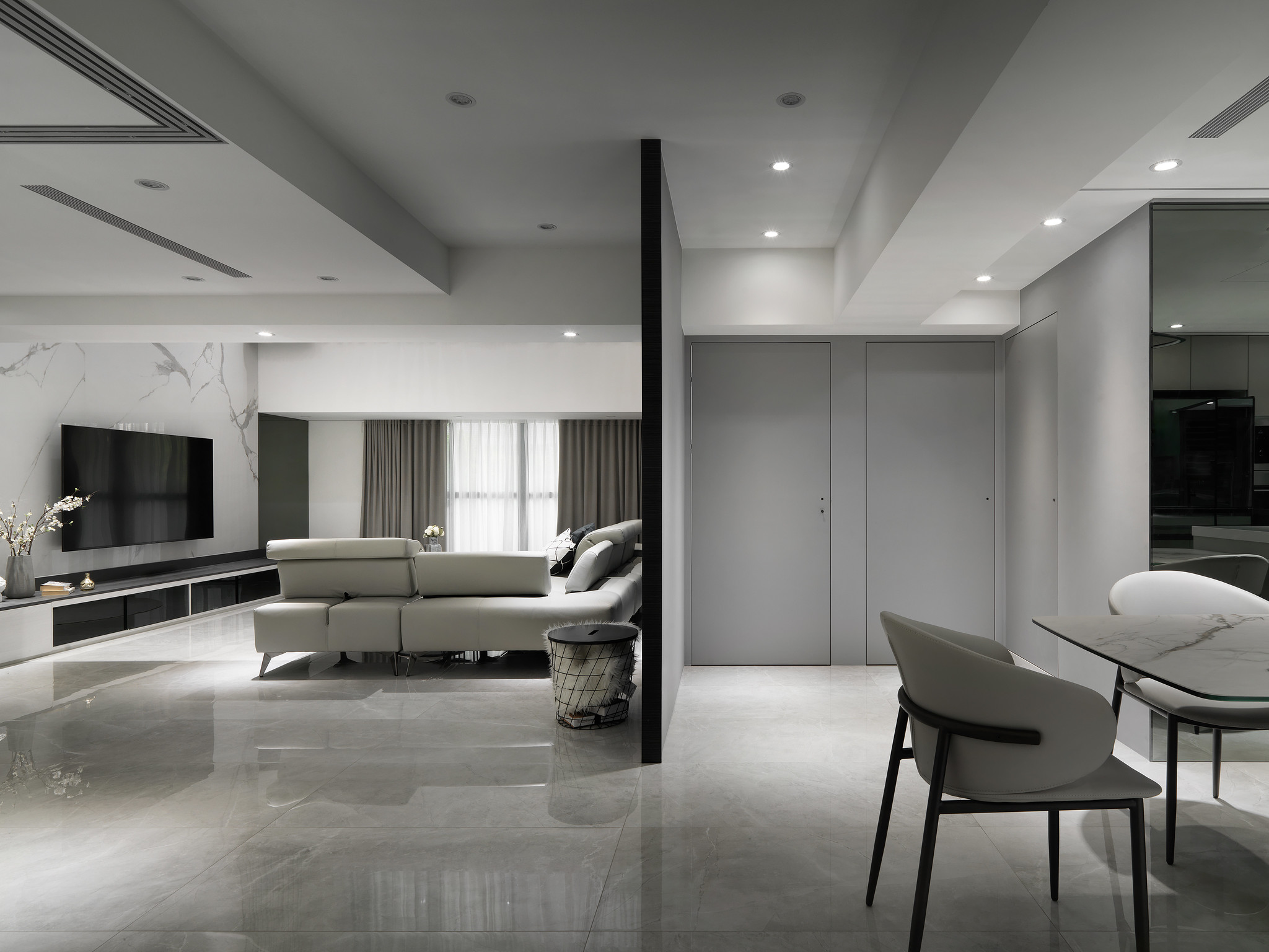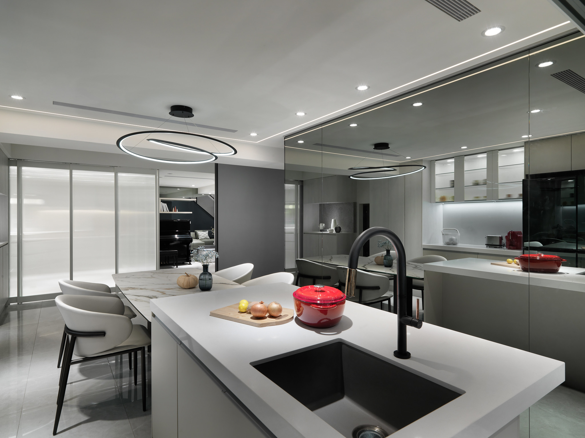 Furthermore, in terms of practicality, the designers meticulously designed the lighting and intelligent control systems. The use of high-tech and easy-to-clean surface materials further enhances the homeowner's quality of life.