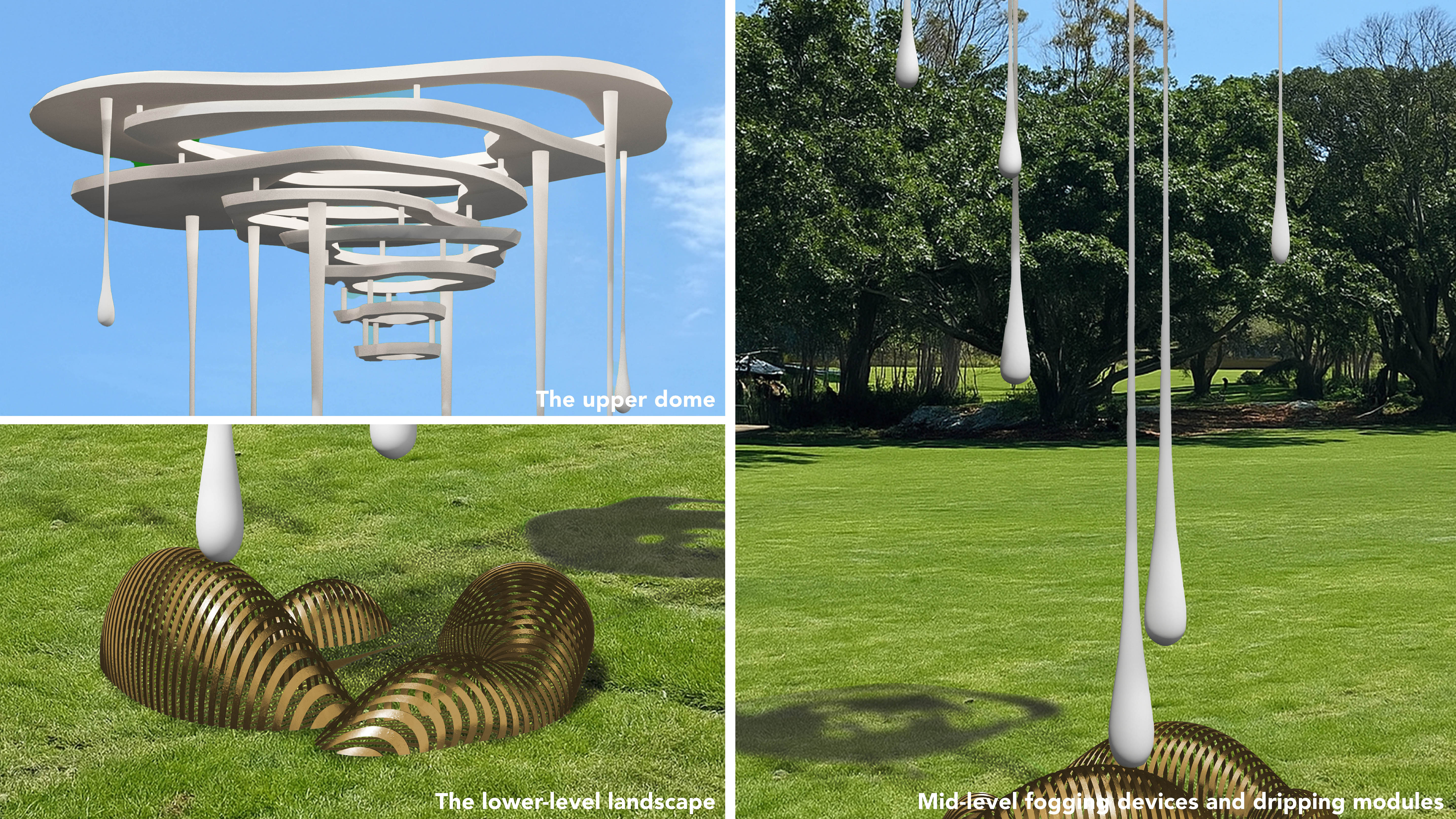 During construction, modular assembly and reusable structural systems were employed to ensure efficient, low-carbon exhibition setup. Through the orchestration of natural light, mist devices, and rhythmic water drips, the installation evokes a breathing sense of flow, inviting visitors to walk, listen, and gaze—becoming part of the work itself.