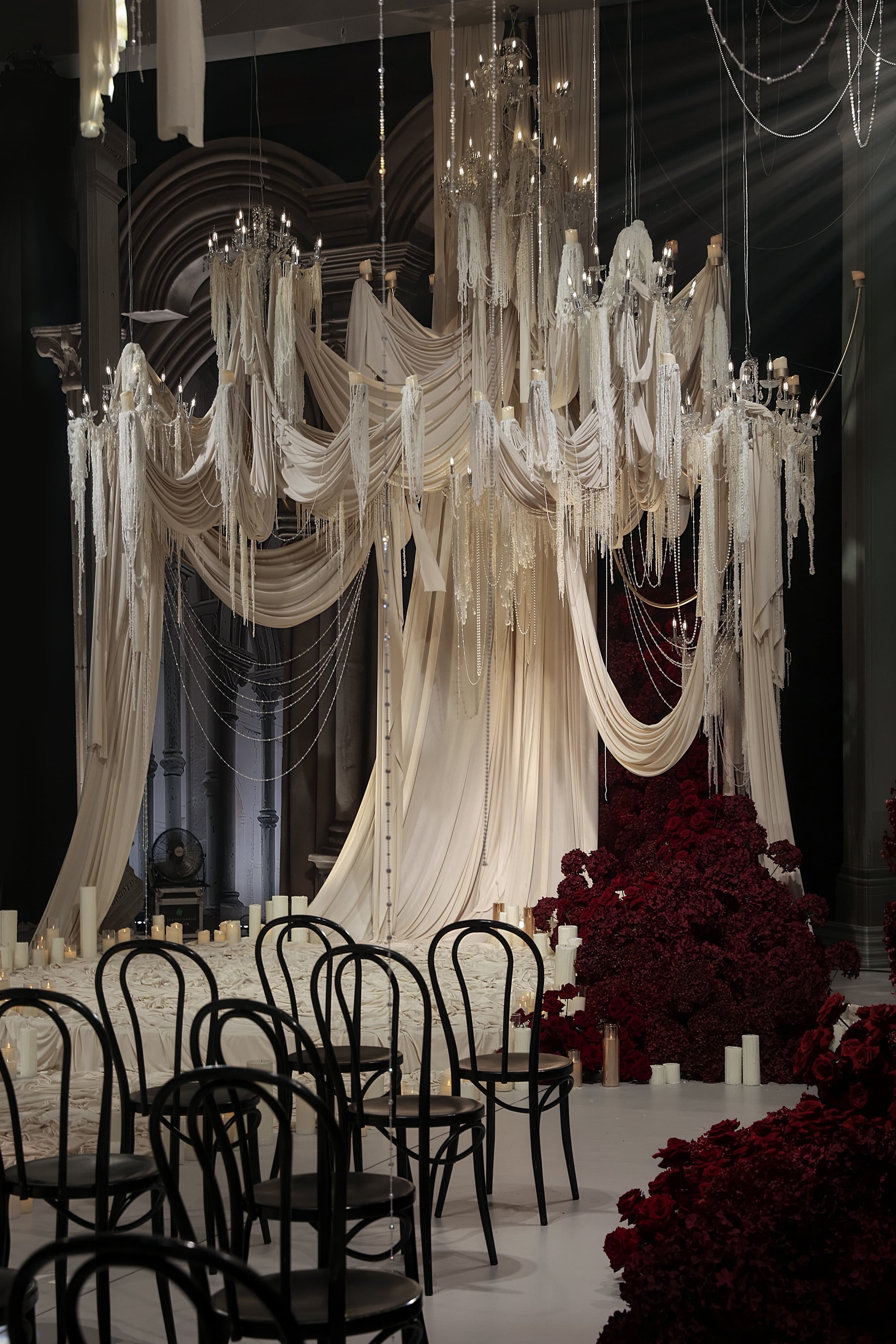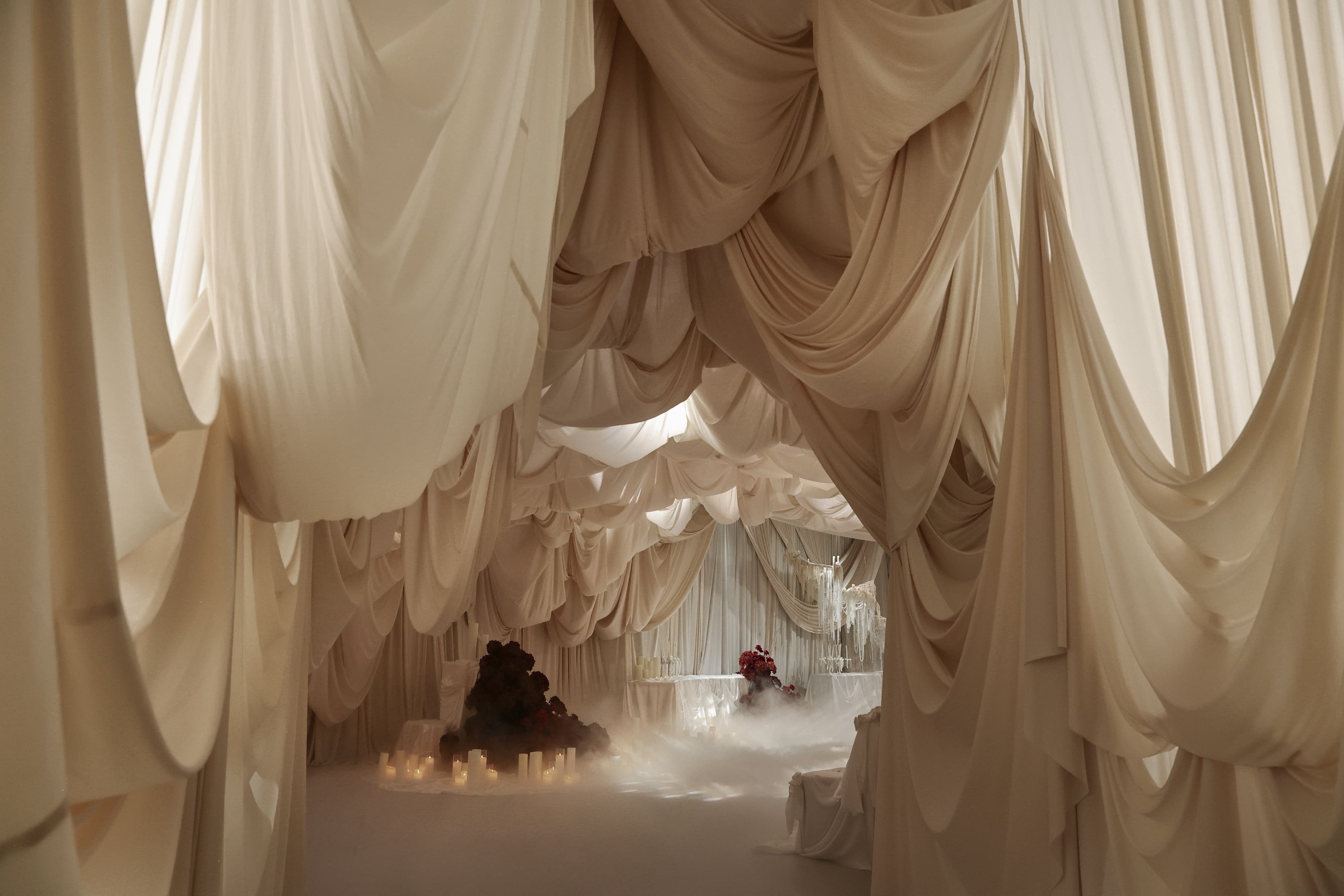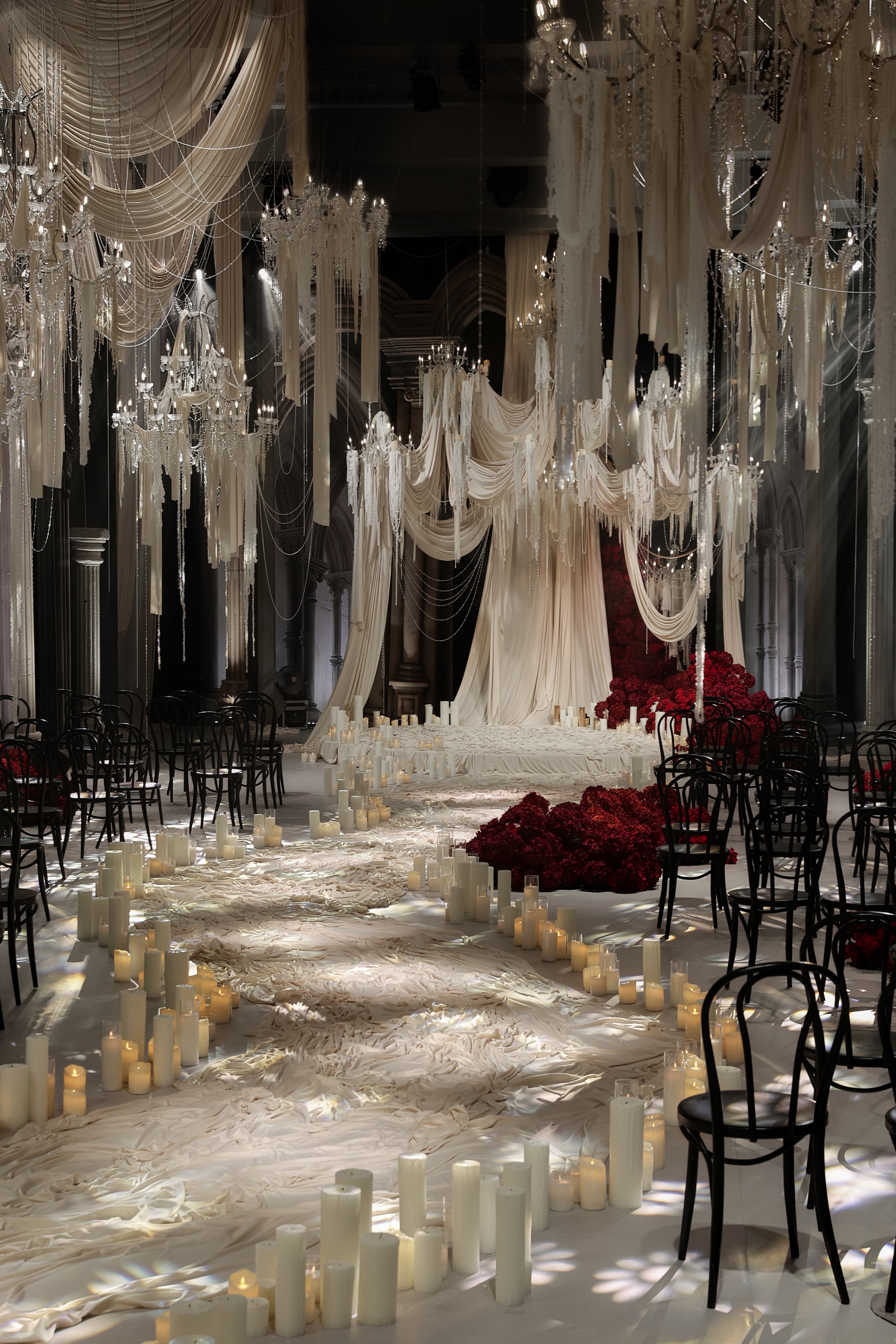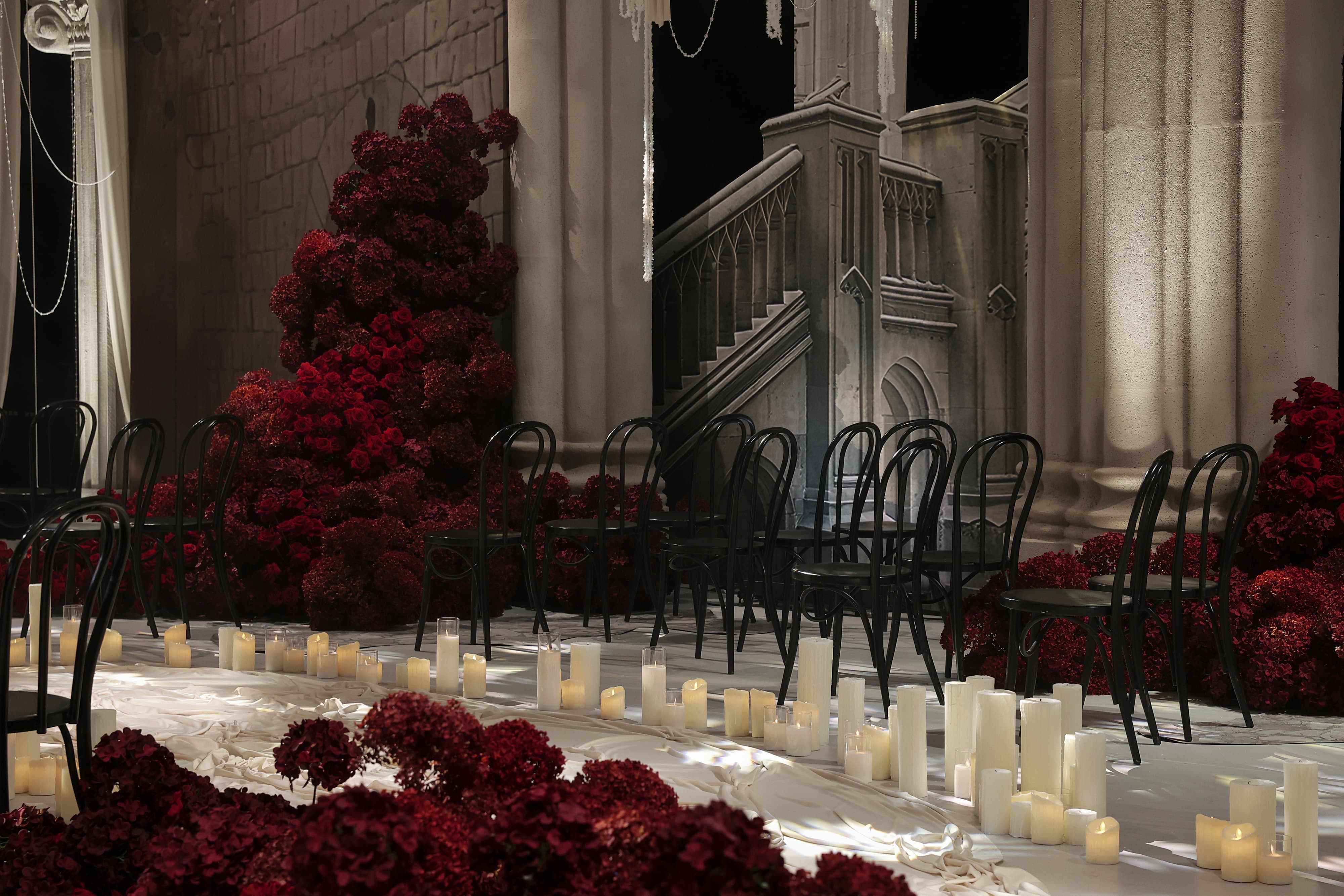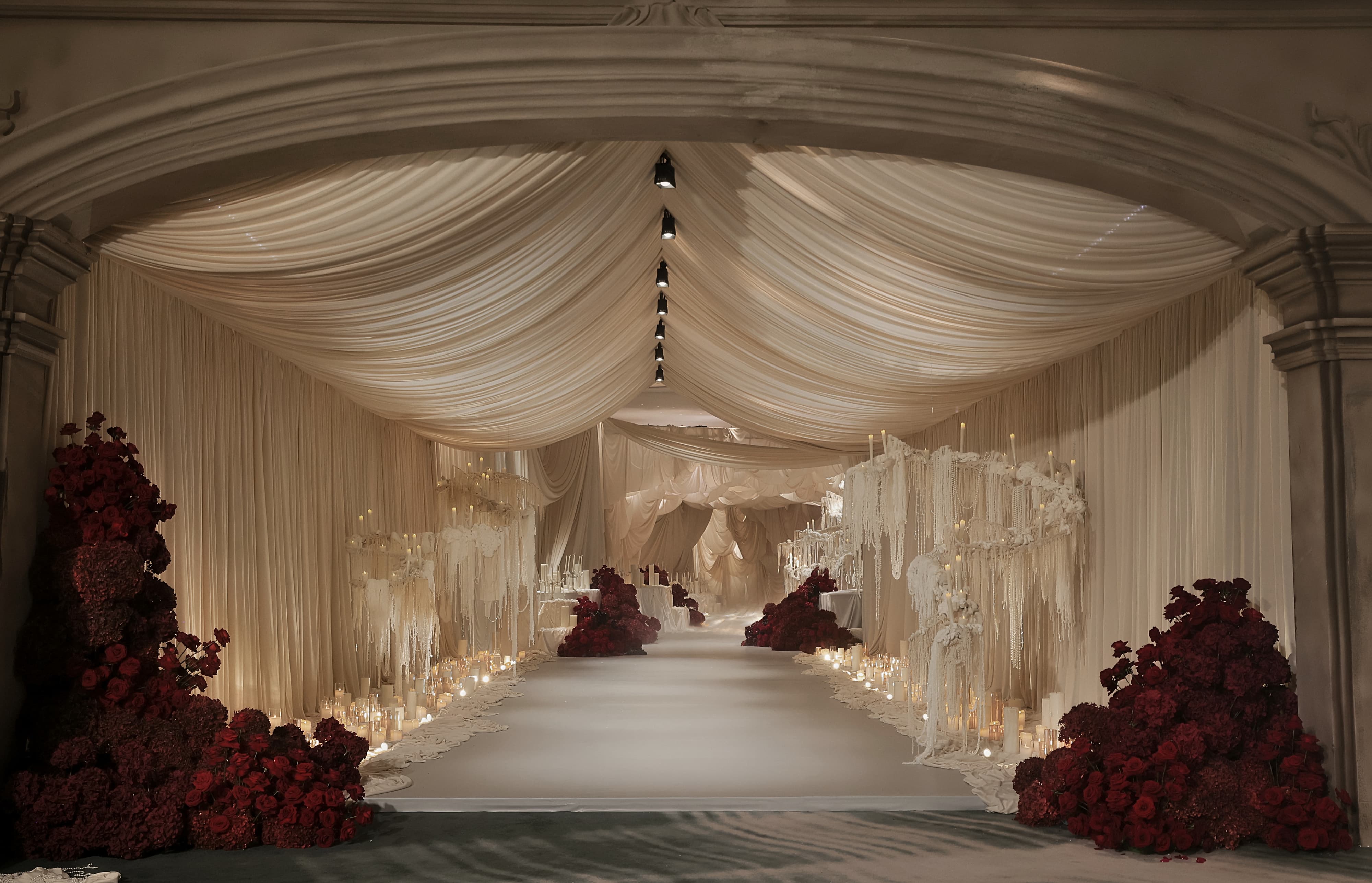 This wedding design features a groundbreaking approach, uniquely blending European and contemporary styles. By fully leveraging the venue's spatial potential and incorporating grand-scale elements, it creates a distinctive and remarkable banquet experience.