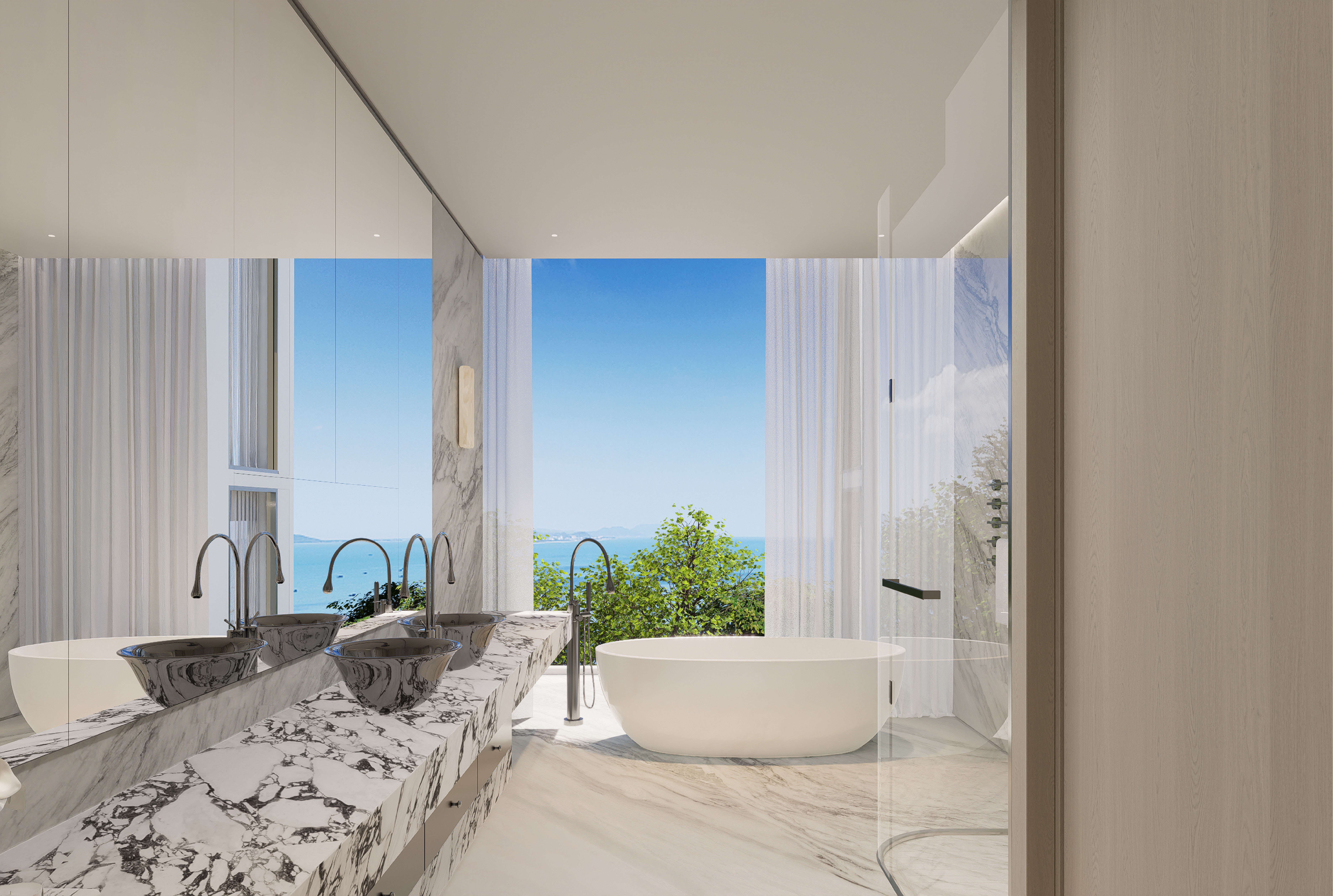 Floor-to-ceiling glazing and open layouts dissolve the threshold between interior and exterior, inviting sea breeze, sunlight, and greenery into the living environment. The result is a living dialogue between architecture and nature.