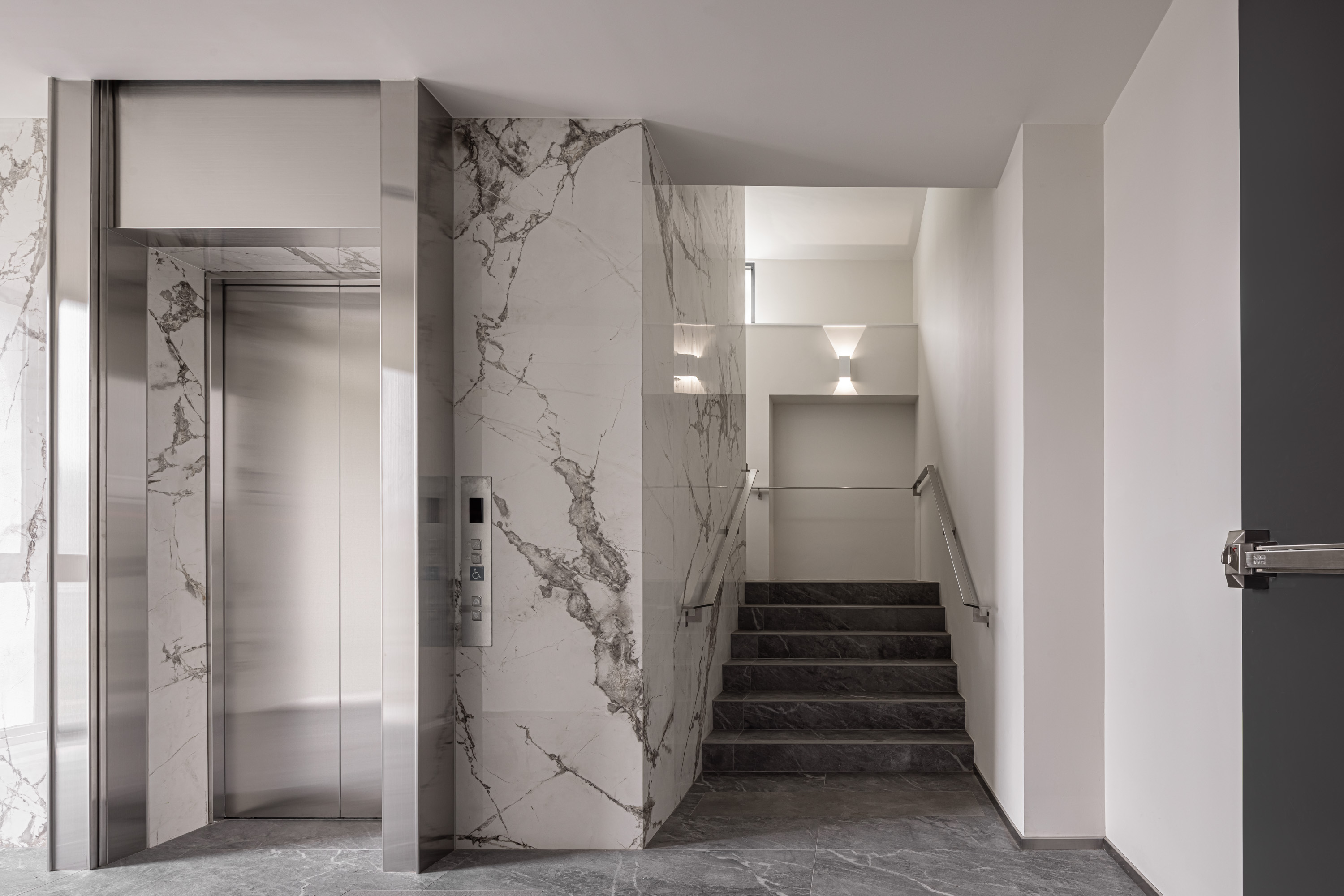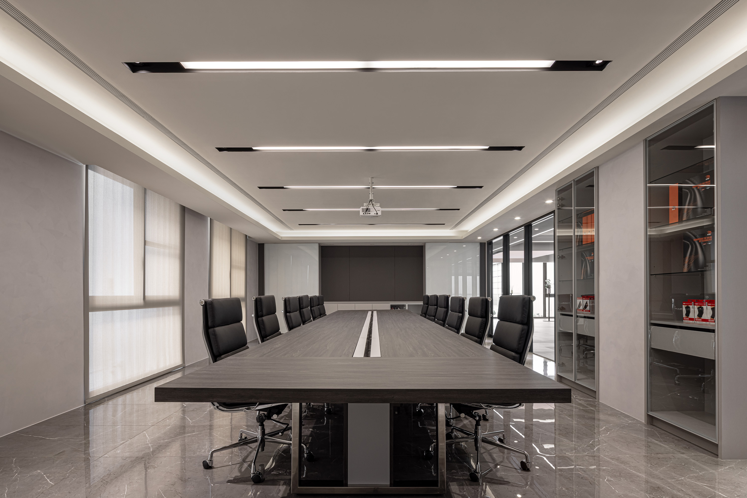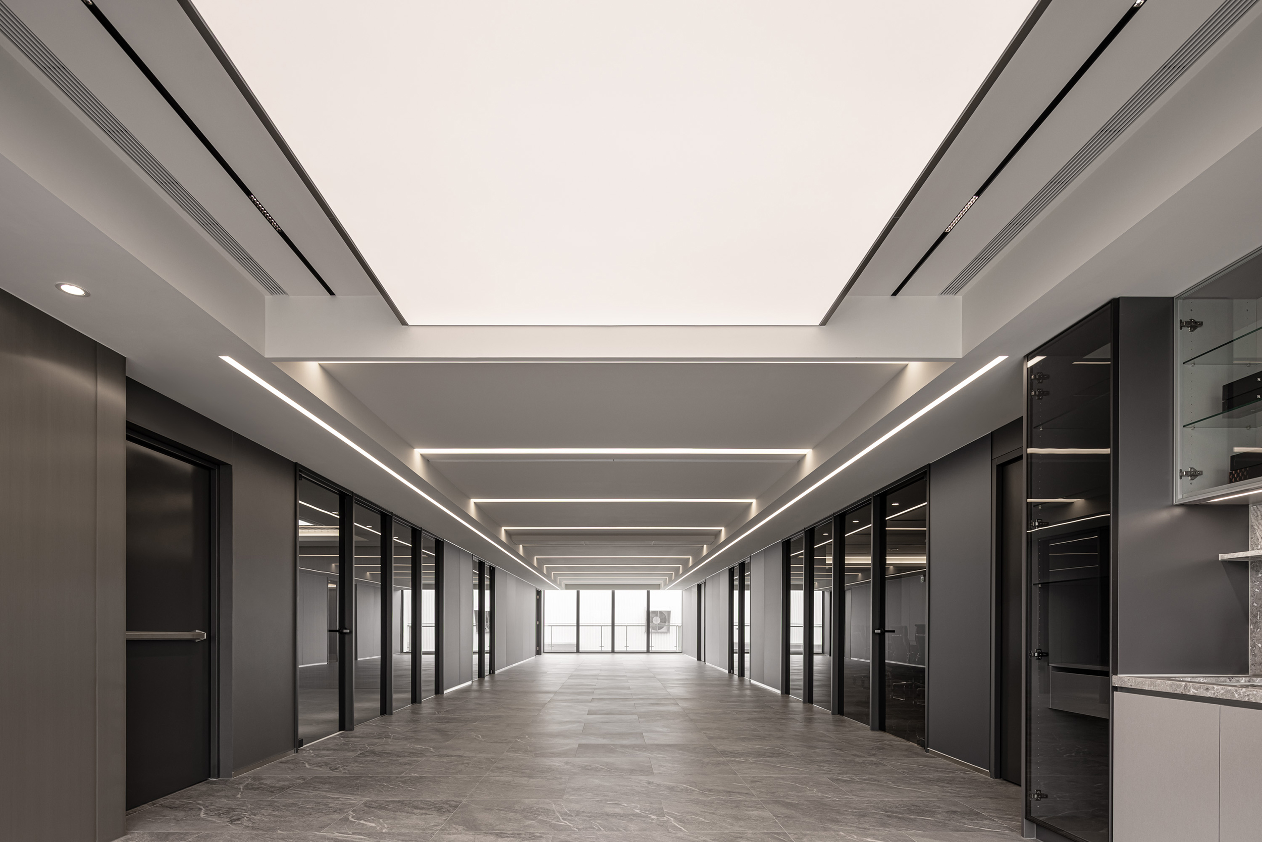 The project serves as the new headquarters of a sports protection brand, exploring the intersection of textile and architecture. From the earliest stages, the design team integrated with the building’s light and structure, translating the brand’s core values of resilience and professionalism into spatial form.