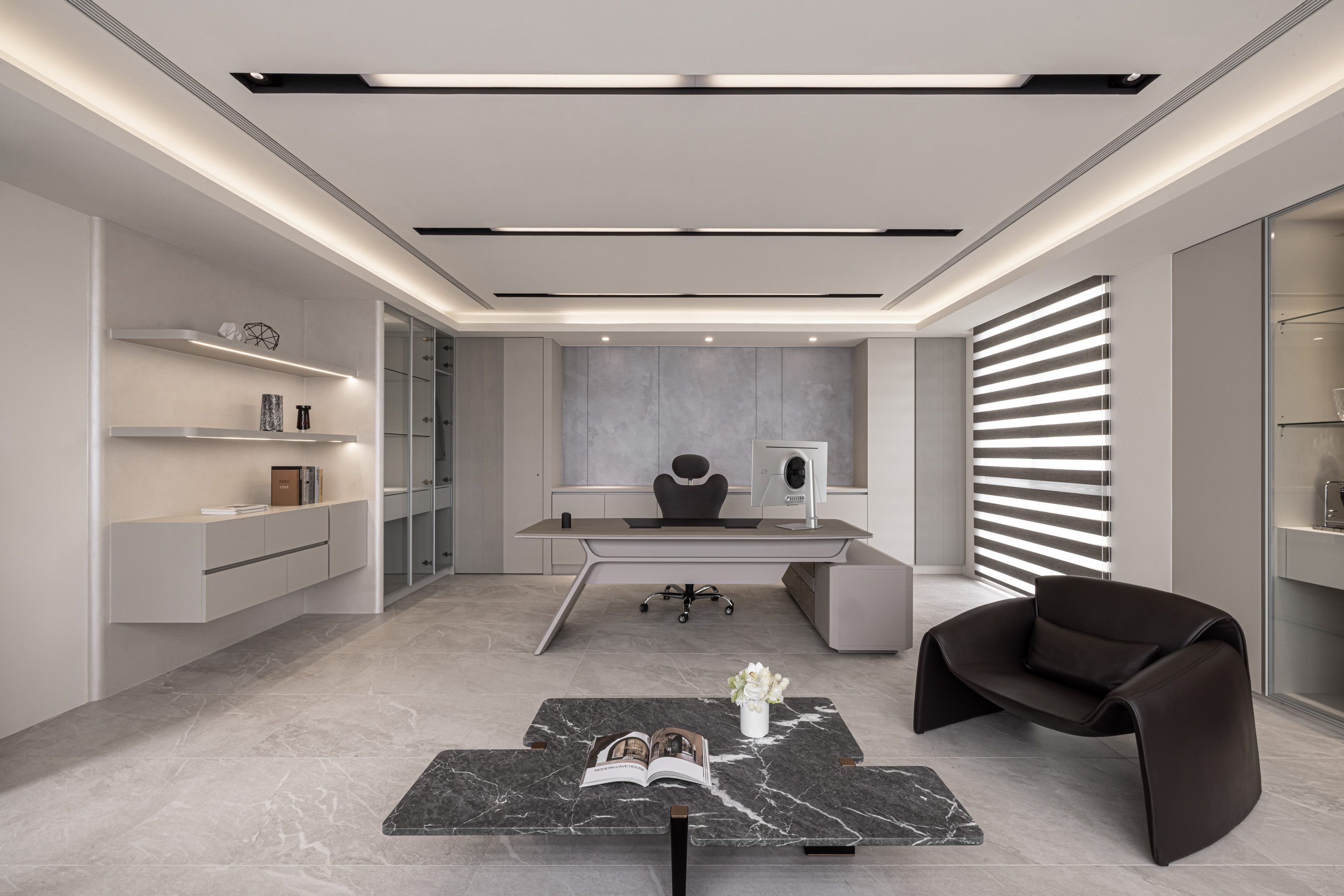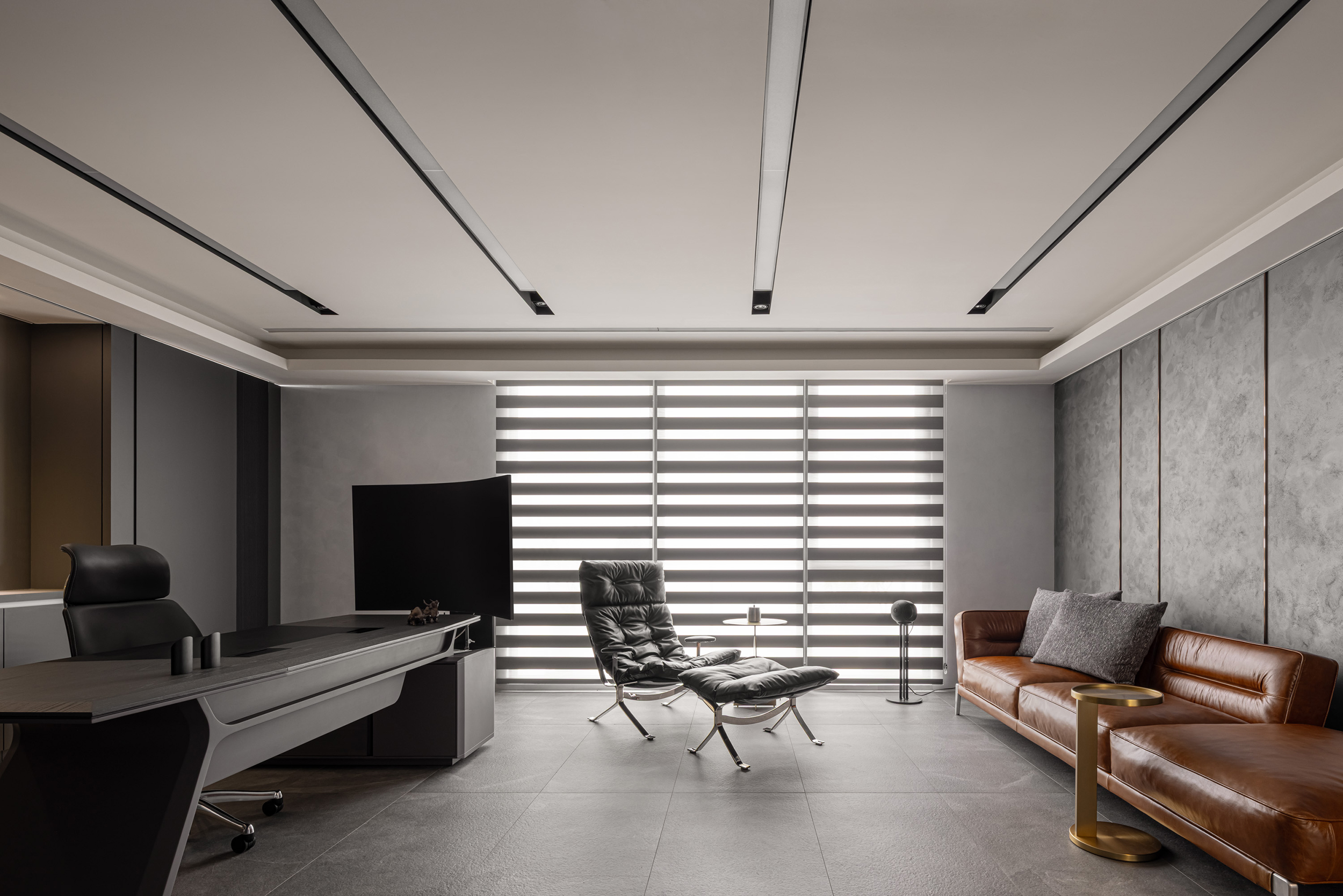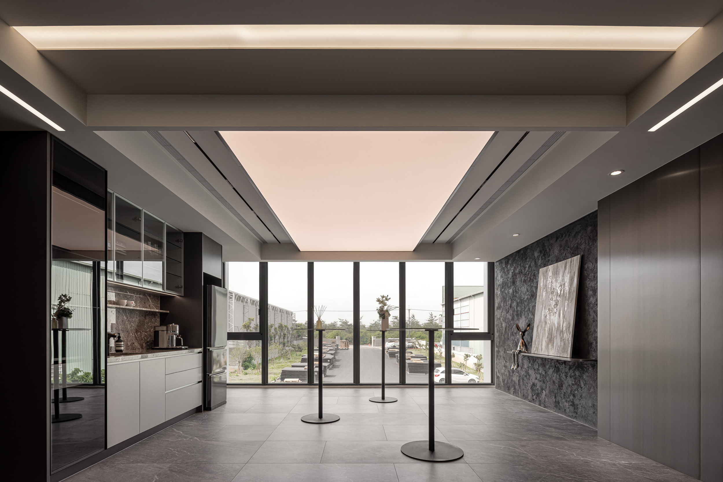 The second-floor meeting and display rooms can open or close flexibly according to use, expressing the brand’s adaptable and energetic character. The black-gray-white palette embodies tension and harmony: black grounds the space, gray balances structure, and white releases light. The moving shadows of the grilles become warp and weft lines of time itself, shaping a visual order that balances softness and strength.
