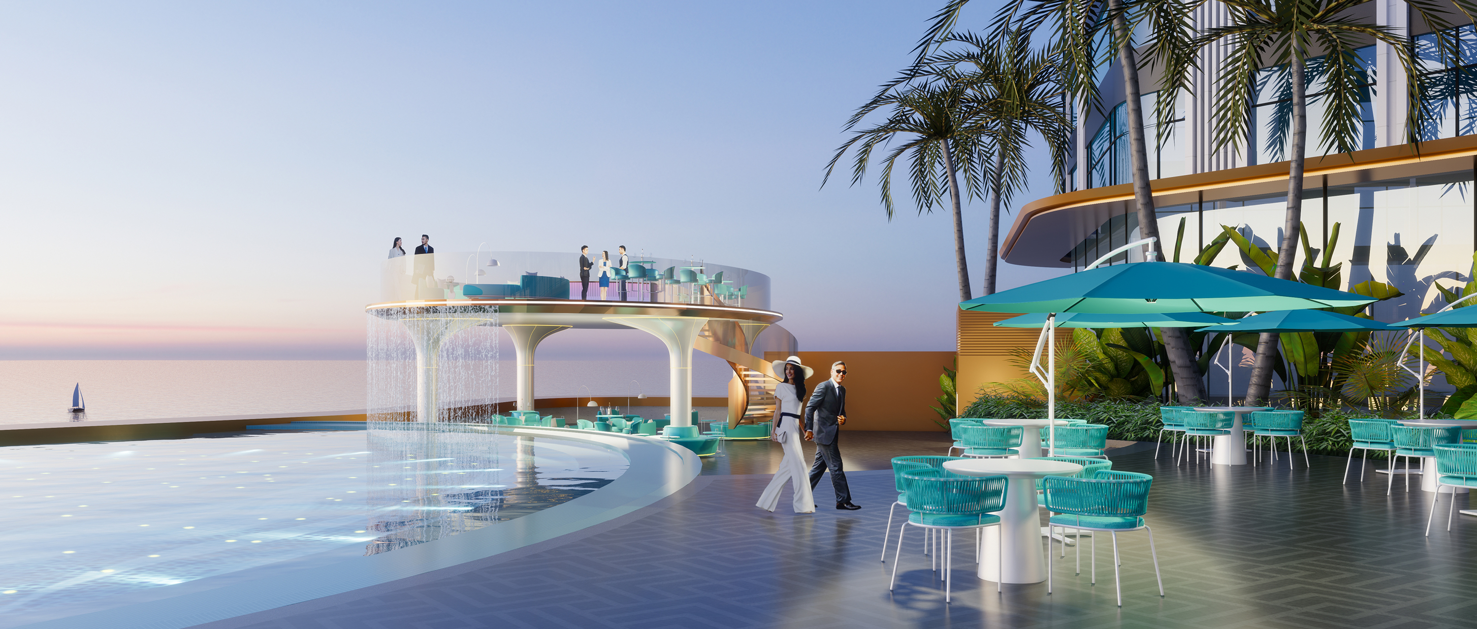 The hotel’s landscape design is inspired by ocean waves, extracting the curves of the waves as a design language to create a modern and stylish hotel environment. From the star-lit swimming pool to the cantilevered bar, every detail embodies the "four dimensions in one" concept (fashion, art, luxury, romance), offering global travelers a new paradigm for premier coastal getaways.