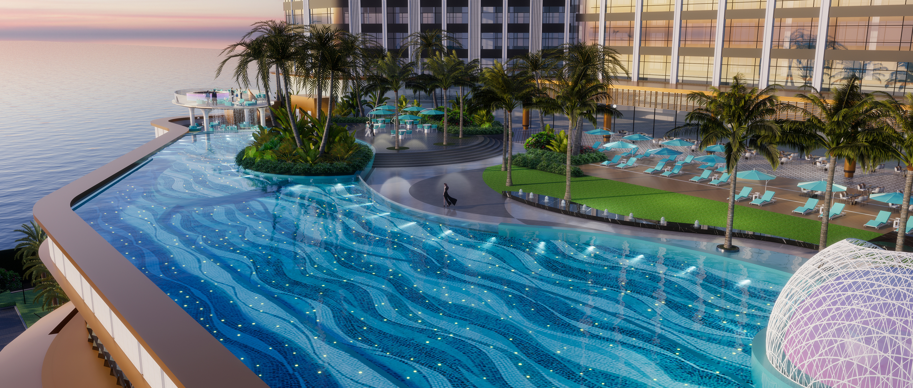 Its architecture merges ultra-modern design with Southeast Asian aesthetics, shaping a trendy resort destination. The expansive rooftop garden of over 8,000 square meters integrates tropical natural elements with fashionable luxury. Surrounded by panoramic first-line sea views, the hotel features a semi-transparent infinity starlight pool, a multi-level terrace with a water curtain bar, and swaying island coconut groves—creating a new paradigm of world-class luxury vacation experiences.