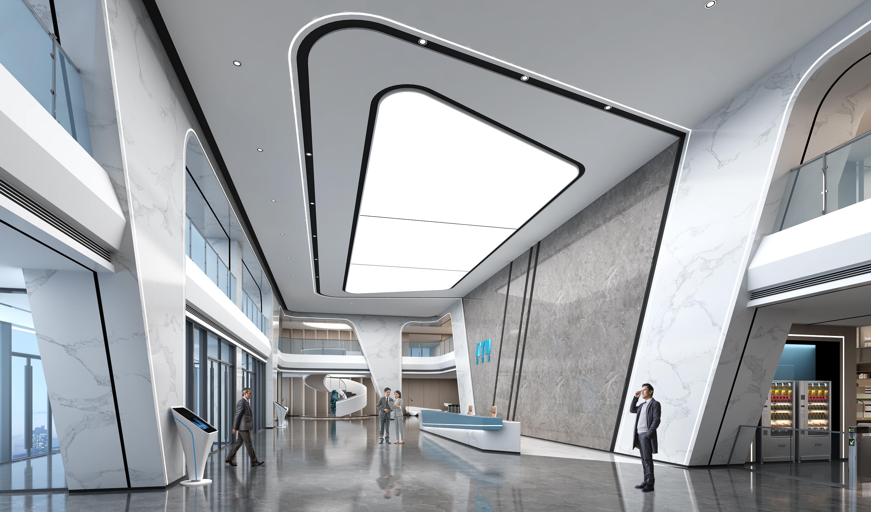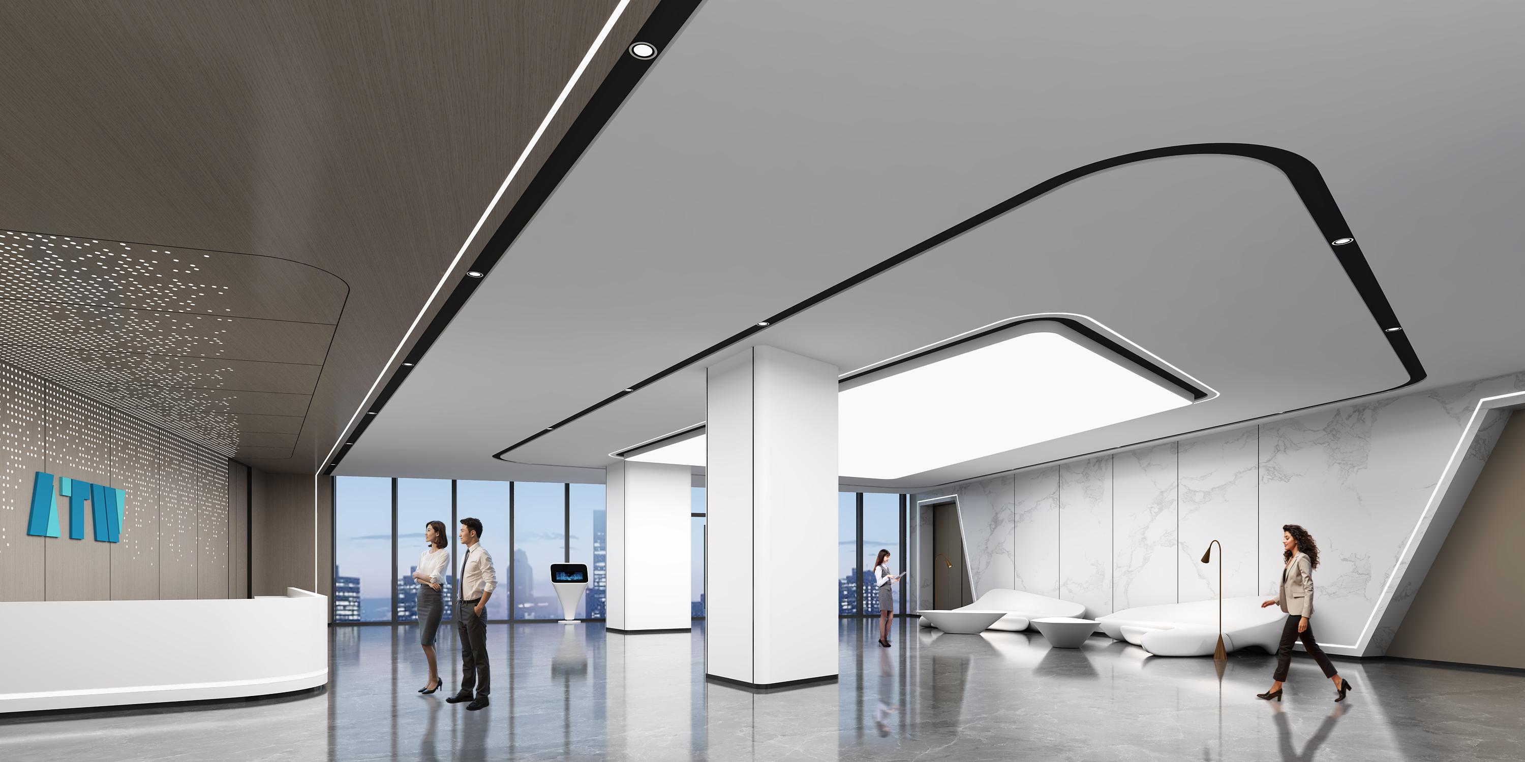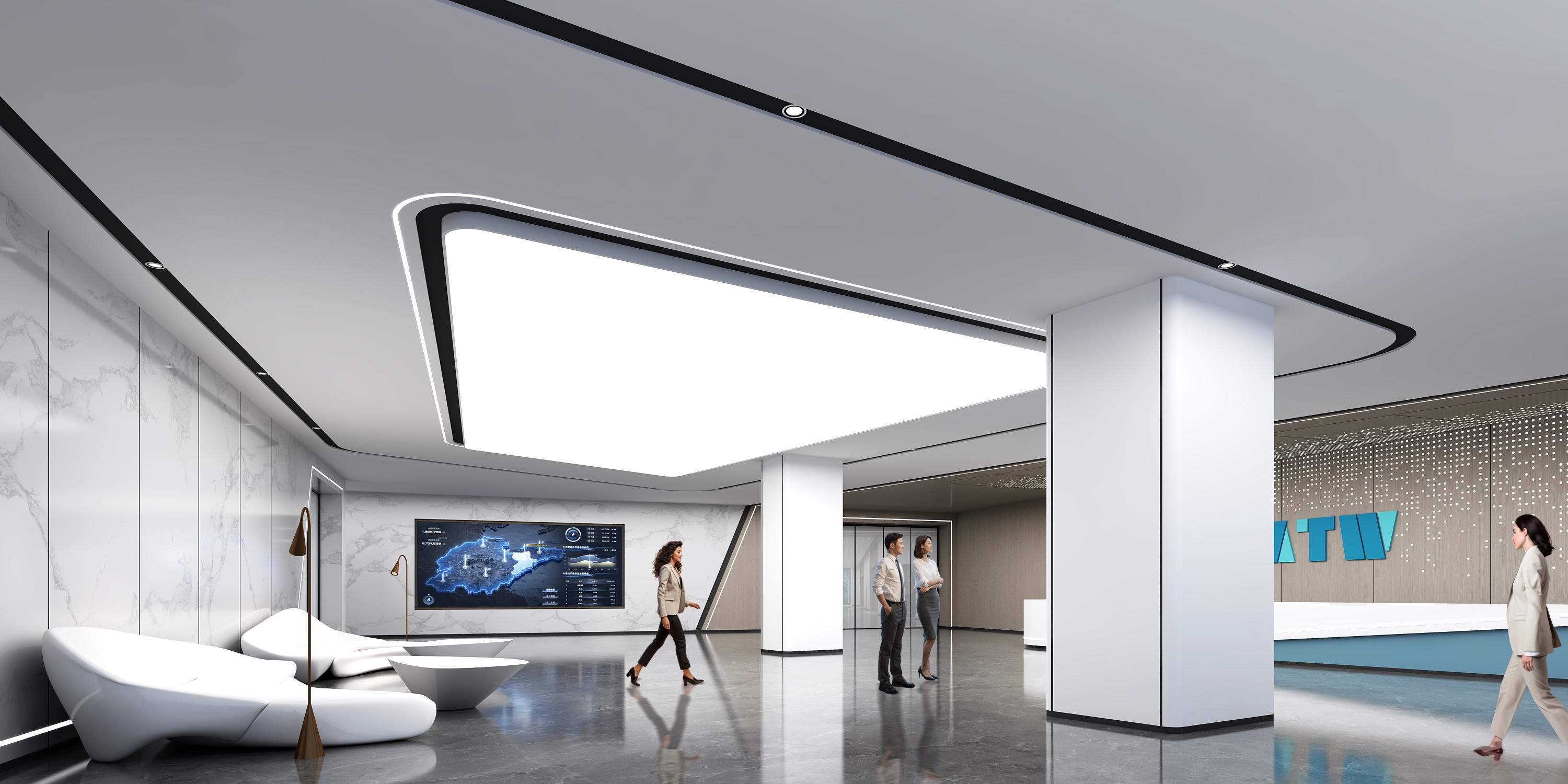 The vision of a “Technology Green Valley” dissolves the boundaries between interior and exterior, between architecture and landscape. Inspired by the company’s logo and its photovoltaic heritage, the spatial language abstracts silicon wafers, solar cells, and module grids into geometric patterns that inform both the architectural framework and interior detailing. This design logic creates a continuous visual rhythm across ceilings, partitions, and furnishings, reinforcing identity and precision.