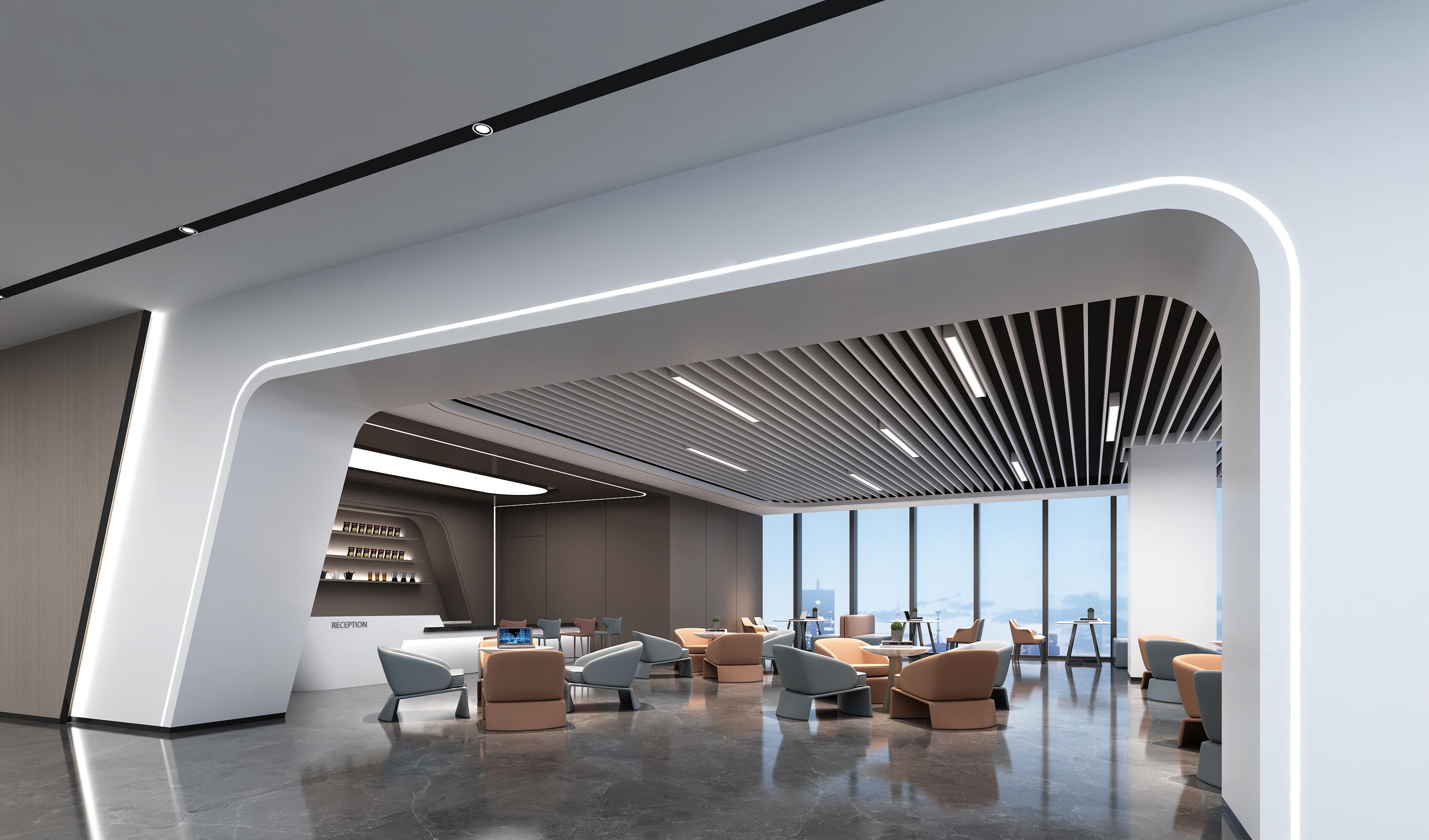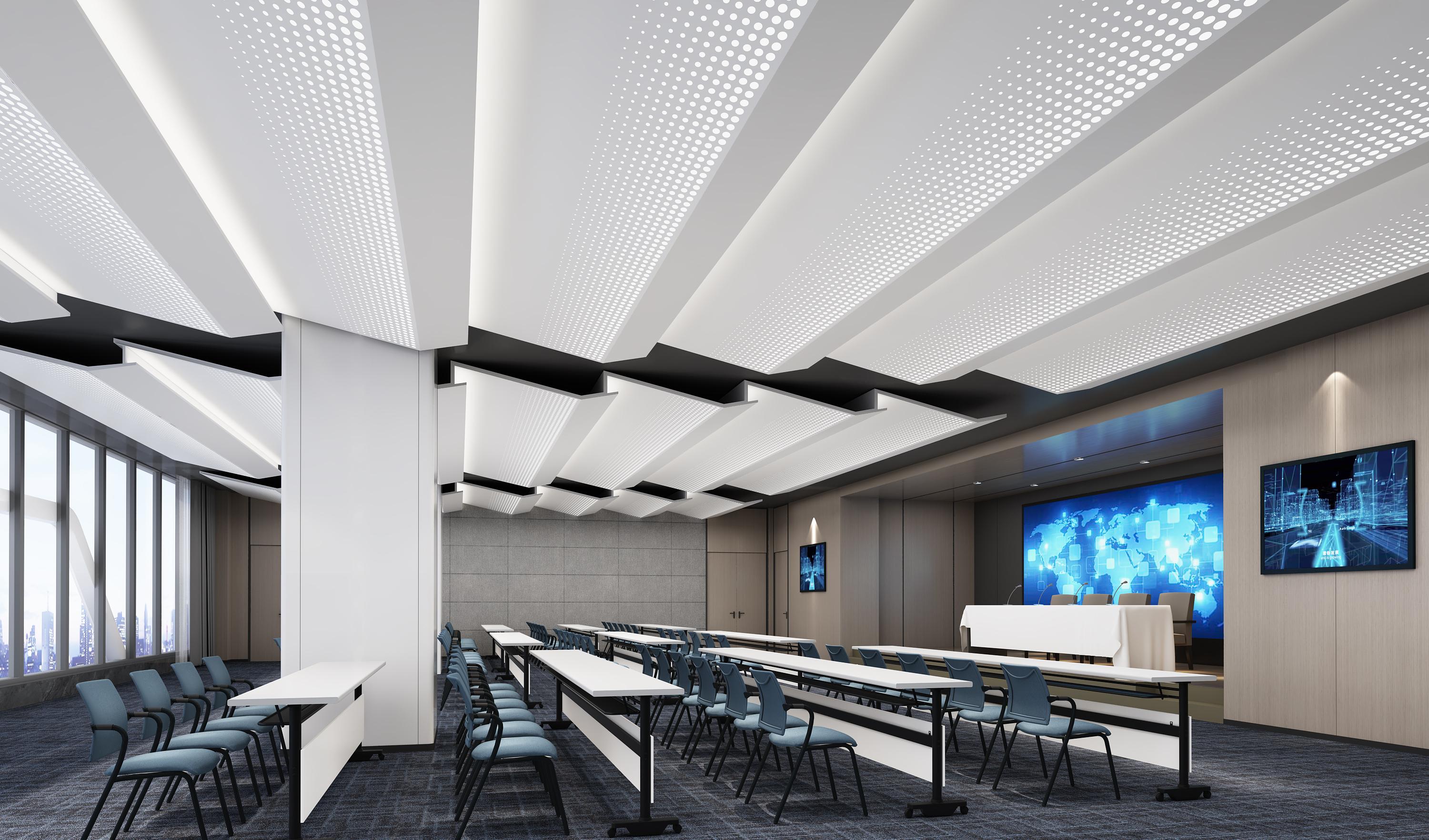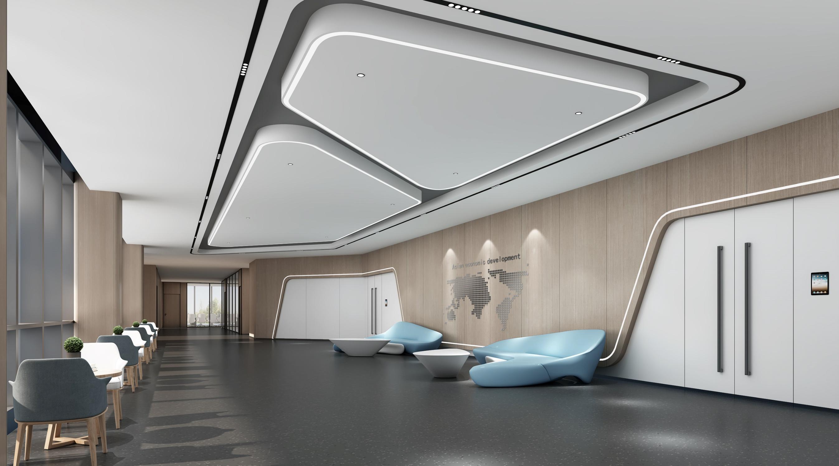The vision of a “Technology Green Valley” dissolves the boundaries between interior and exterior, between architecture and landscape. Inspired by the company’s logo and its photovoltaic heritage, the spatial language abstracts silicon wafers, solar cells, and module grids into geometric patterns that inform both the architectural framework and interior detailing. This design logic creates a continuous visual rhythm across ceilings, partitions, and furnishings, reinforcing identity and precision.