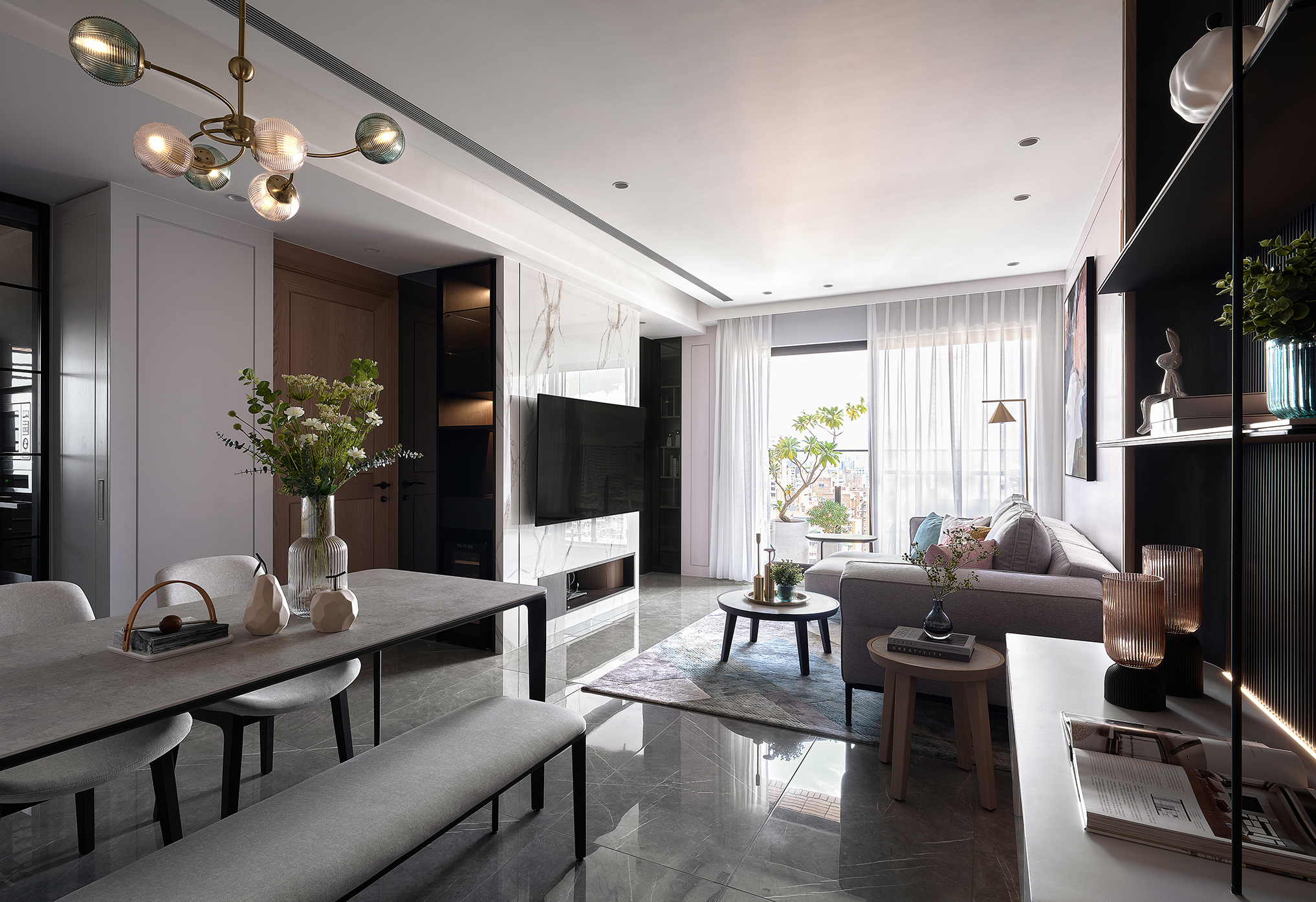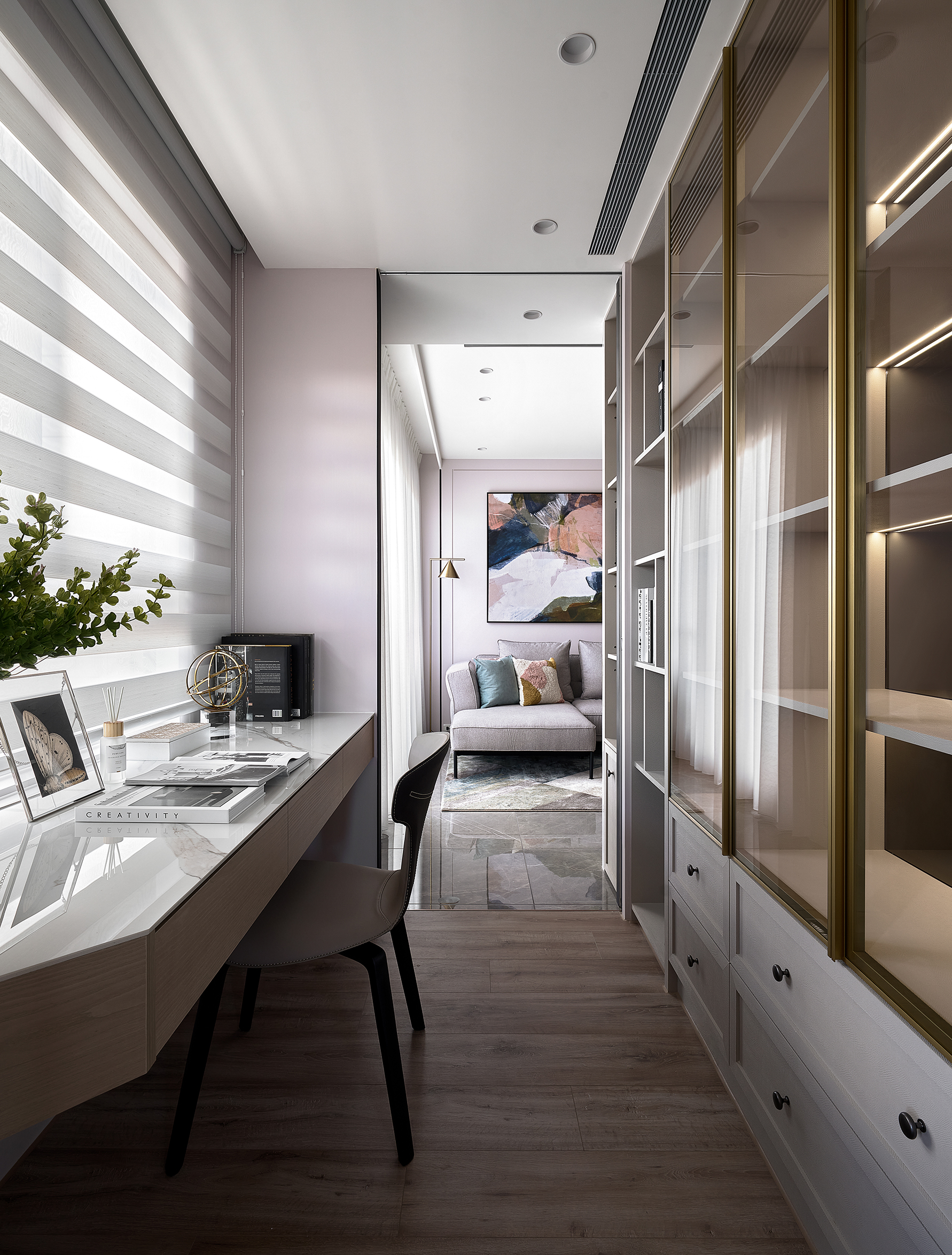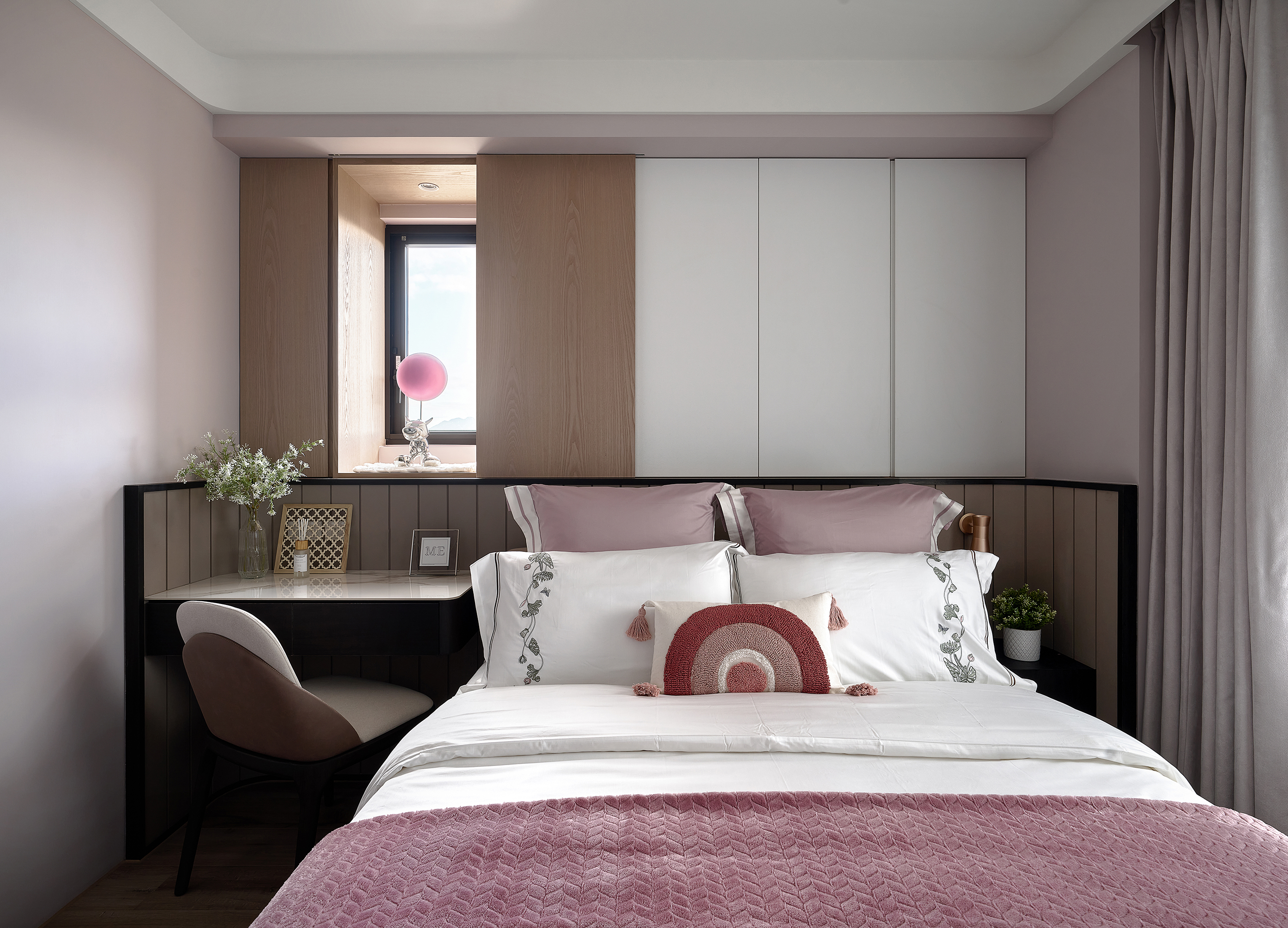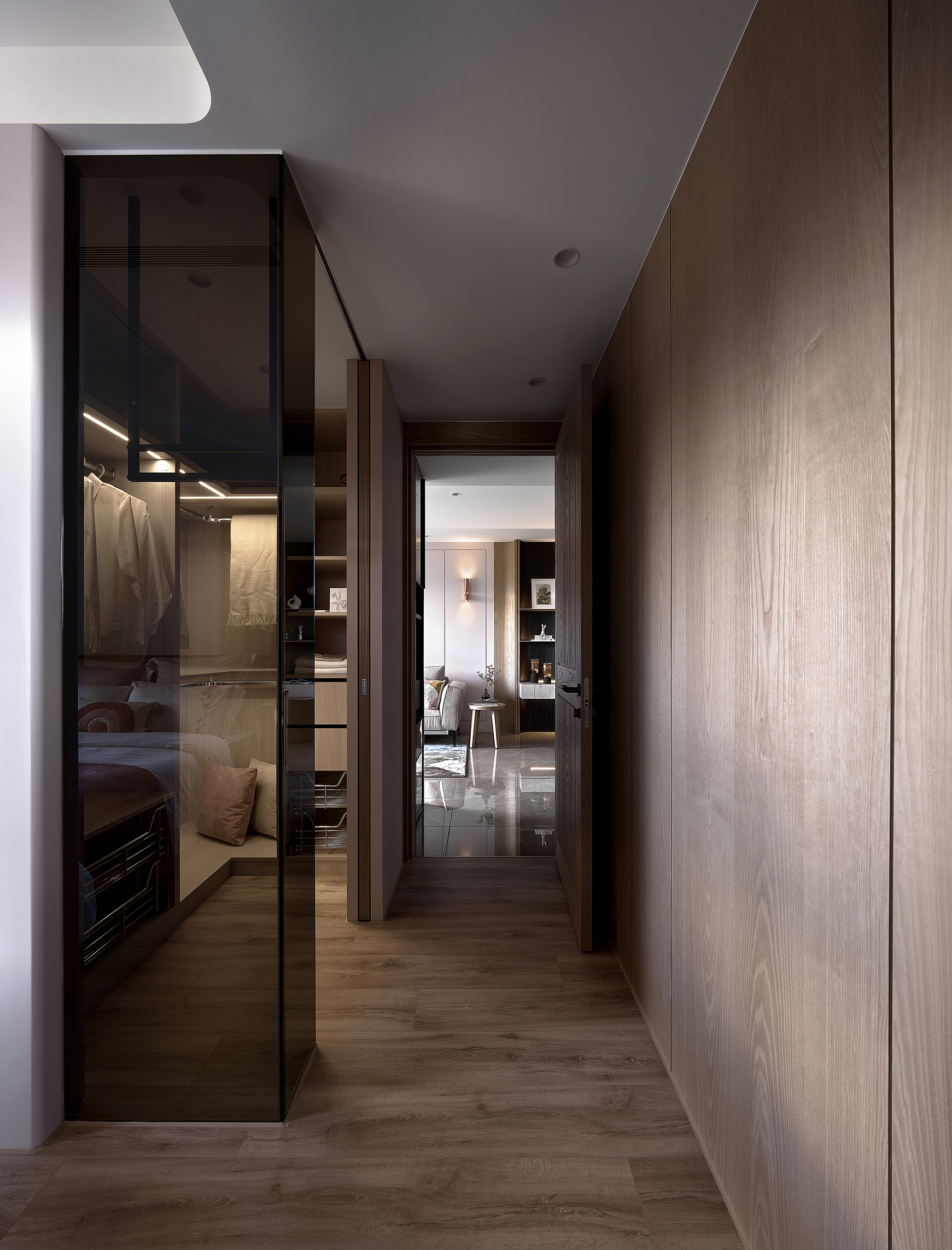 Thoughtfully restructured the layout to dissolve spatial tightness and reconnect functions. Removing the partition between the master bedroom and living room transforms the space into a dual-function area, serving as both a study and a dressing area. By reorienting the TV wall and introducing dual-access openings, the design breaks the limitations of a single-direction circulation, enabling the living room to extend into the private quarters as an intimate retreat. Through this seamless integration of public and private realms, the daily rhythms of sleeping, reading, and leisure flow naturally together—creating a flexible and cohesive spatial sequence that reflects the homeowner’s desire for openness and continuity.