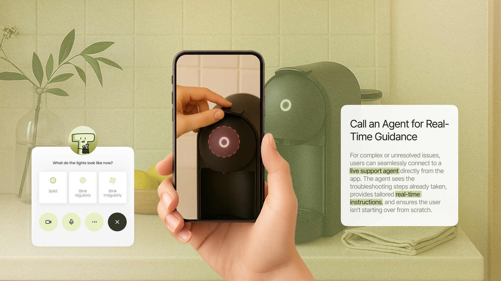The UX is designed for traceability, clarity, and emotional ease. The journey unfolds logically: observe → confirm → fix → verify → celebrate. Every step is accompanied by visual checks, real-time agent handoff if needed, and references to official guides or vetted community sources. Users are empowered to draw, tap, or explore a branching “TreeTop” view of potential solutions—highlighting progress, dead ends, and successful paths.