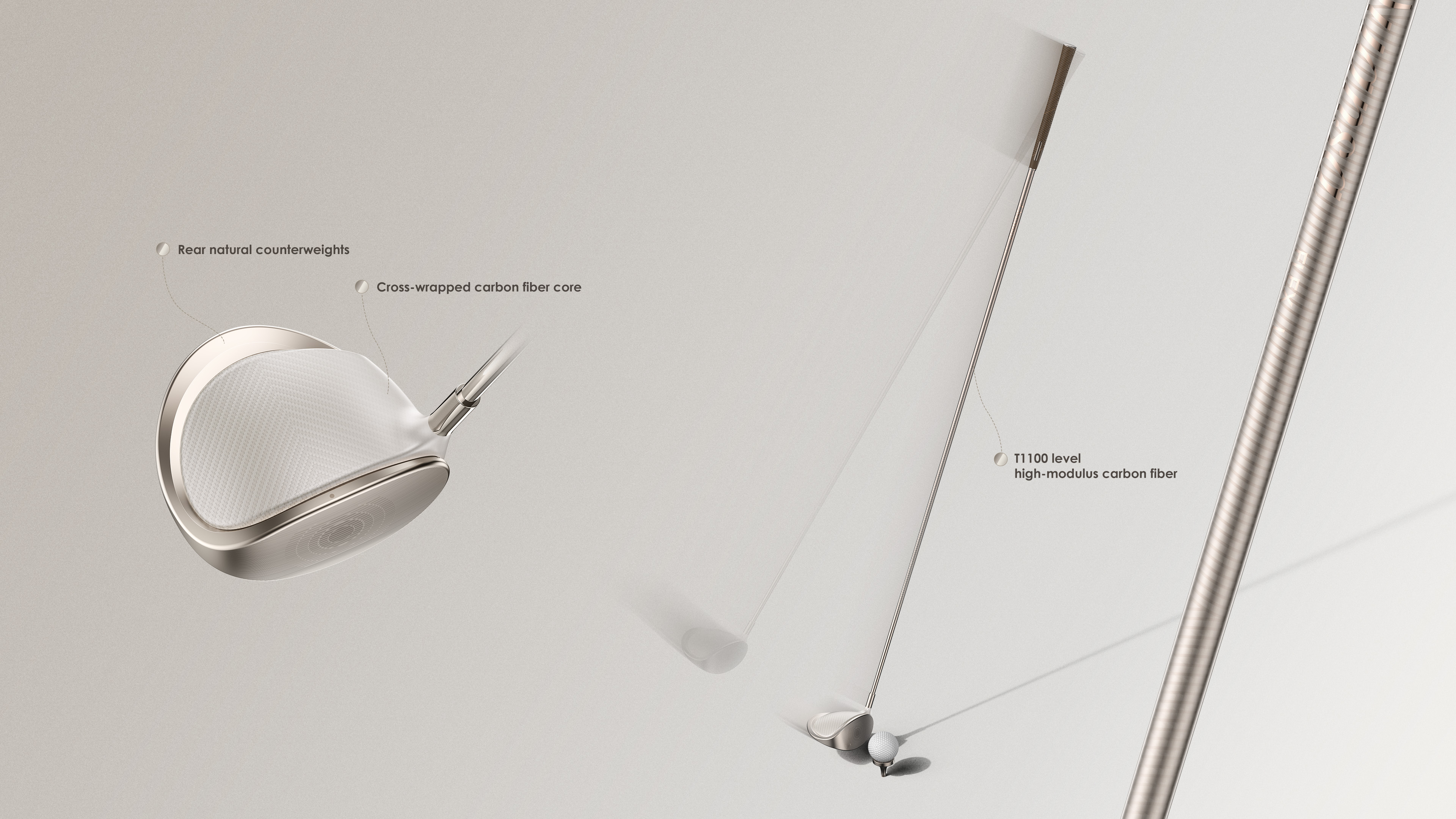 The shaft is made entirely of T1100 level high-modulus carbon fiber, ensuring efficient swing performance and precise energy transfer. A cross-wrapped carbon fiber core encases the titanium striking face, balancing lightweight construction with high strength. The naturally weighted rear eliminates the need for additional counterweights, shifting the center of gravity rearward to improve forgiveness and swing efficiency.