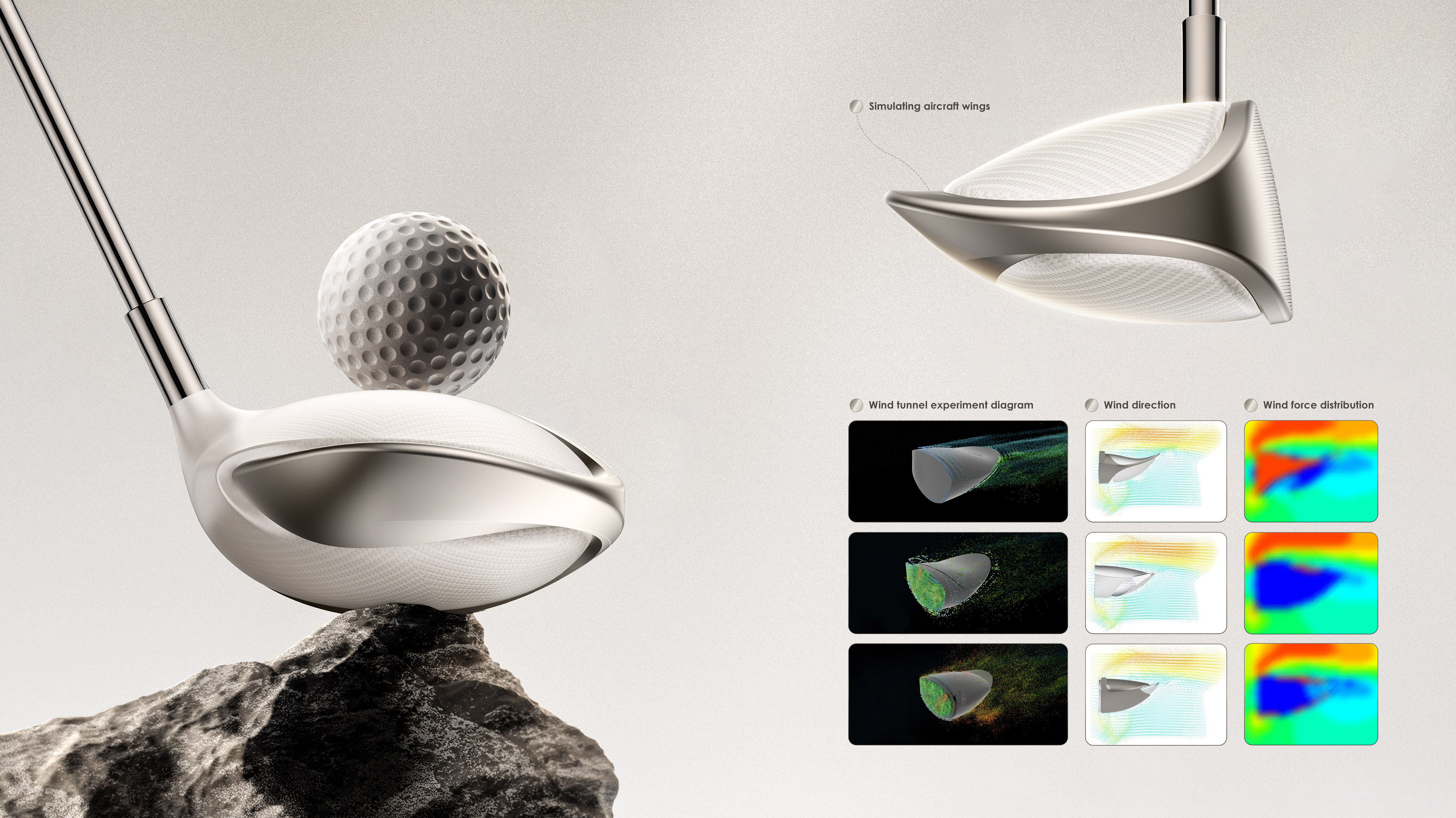 Oyansa V1 breaks the conventional design logic of golf clubs that rely solely on stiffness for power, integrating lightweight rebound, precise control, and professional performance into a single solution. The clubhead features a 3D design combining “streamlined contours + teardrop profile + wind tunnel.” The uplifted tail wing, inspired by aircraft wings, generates lift through low-pressure airflow while reducing drag.