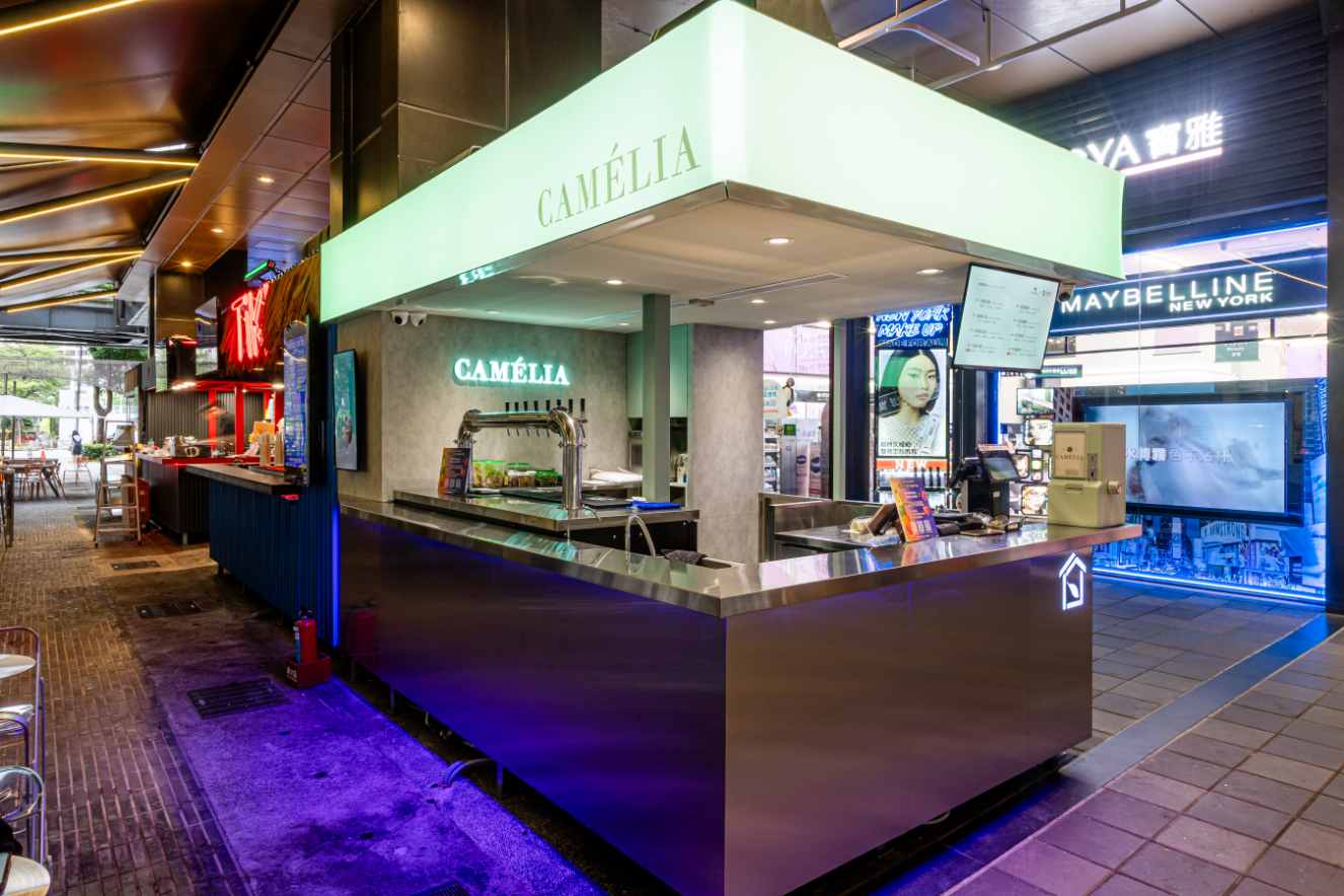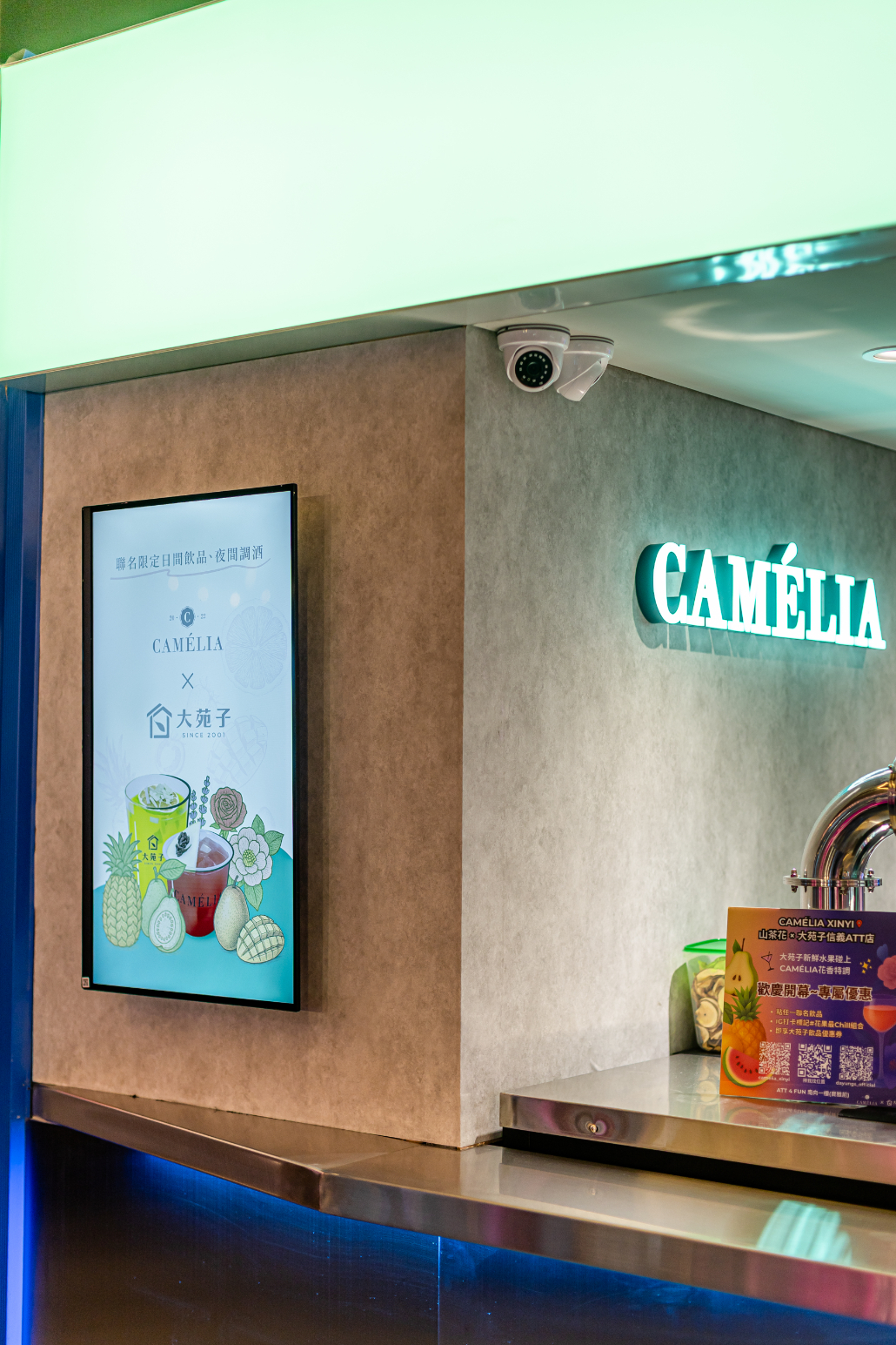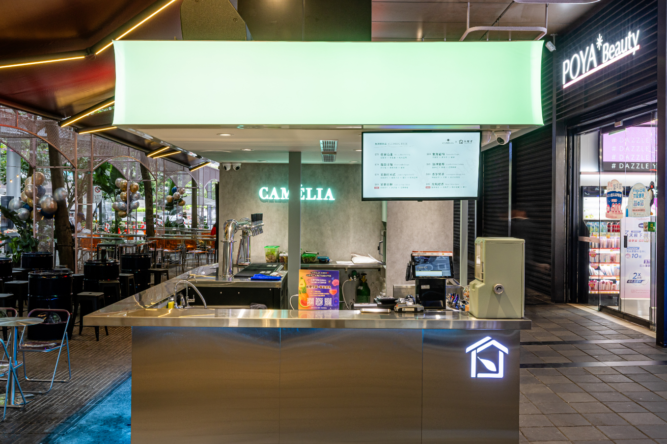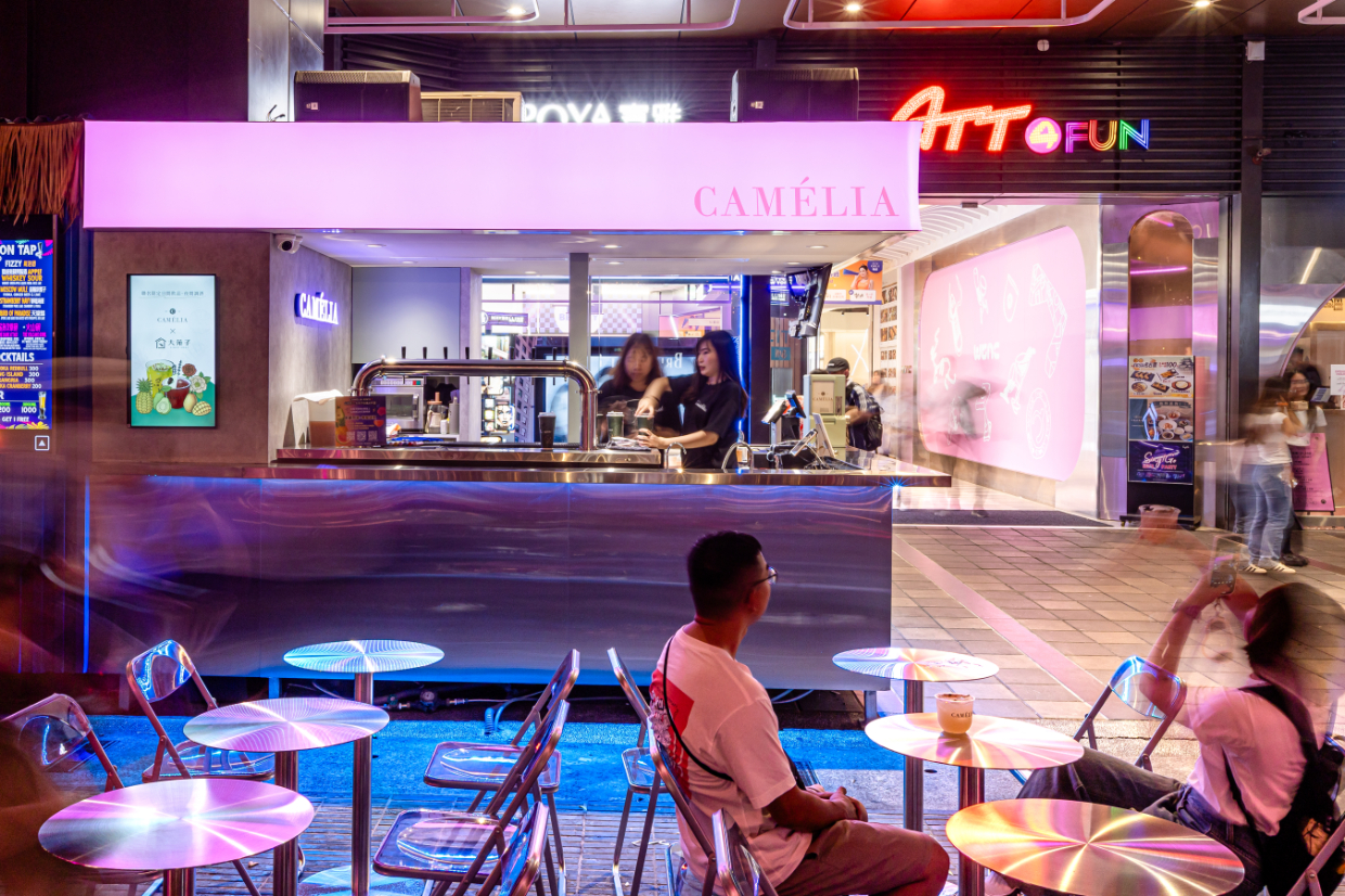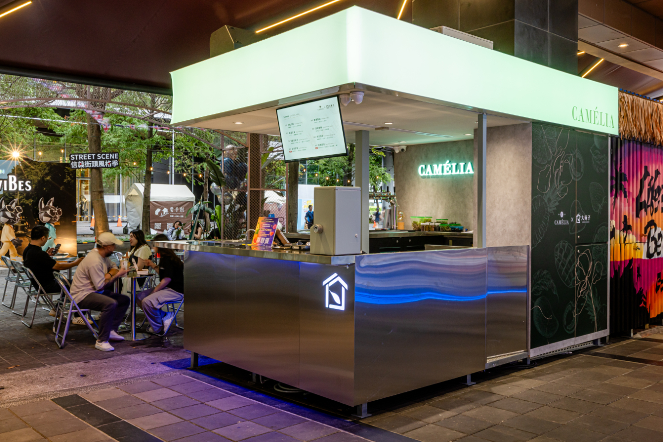 Sitting in the hyper-dense commercial core of Taipei’s Xinyi District, this project confronts a critical urban typology: the street-side kiosk. Conventionally, such structures are static, mono-functional entities designed solely for transactional efficiency. However, this site required a radical reimagining to accommodate a dual-brand operation with conflicting temporal logics: DaYung's, a brand synonymous with the rapid, high-volume consumption of fresh fruit tea by day, and Camélia, which introduces a slow-paced, ritualistic floral cocktail experience by night.