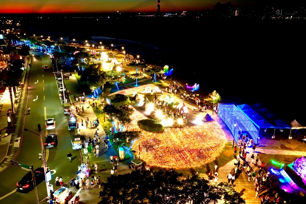 The exhibition site extends along the waterfront, seamlessly blending with the natural beauty of Bali and the architectural elegance of the Tamsui-Kand Bridge. By day, the golden sands and coastal scenery form a tranquil vista; by night, dynamic lighting transforms the park into a radiant dreamscape.