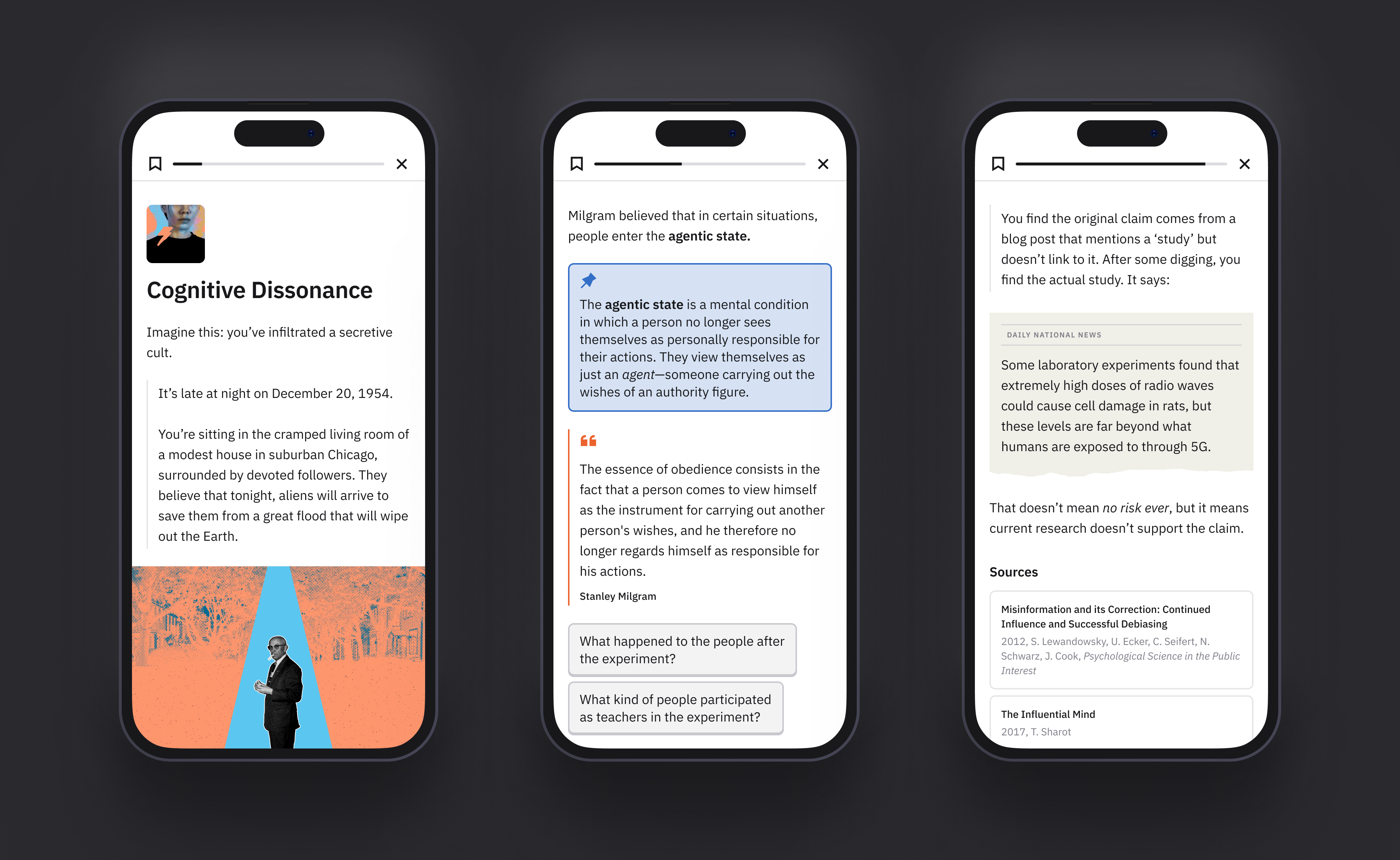 Reasonal teaches critical thinking through peer-reviewed research and real-life examples, not made-up scenarios. You learn about obedience by examining why 65% of ordinary people administered potentially lethal electric shocks to strangers simply because an experimenter told them to. You learn about false analogies by exploring how "data is the new oil" influenced actual tech policy.