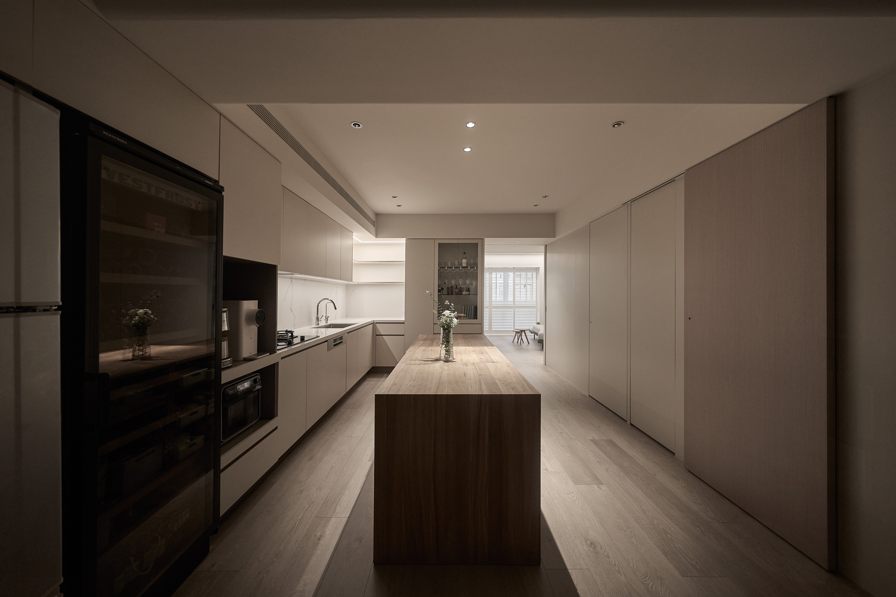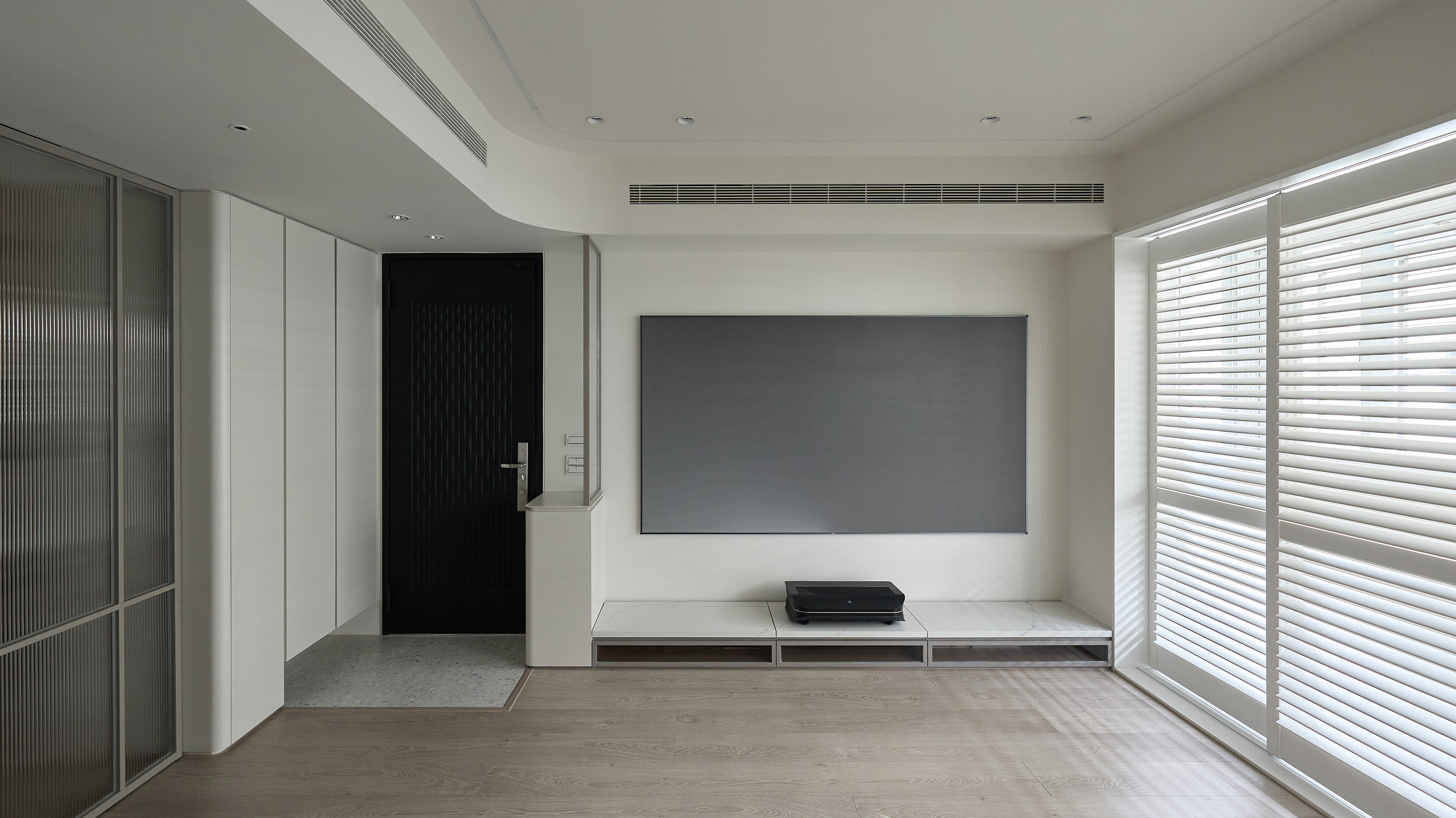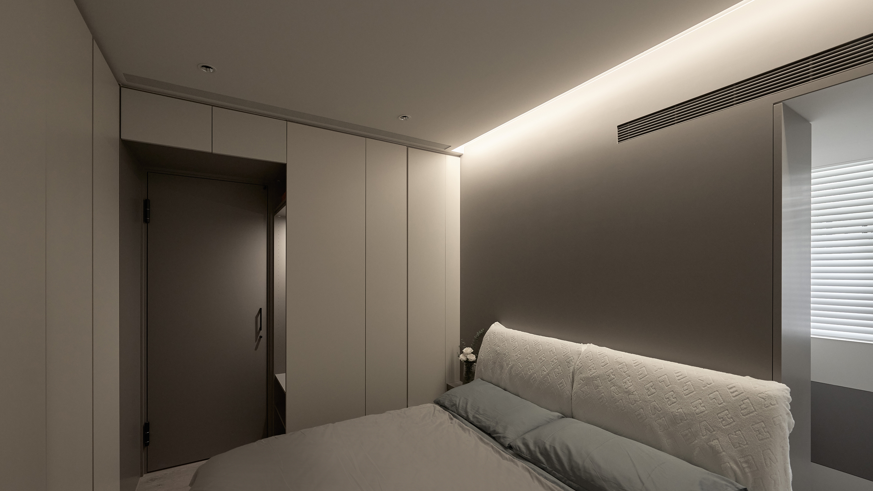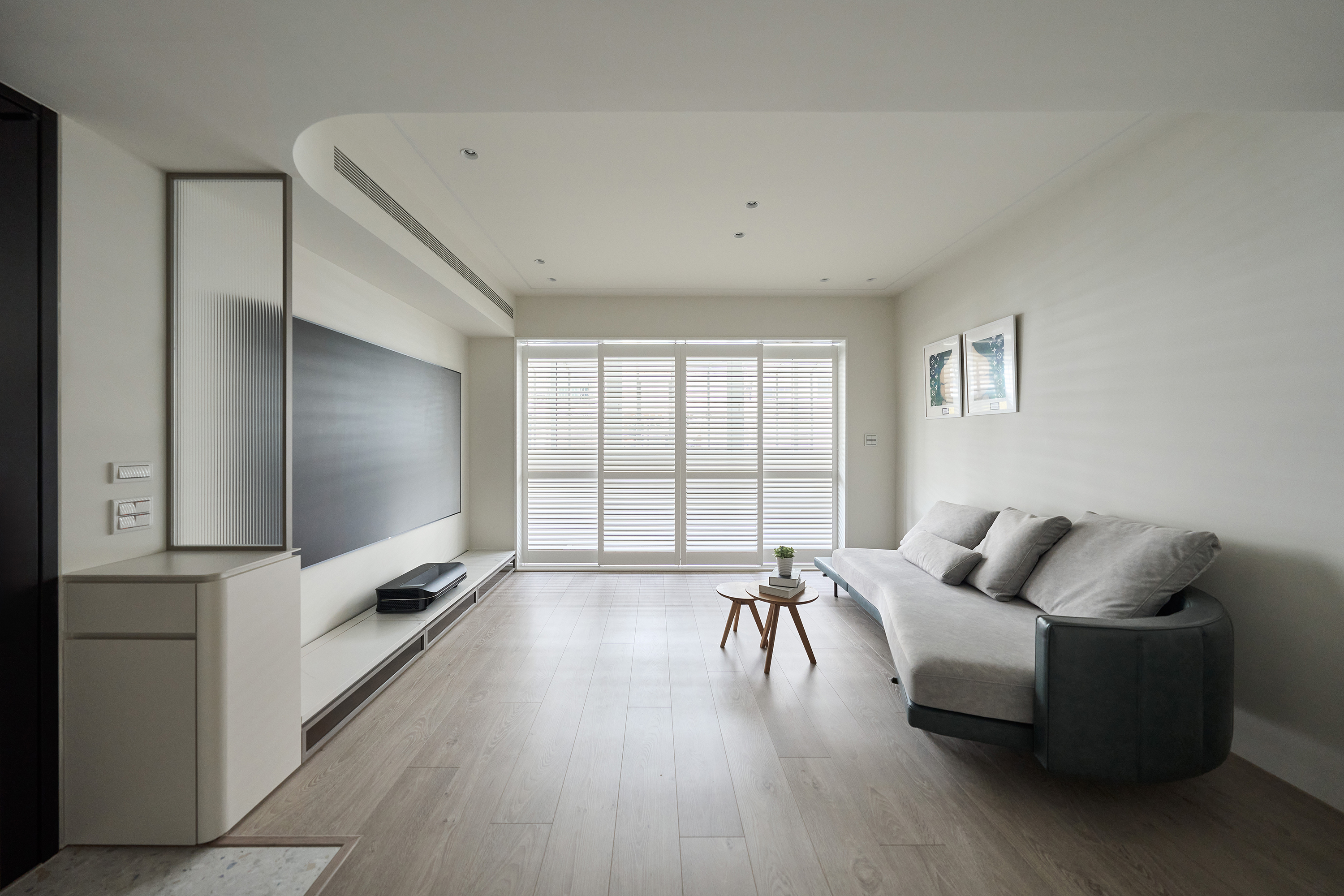 The original master bedroom was overly expansive, constricting circulation and blocking natural light. The designers strategically removed all interior partitions to resolve this problem and established a clear central axis to anchor the home. Around this axis, they gently arranged the private quarters near the kitchen and dining area, while a broad, unobstructed path was preserved through the center, allowing movement to flow effortlessly. What was once a cramped dining space is now transformed into a generous, multifunctional area that the family can adapt to daily needs and gatherings. By unifying the size of the three bedrooms to ensure comfort, the designers thoughtfully freed up fragmented space and carefully repurposed it as an independent guest bathroom. This addition significantly enhances the family’s daily routines, enabling all three members to bathe and prepare simultaneously with ease. The result is not only a home that fully embodies the functions required for modern life but also a design that fulfills the studio’s belief: to endow each space with enduring value through thoughtful planning.
