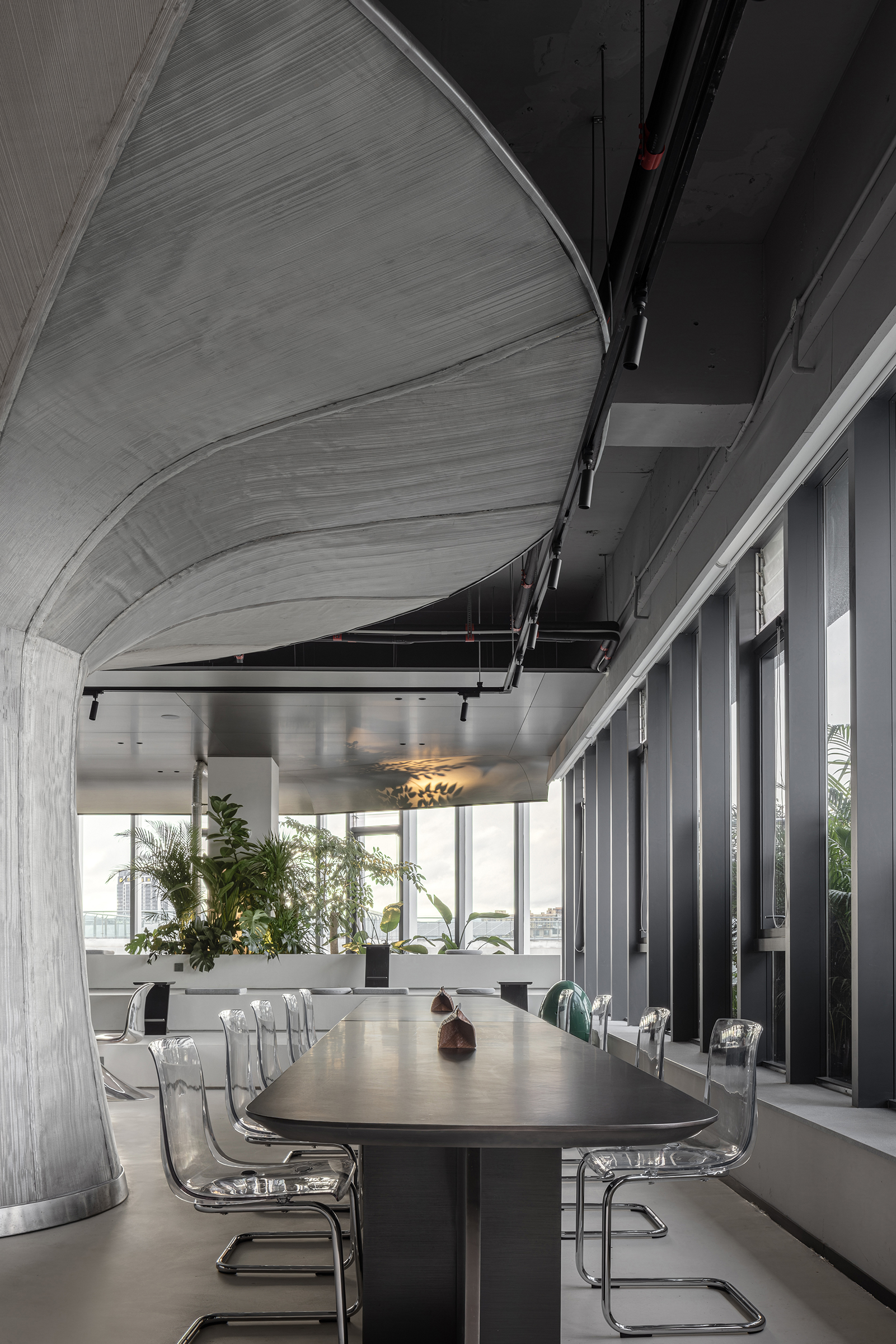 The layout breaks traditional boundaries, seamlessly integrating workspaces with social and leisure areas. The design adapts to various needs, from meetings and product launches to casual cafés. The interaction between industrial elements and the warmth of natural materials fosters a balance between rigidity and softness, rationality and emotion. This synergy promotes creativity and enhances well-being, making the office a "third living space" that nourishes productivity and team spirit.