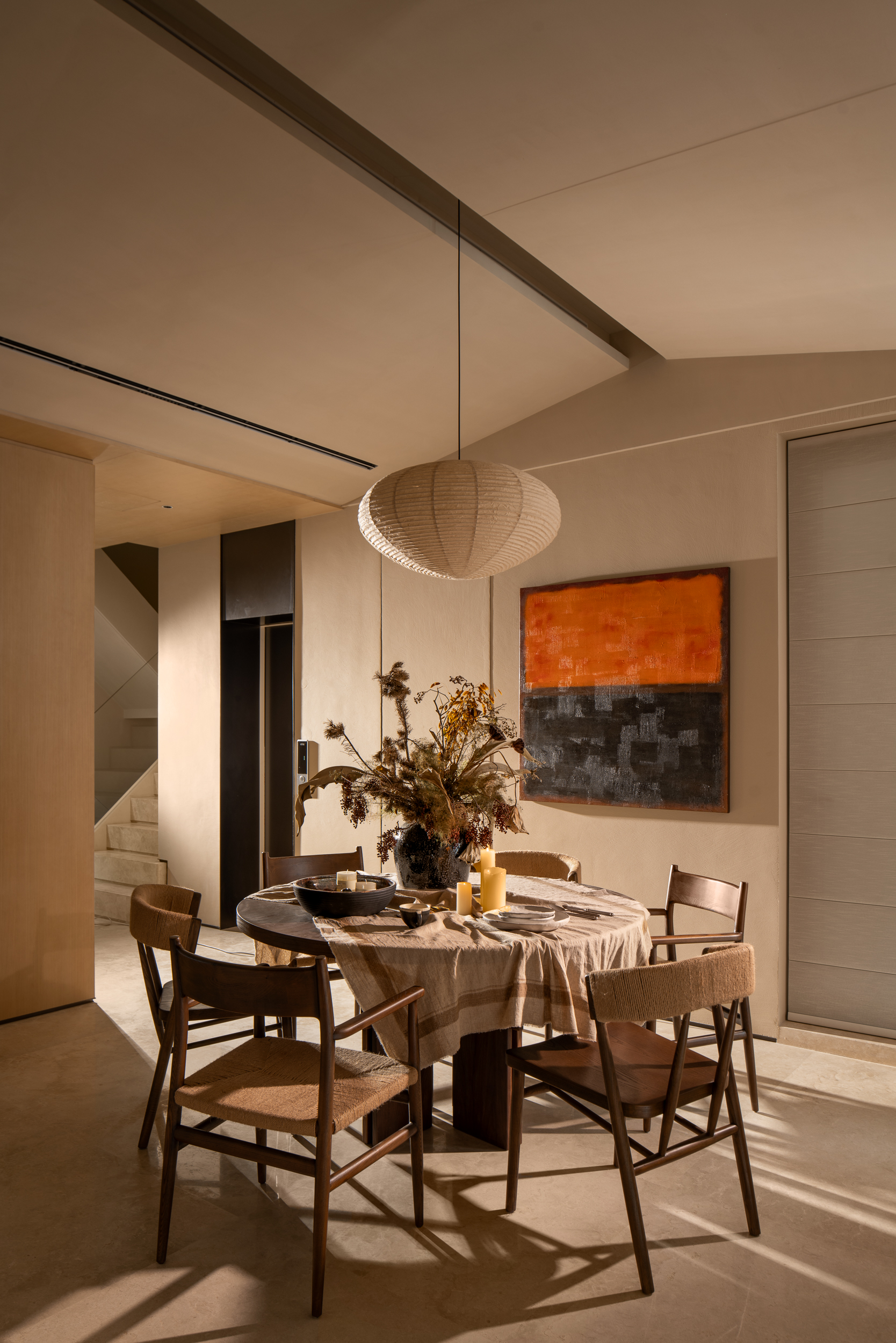 Under the design theme "A Container Folded by Time," it redefines "Wabi-Sabi," elevating it from a niche aesthetic to a "spiritual luxury," aiming to create a haven for spiritual healing for high-end clients seeking an authentic lifestyle. The design eschews ornate decoration, allowing space to become the narrative vehicle. The interior architecture employs an earth-toned palette of micro-cement and wood, creating a warm and serene atmosphere.