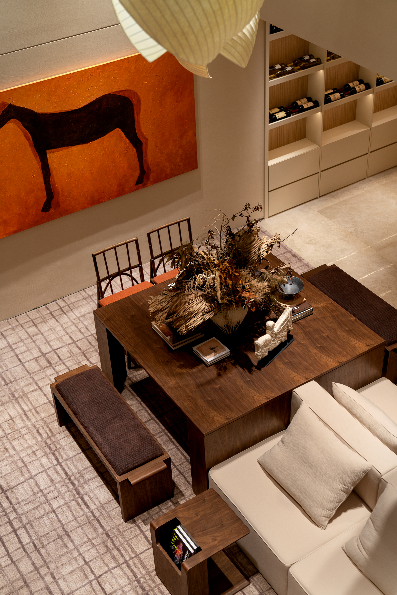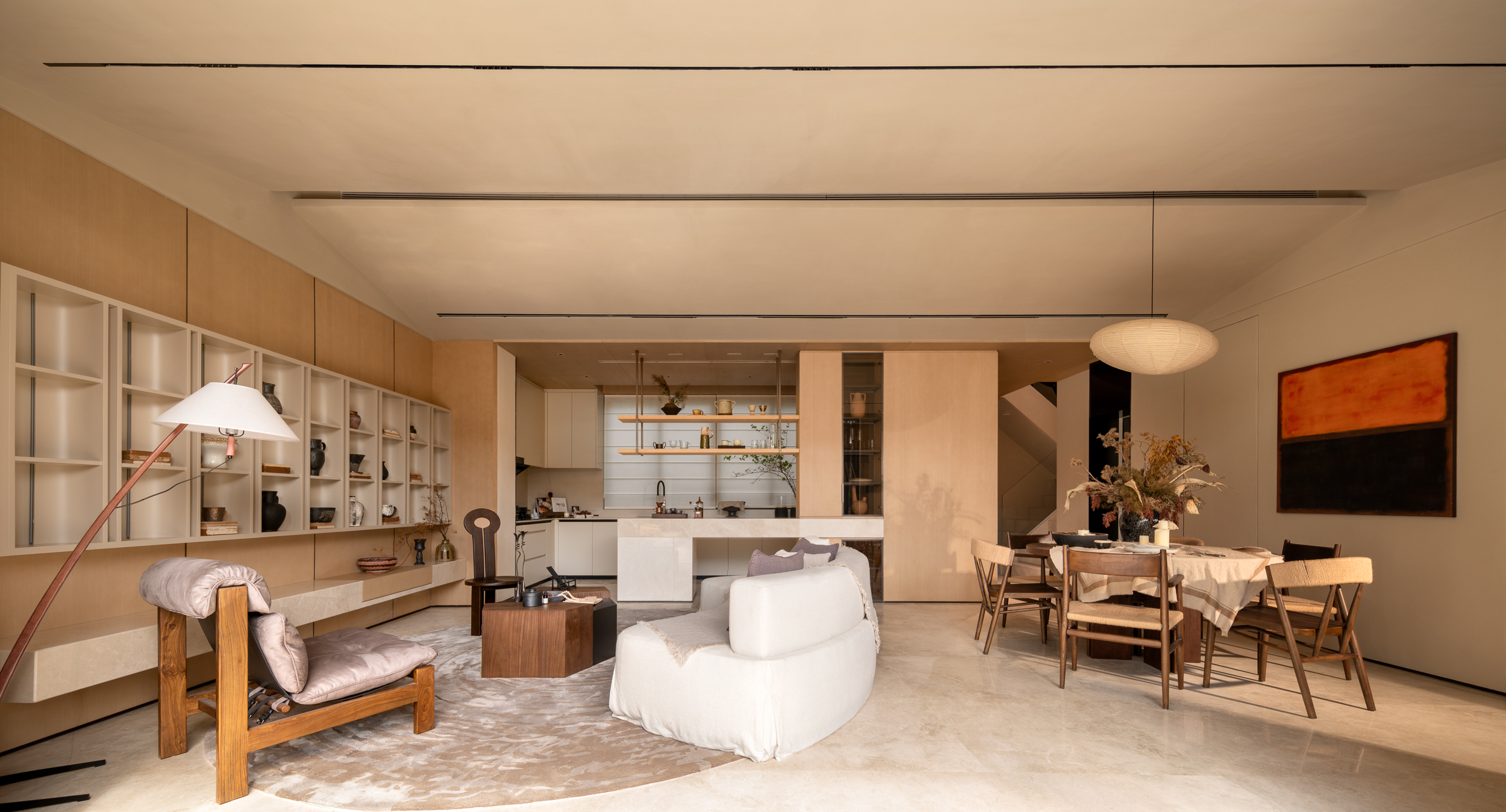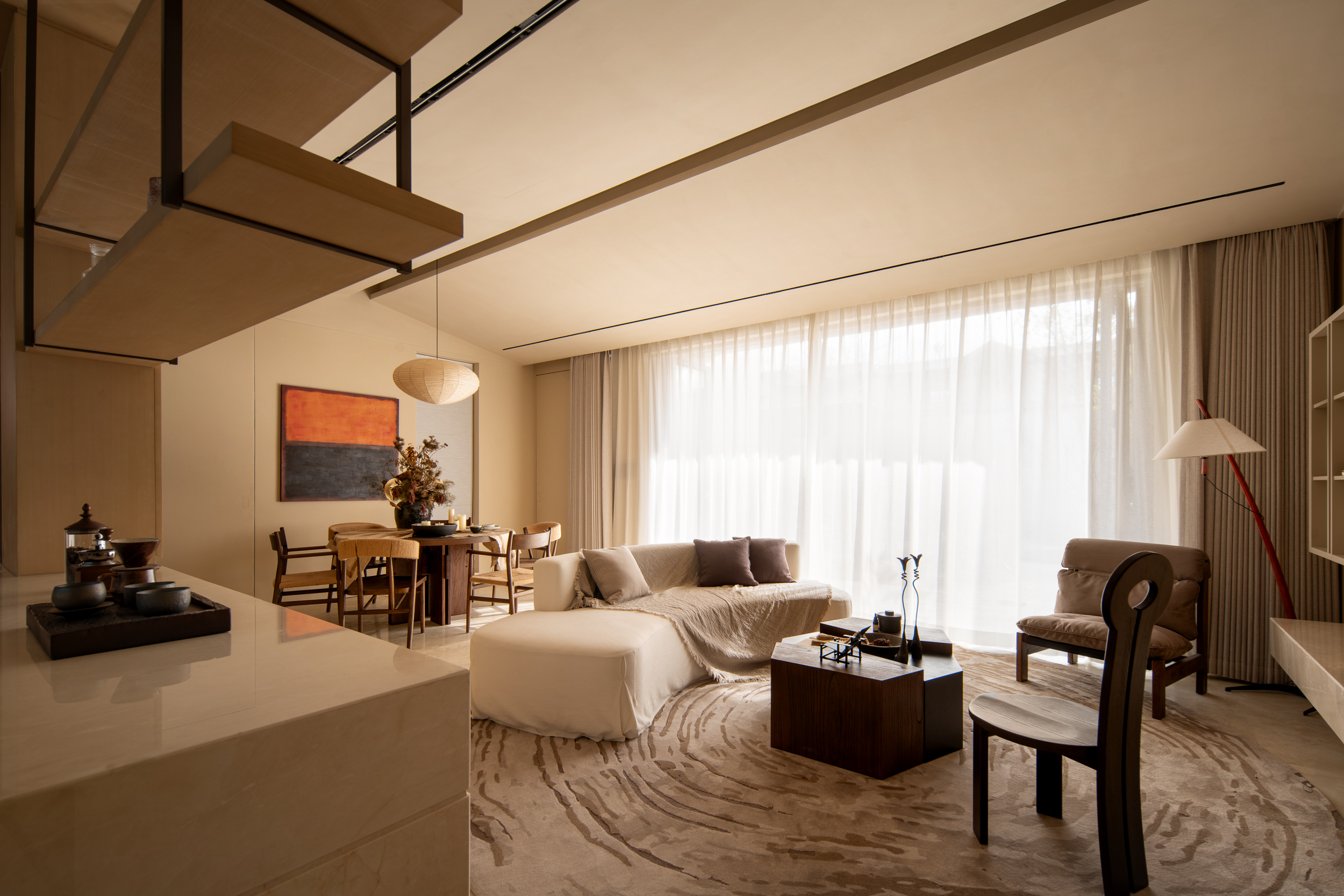 The design strategy utilizes light as a brush, blank space as a canvas, and traces to convey emotion. Furniture features restrained forms and a valued patina of age; textiles present a primitive dialogue between linen and fur; and accessories express abstract art through the beauty of incompleteness. The space strikes a balance between rustic intellect and earthly warmth, ultimately achieving the "perfection of imperfection" and conveying a philosophy of tranquil dwelling—"Enjoying the montane elements, freely empty in tranquility."