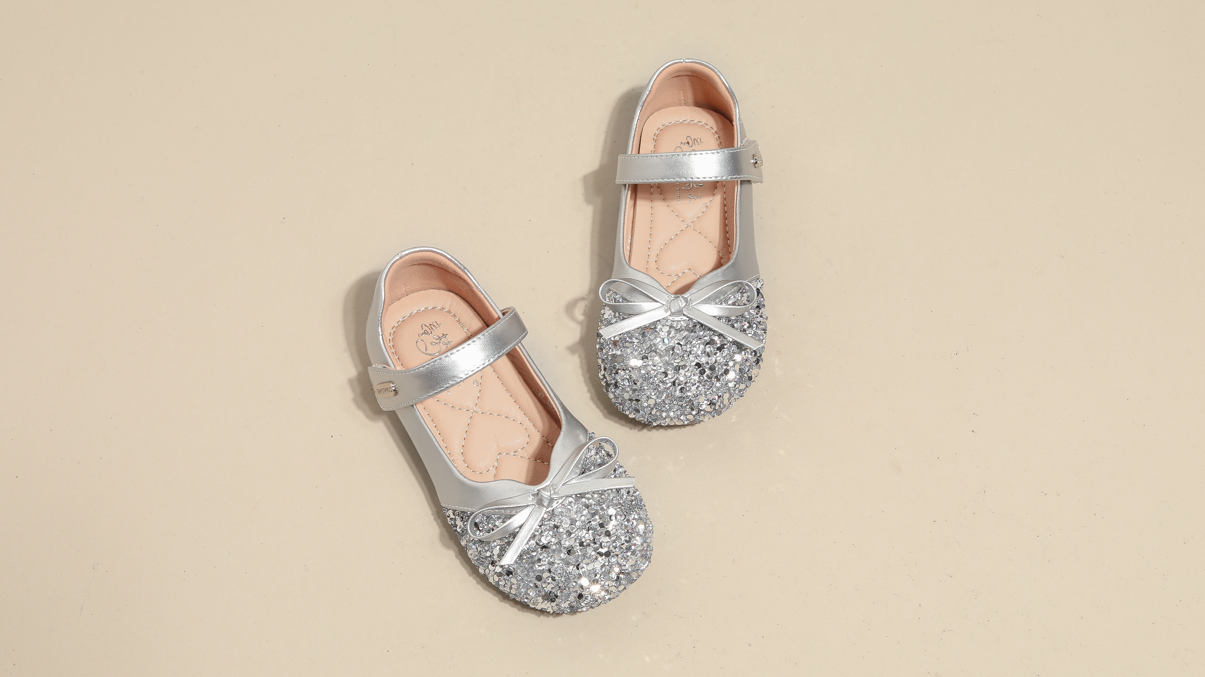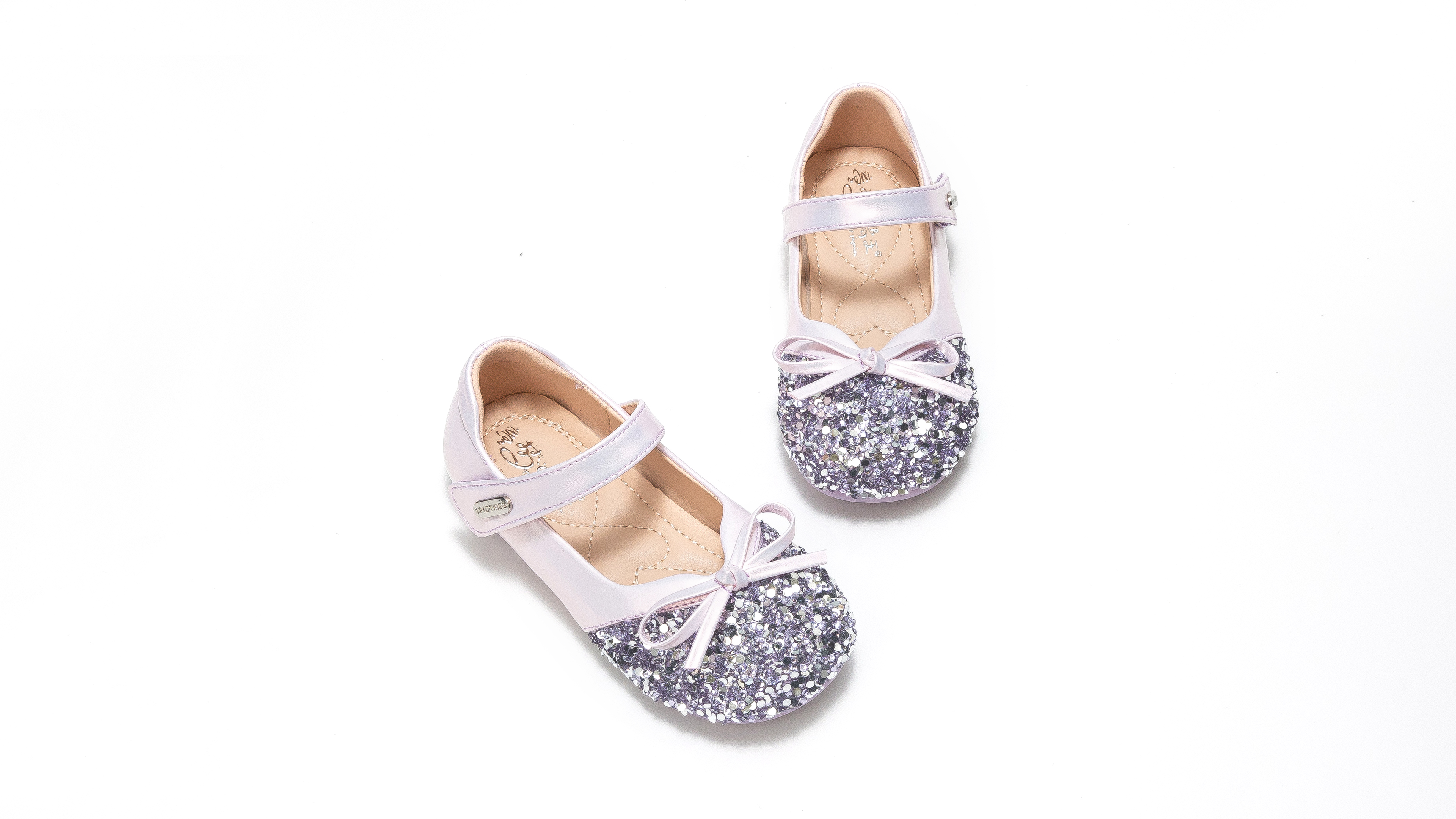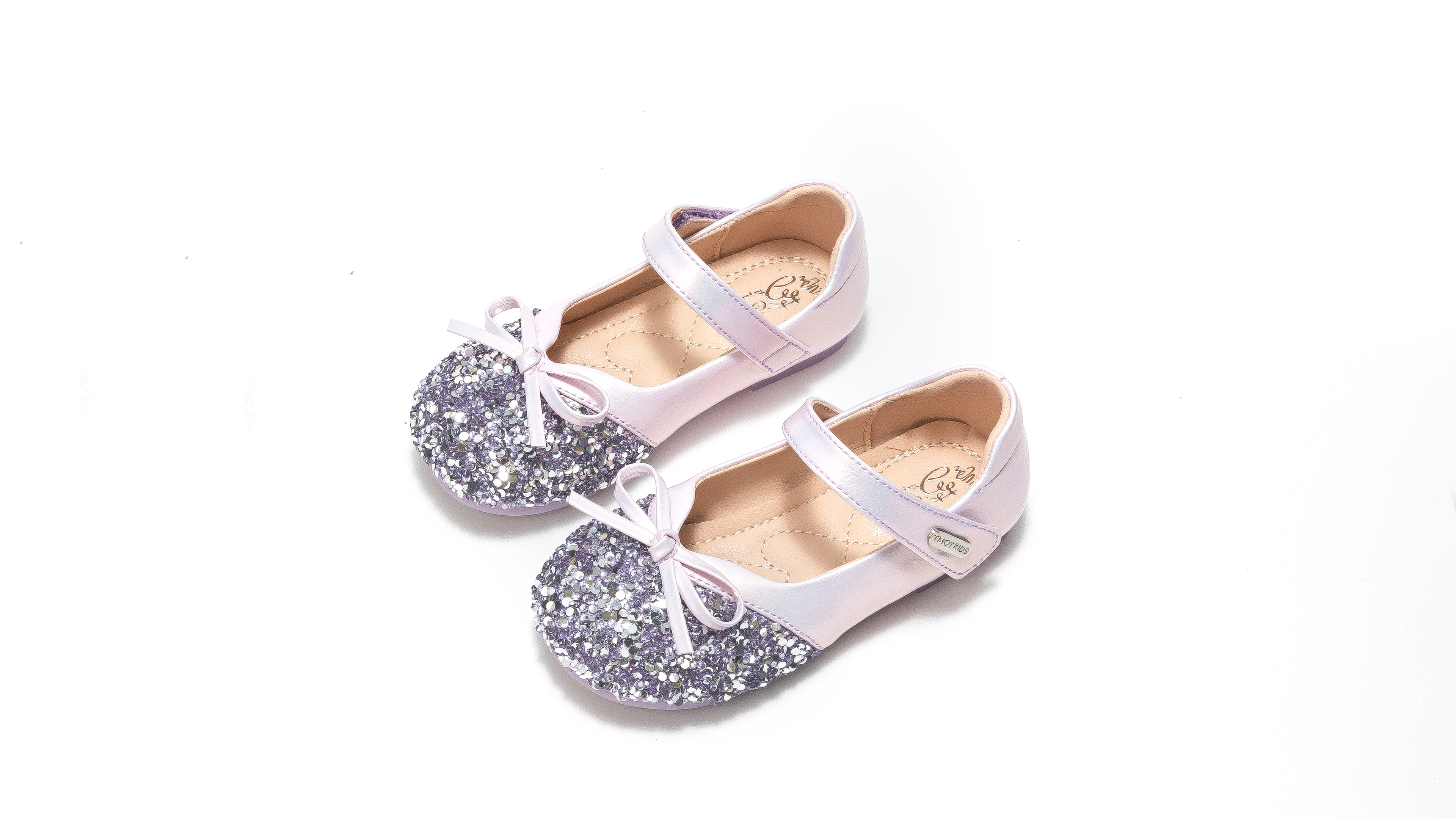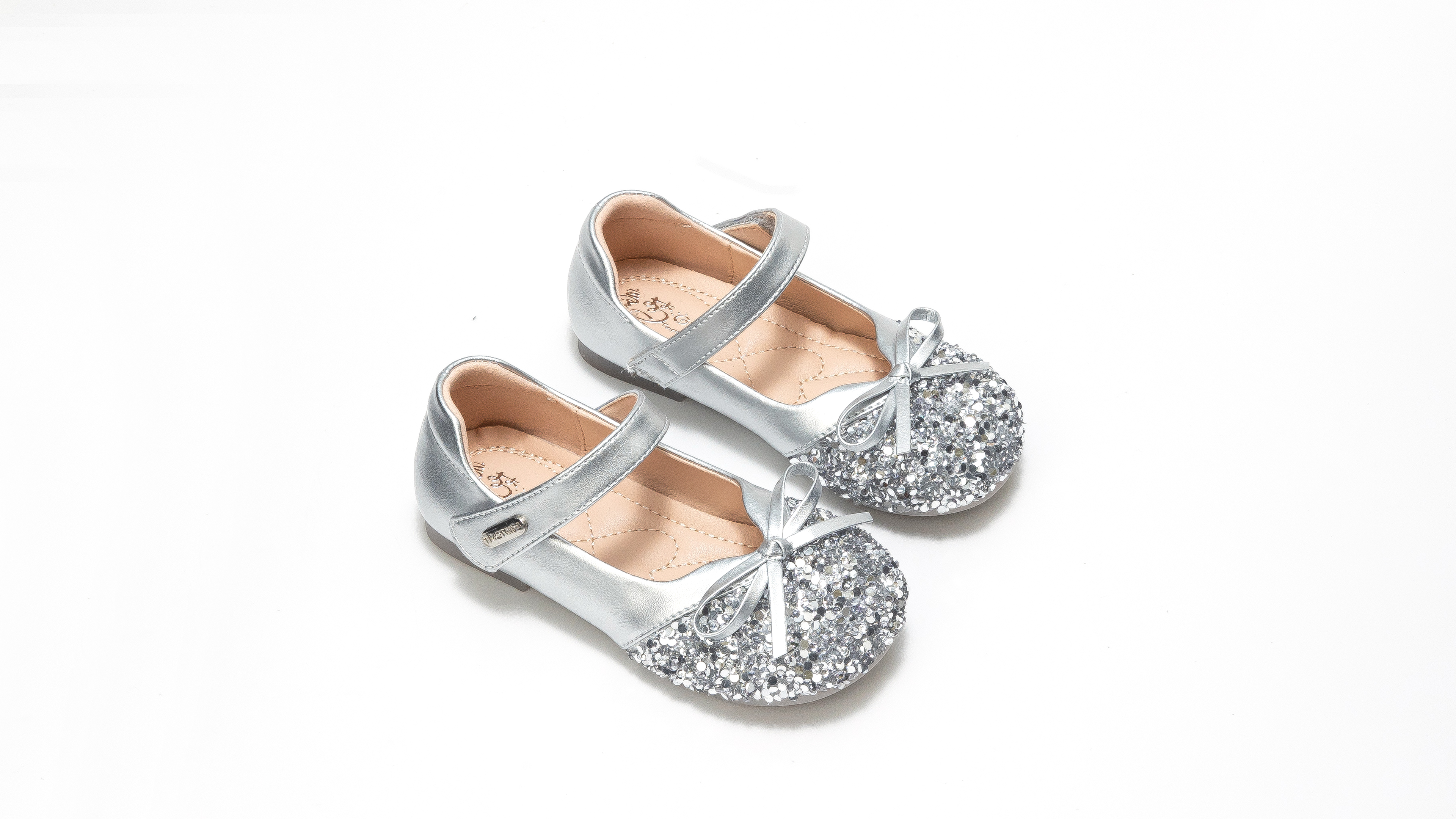 The centerpiece of the aesthetic design is the bow, which serves as the visual focal point. It is not a simple embellishment, but is hand-assembled from dozens of finely cut, crystal-like ornaments that refract a brilliant yet understated glow in different lighting. The shoe's body is crafted from a material with a subtle shimmer, harmoniously complementing the luster of the bow to create a dreamy yet tasteful quality. The overall silhouette is elegant and fluid, retaining the rounded cuteness of children's footwear while infusing a touch of sophistication and solemnity for special occasions, perfectly interpreting the "ceremony of childhood."