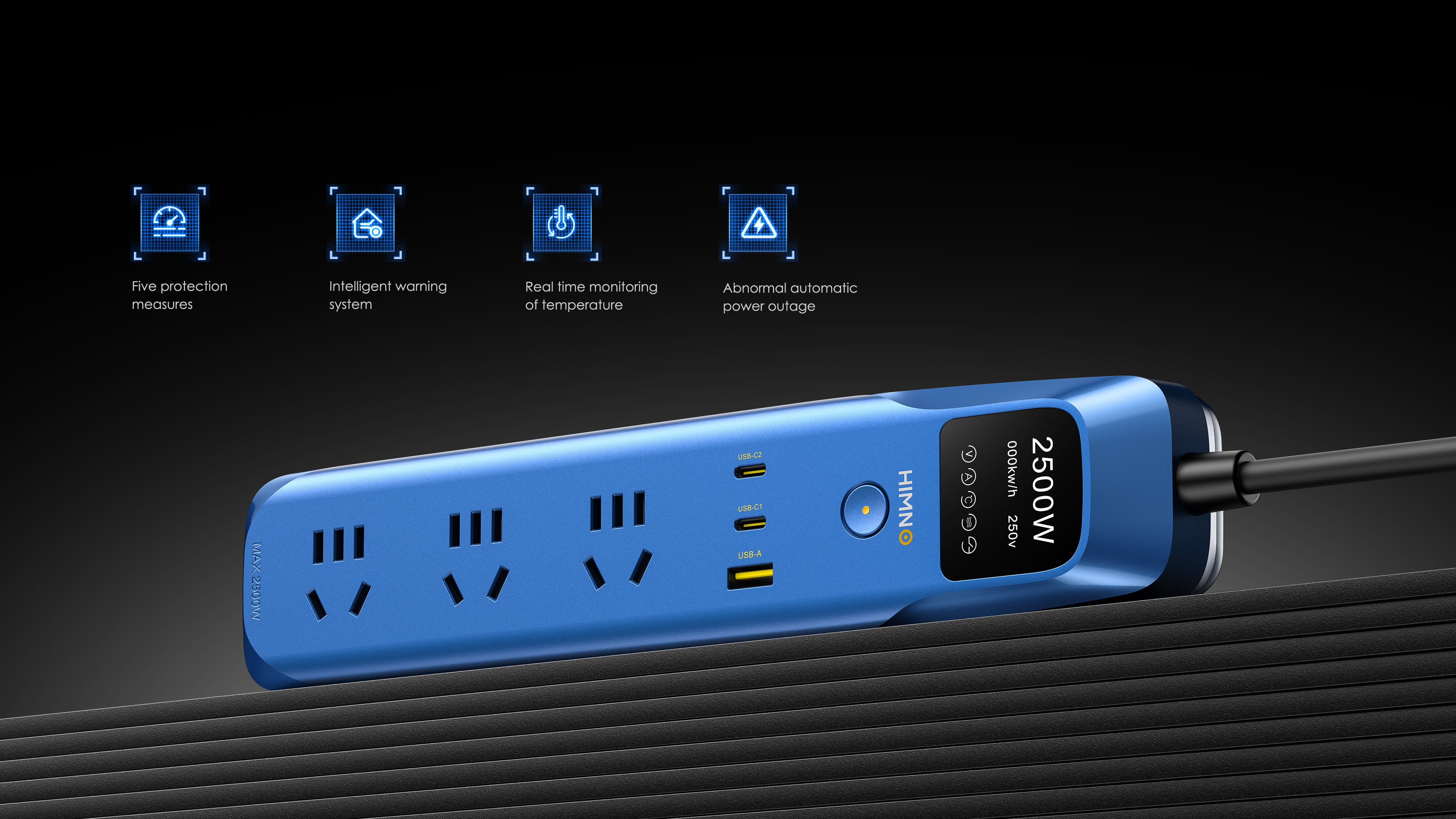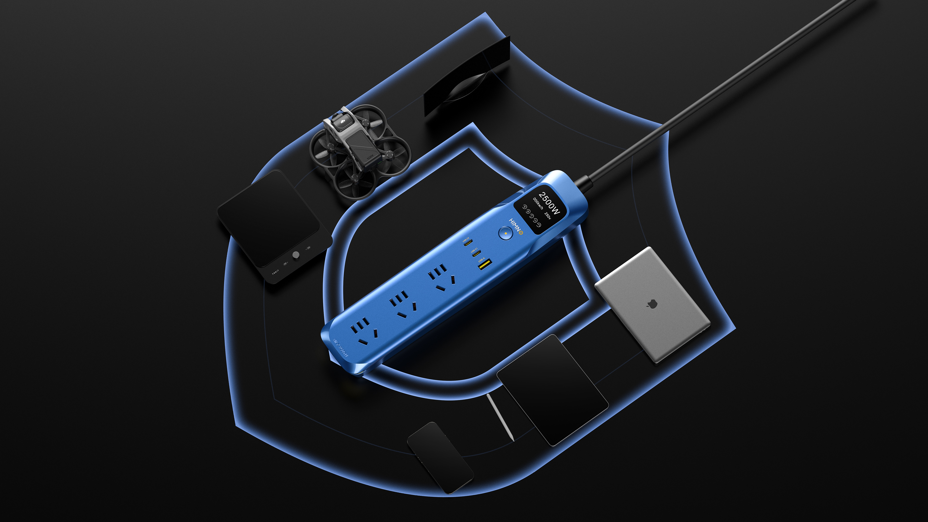 The GT Power Strip represents the fusion of automotive-inspired aesthetics and cutting-edge safety technology in a premium power product. Its intuitive single-switch control system simplifies operation across multiple modes, complemented by a thoughtfully organized layout of outlets and ports. At its core is a pioneering "5-in-1 Safety Protection" system (guarding against over-voltage, over-temperature, short-circuits, surges, and over-current) paired with a proactive intelligent alert system. This technology actively monitors conditions and instantly cuts power at the first sign of an issue, providing clear visual alerts. This ensures that your devices not only run safely and stably but also with optimal energy efficiency.