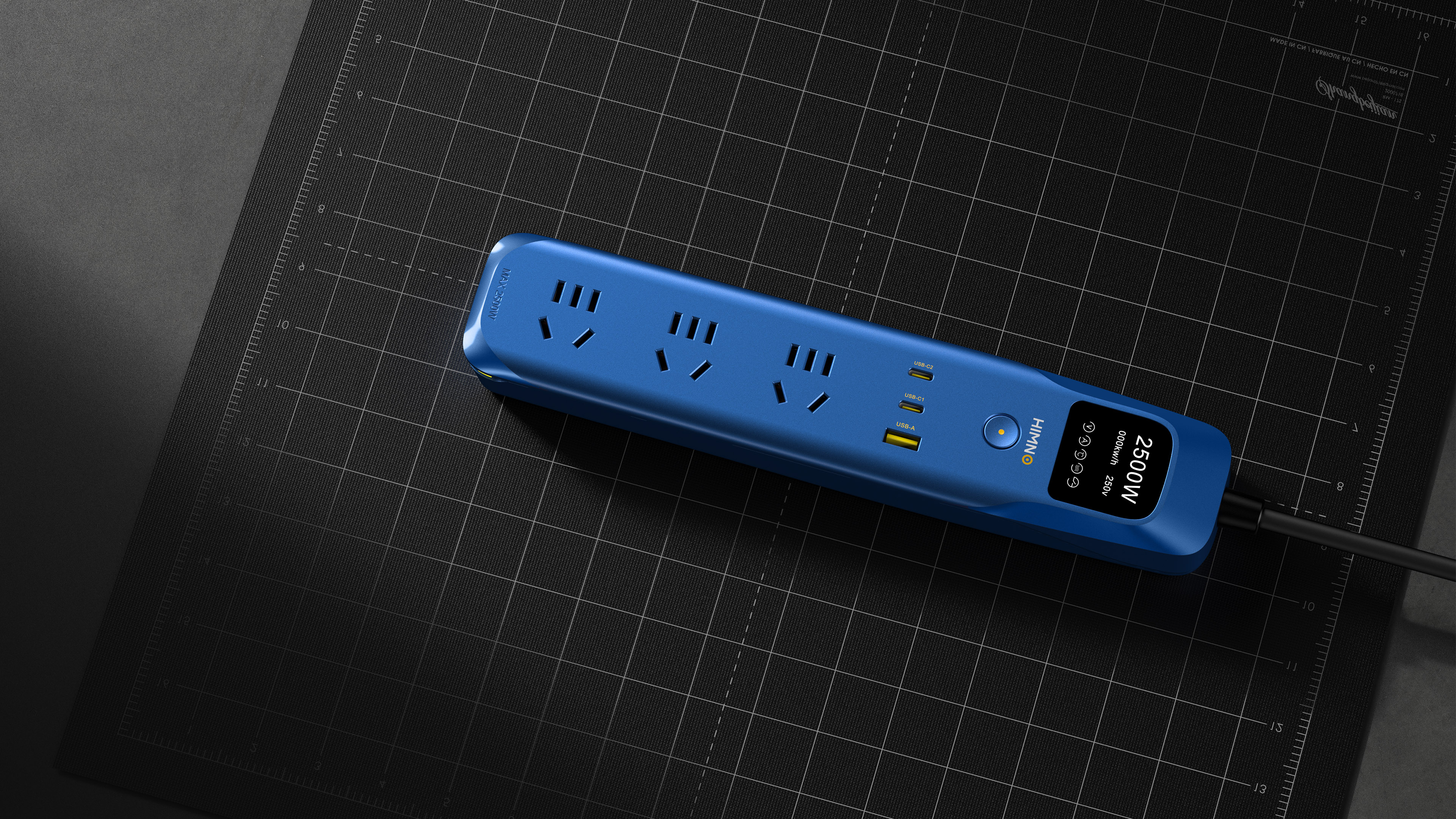 The design of the GT Power Strip is directly inspired by the world of luxury automobiles, capturing their sleek contours and distinctive taillight aesthetics. Its elongated, streamlined body is defined by sharp, fluid lines and seamless joints, creating a powerful sense of speed and motion. The ~12mm rounded corners are a key feature, enhancing user safety and tactile comfort while echoing our brand's circular motif to create a unique visual signature. Functionality meets modern aesthetics in its clean, organized layout. All sockets and charging ports are arranged logically and without unnecessary decoration, ensuring a minimalist and highly efficient user experience.