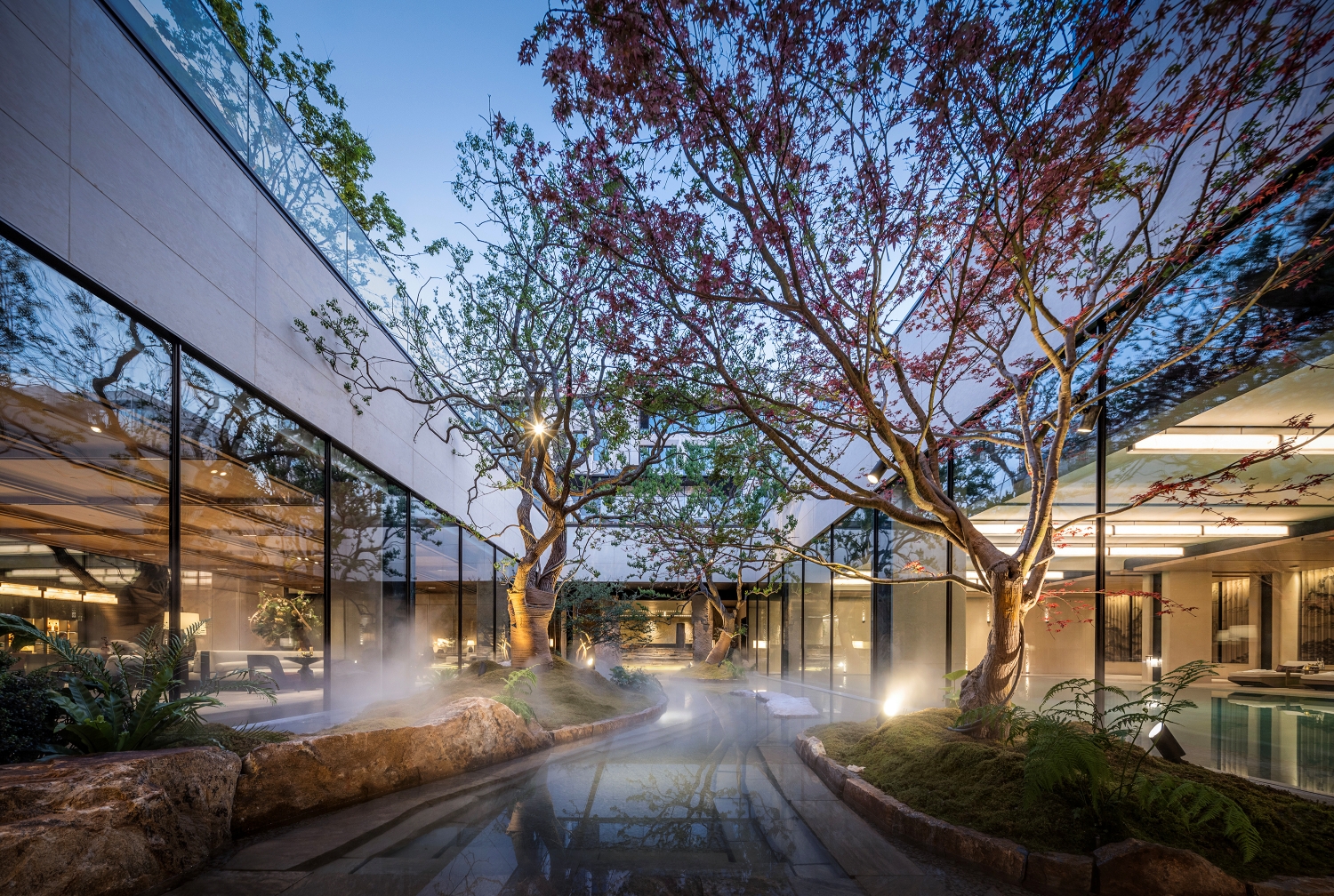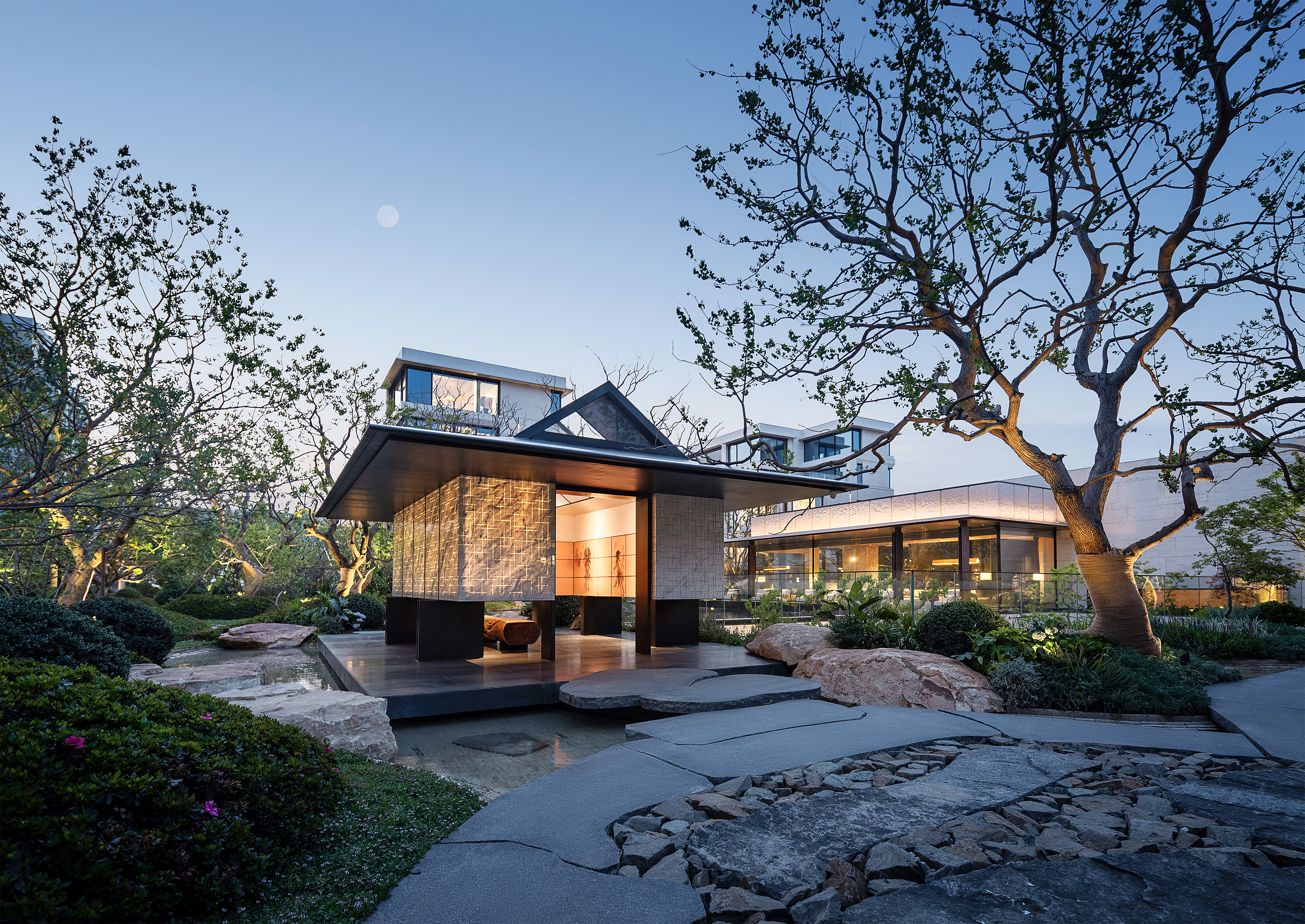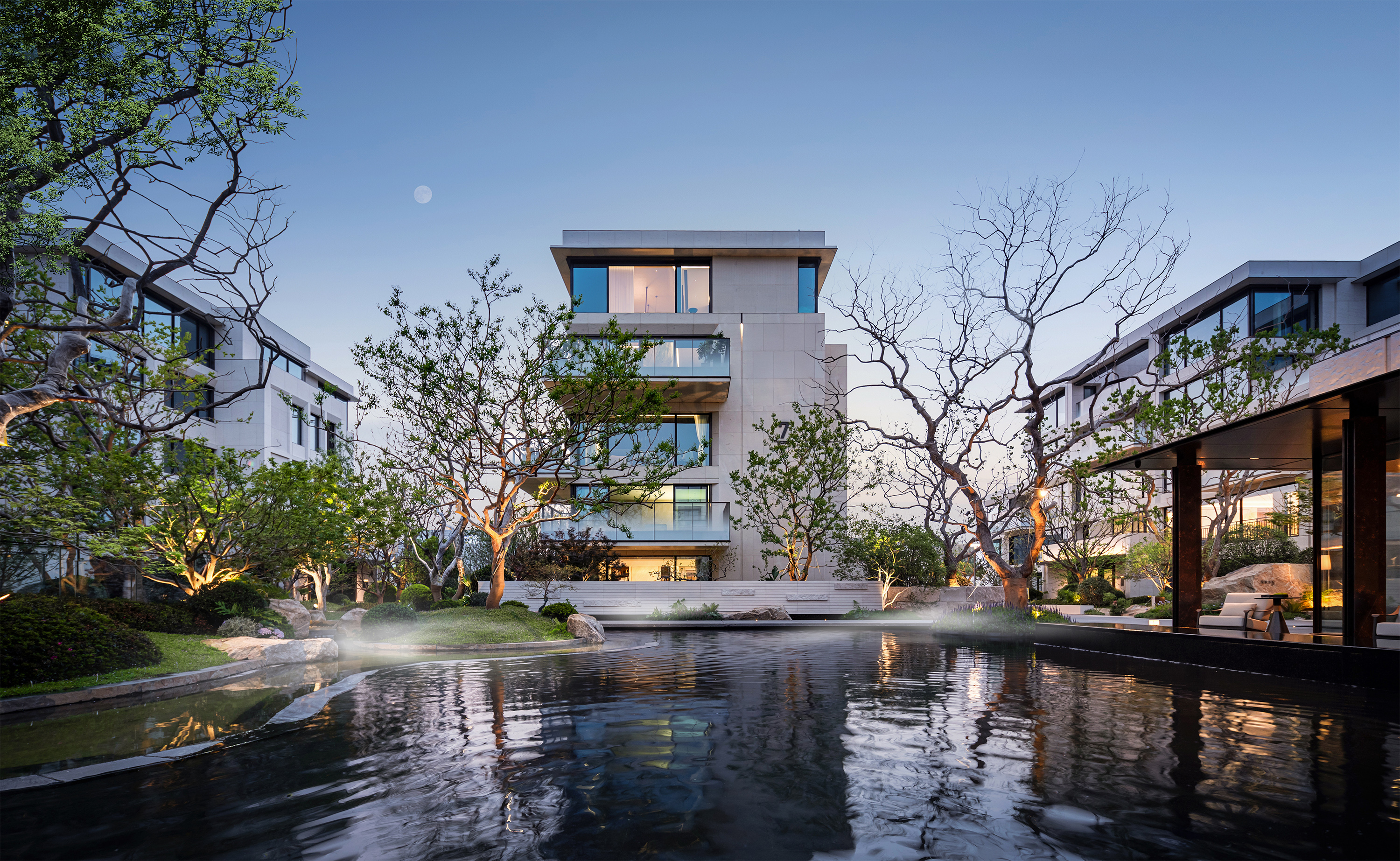 This project is a collaborative work by Zhongbei and Jinjian, and it is Jinjian's third 'Moon' series work. The project is located in Purple Mountain, Nanjing, and the project type belongs to 169-405㎡ low-density urban courtyard villas.