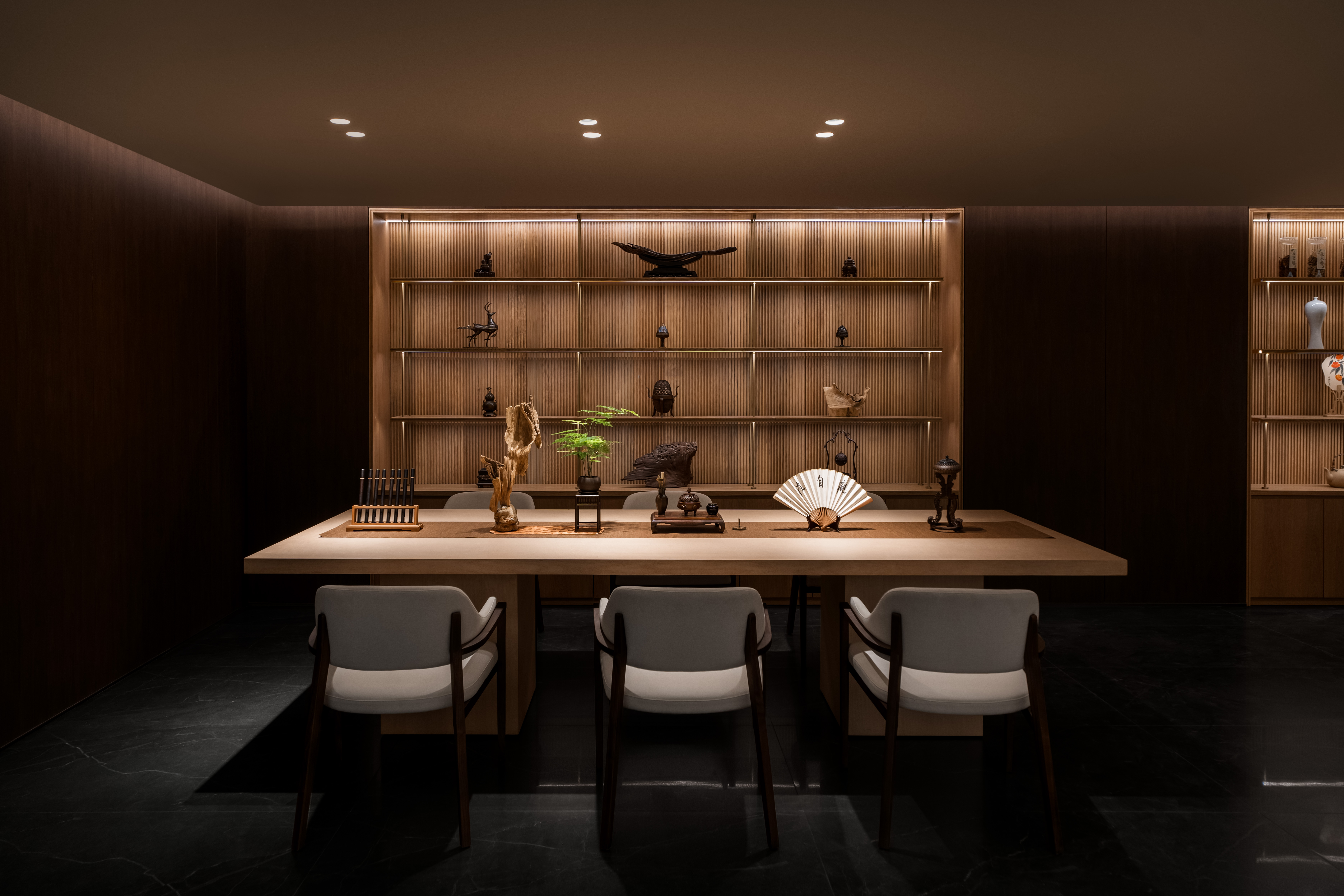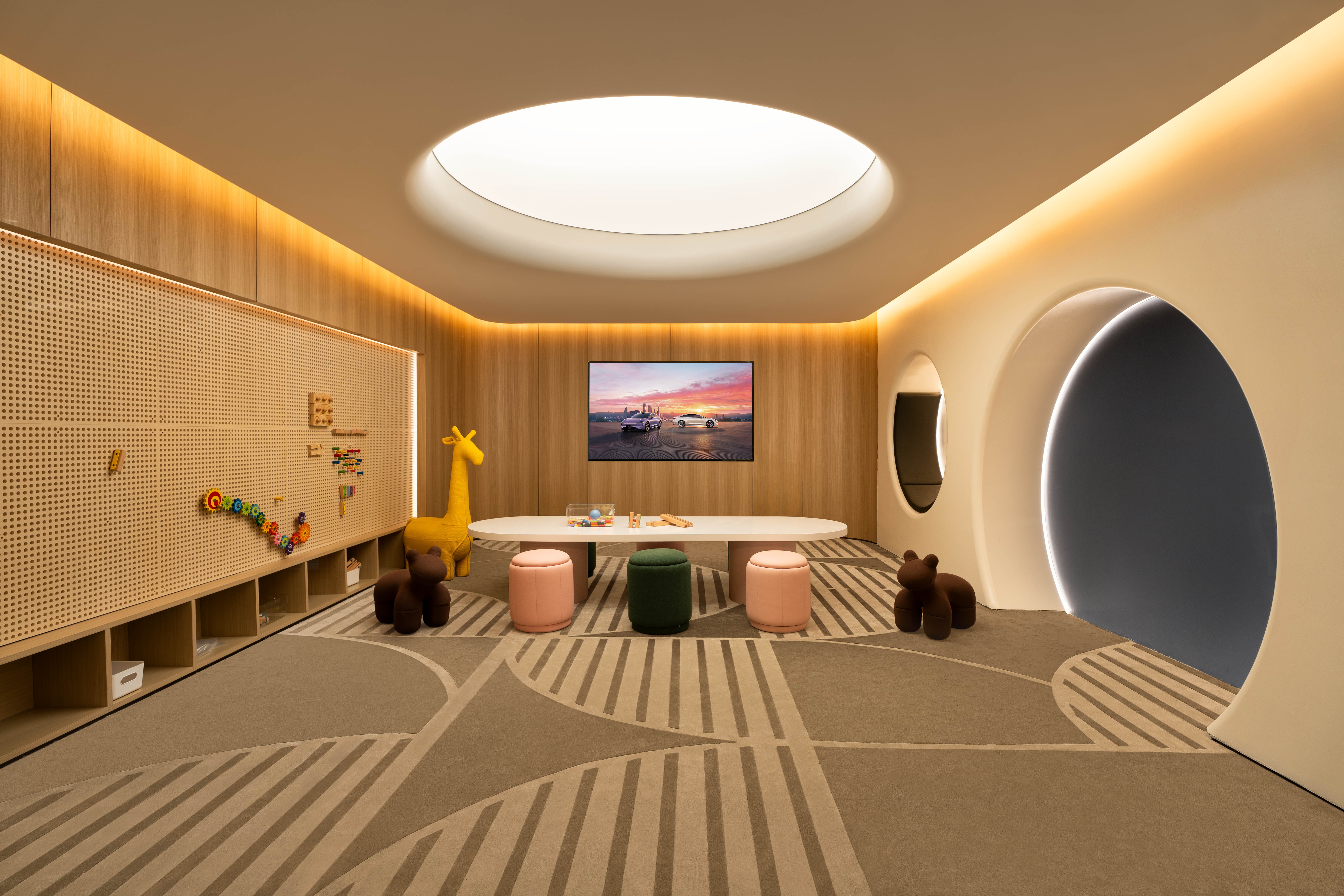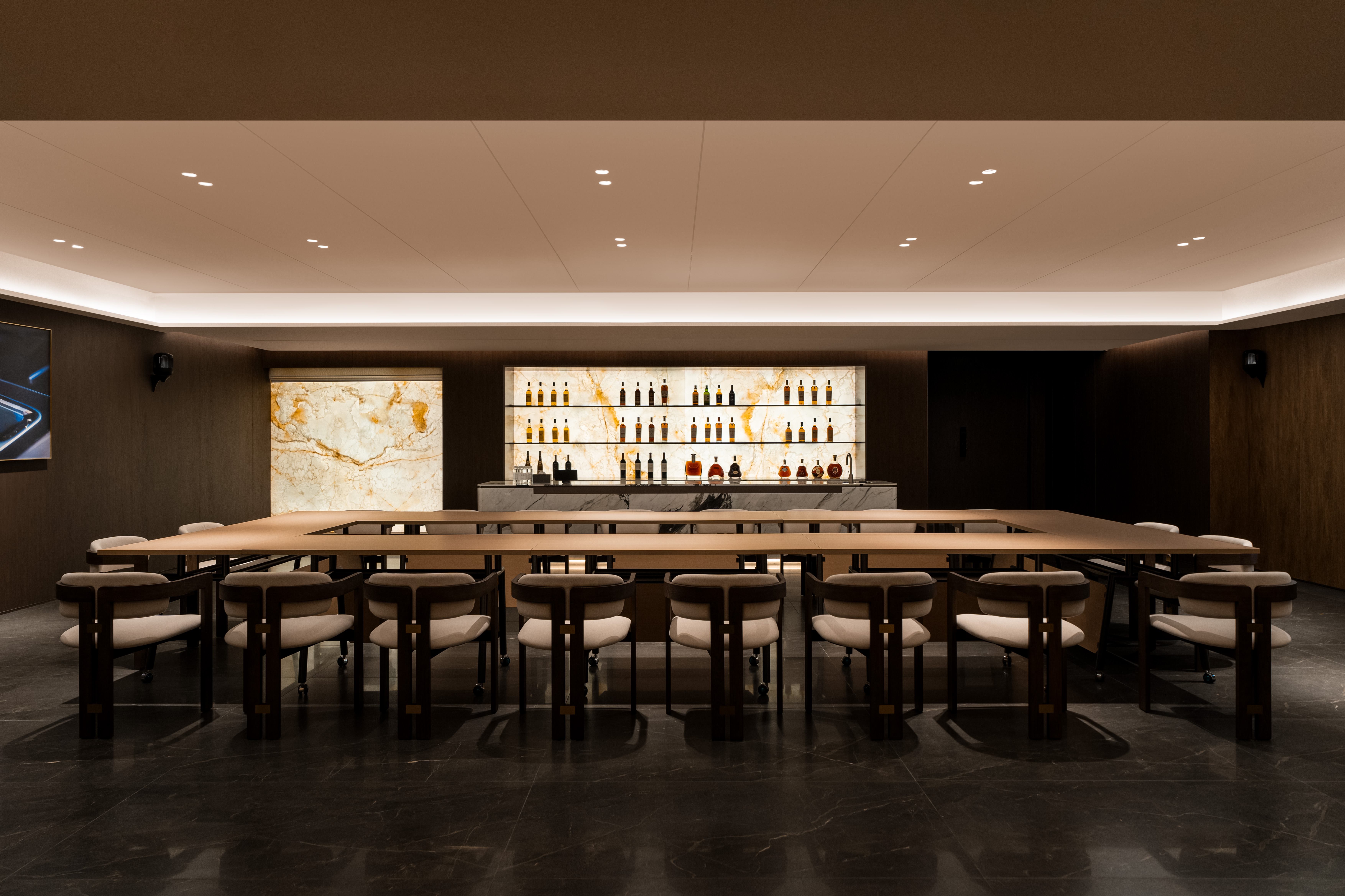 The Project takes “The Realm of Intelligent Mobility, Sensing the Future” as its core design concept, merging technological aesthetics with spatial artistry to create an immersive venue that integrates brand presentation, social experience, and futuristic mobility concepts. The building’s facade adopts a symmetrically organized two-section structure, with an ultra-thin floating canopy that conveys a sense of lightness and advanced technology. Delicate metallic lines break the monotony of traditional showrooms while providing both rain and sun protection. The column design draws inspiration from the Doric order of the Parthenon, reinterpreted through modern minimalism to express ceremonial grandeur and the beauty of structural power in a clean and pure form. At the heart of the exhibition hall lies the central vehicle display zone, where an enclosing sofa layout enhances both focus and intimacy, naturally directing attention toward the showcased vehicle. The lounge area combines materials such as solid wood, natural stone, and satin-finish paint to create a warm yet refined atmosphere. The coffee bar and counter design balance functionality and aesthetics, embodying the brand’s philosophy of harmony between technology and humanity. A mezzanine-level multifunctional salon space, equipped with high-quality audiovisual systems and flexible layouts, accommodates diverse event needs. Through the balanced interplay of proportion, material, and light, the overall design presents a futuristic environment that harmonizes rational order with emotional experience—reflecting the technological elegance and human warmth of the Harmony Intelligent Mobility brand.