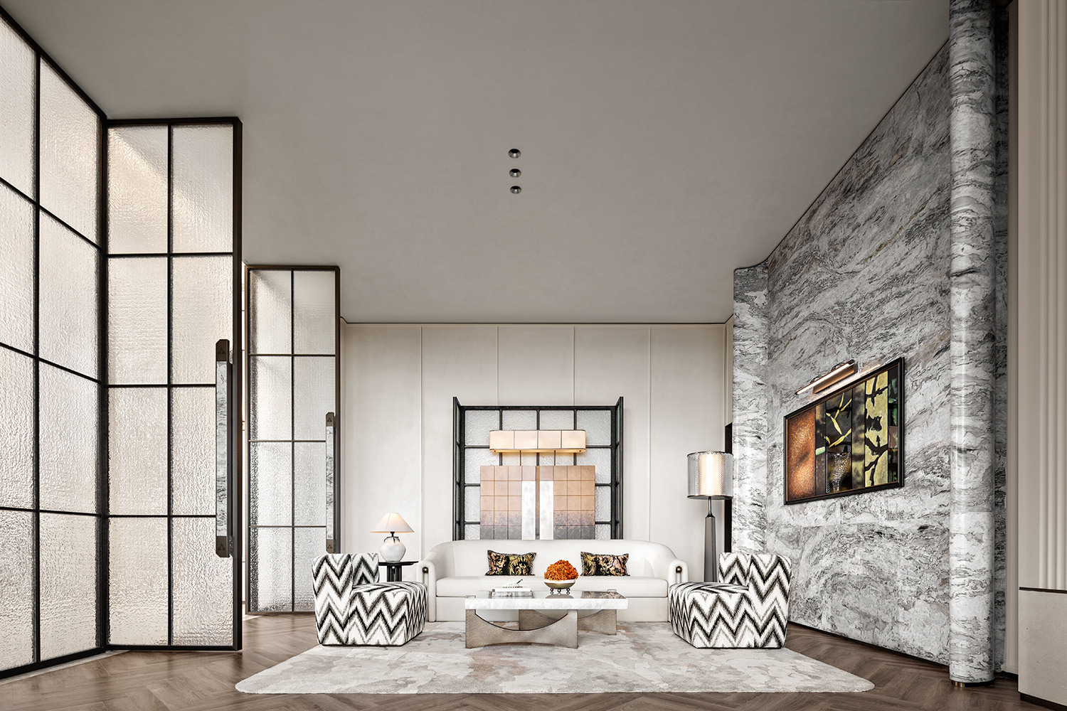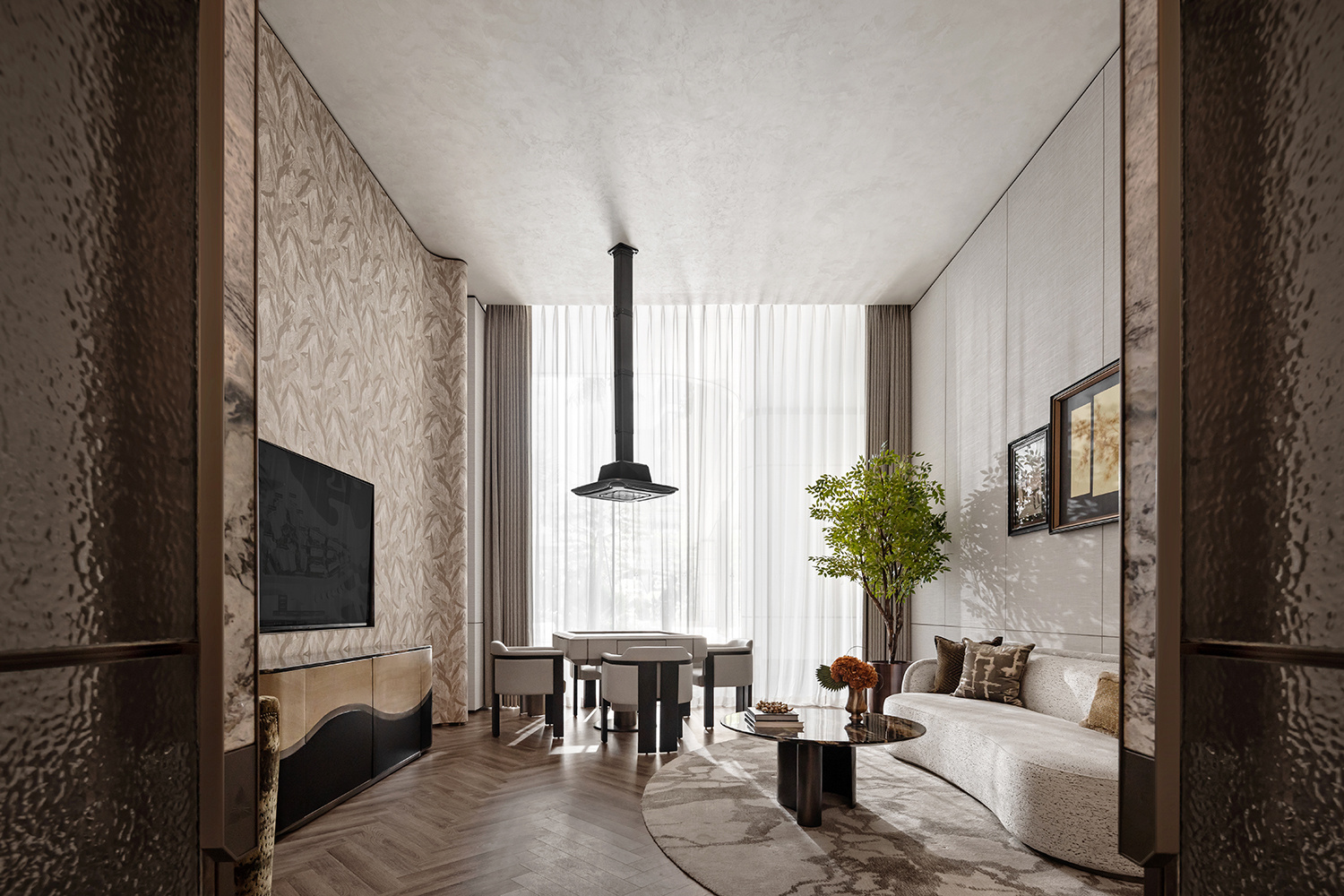 This project, with its visionary perspective that transcends time, envisions a luxurious landmark that integrates urban sophistication, modern international, artistic pursuits, and classic heritage. It is not only the physical facade of the city but also a resonance field for the spiritual core of the elite class and international taste By deeply integrating the Shangri-La Hotel in Shenzhen's concept of discreet service and super-luxury quality standards, it integrates the exclusive privileges of a topluxury hotel into daily life. From the exclusive artworks embedded in the space, the imported fabrics selected from around the world, to every single object custom-made for the, all demonstrate unparalleled quality in the details, offering customers the highest tribute to life. To achieve this, we introduce art into the space, using "the order of nature" as invisible narrator, constructing an everlasting flowing theater. The green that breathes, allowing the growth and withering of plants to resonate with the space. They are not only but also a medium to perceive the passage of time, infusing the home with a vibrant vitality. Under the interplay of light, shadow, and art, every ordinary moment isbued with poetry. The space becomes the negative film that carries the family's stories and beautiful memories, allowing emotions to be developed, fixed, and inherited here.