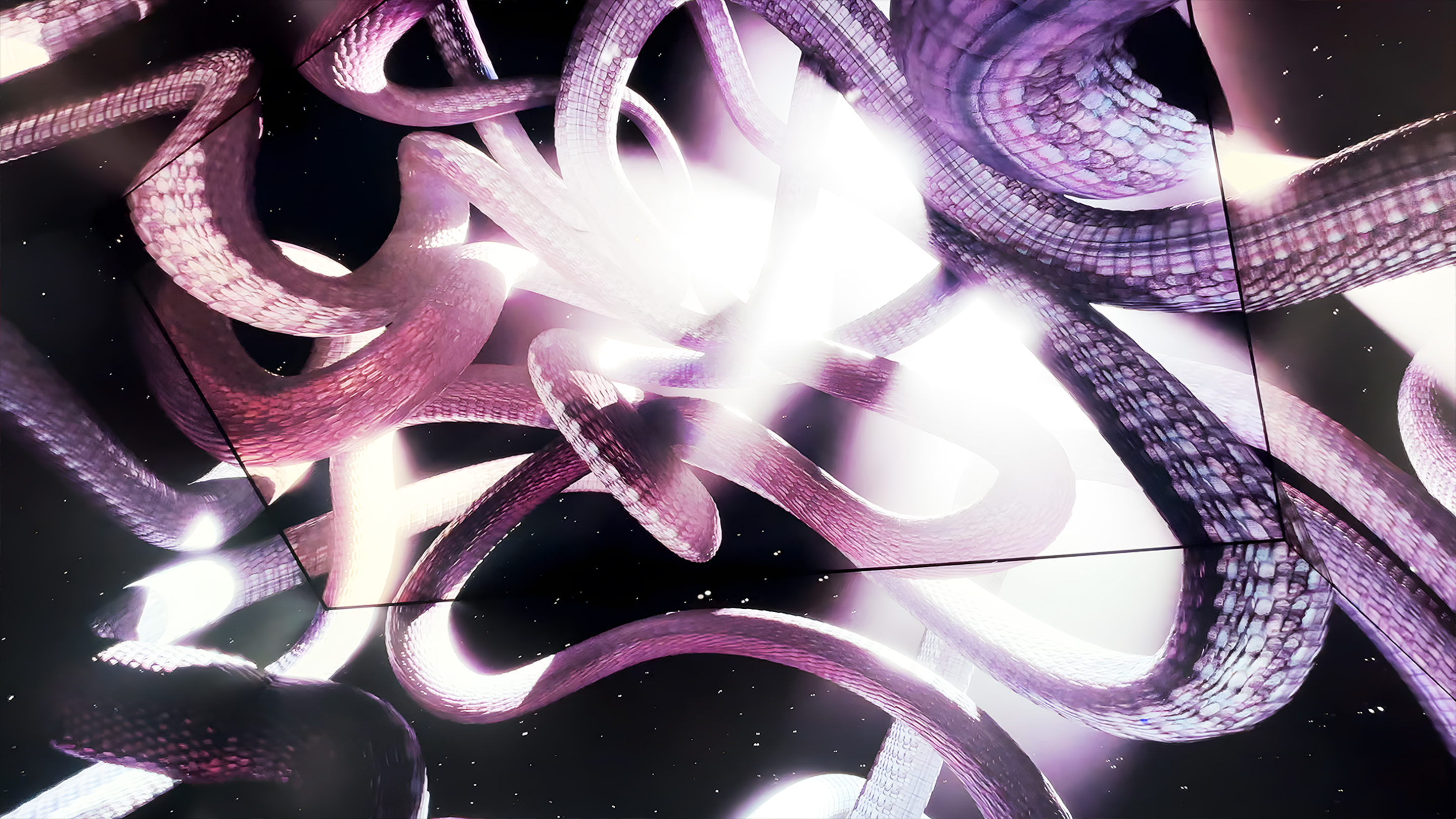 OUROBOROS is a multi-screen 3D animation. The project draws inspiration from Ouroboros, a symbol meaning "self-devourer." Depicted as a snake eating its own tail to form a circle, it represents an "endless cycle" of birth, death, and regeneration. Ecologically, it embodies a self-sustaining, sustainable system. As one of humanity’s oldest symbols, Ouroboros appears across various ancient civilizations, reflecting its cross-cultural universality.