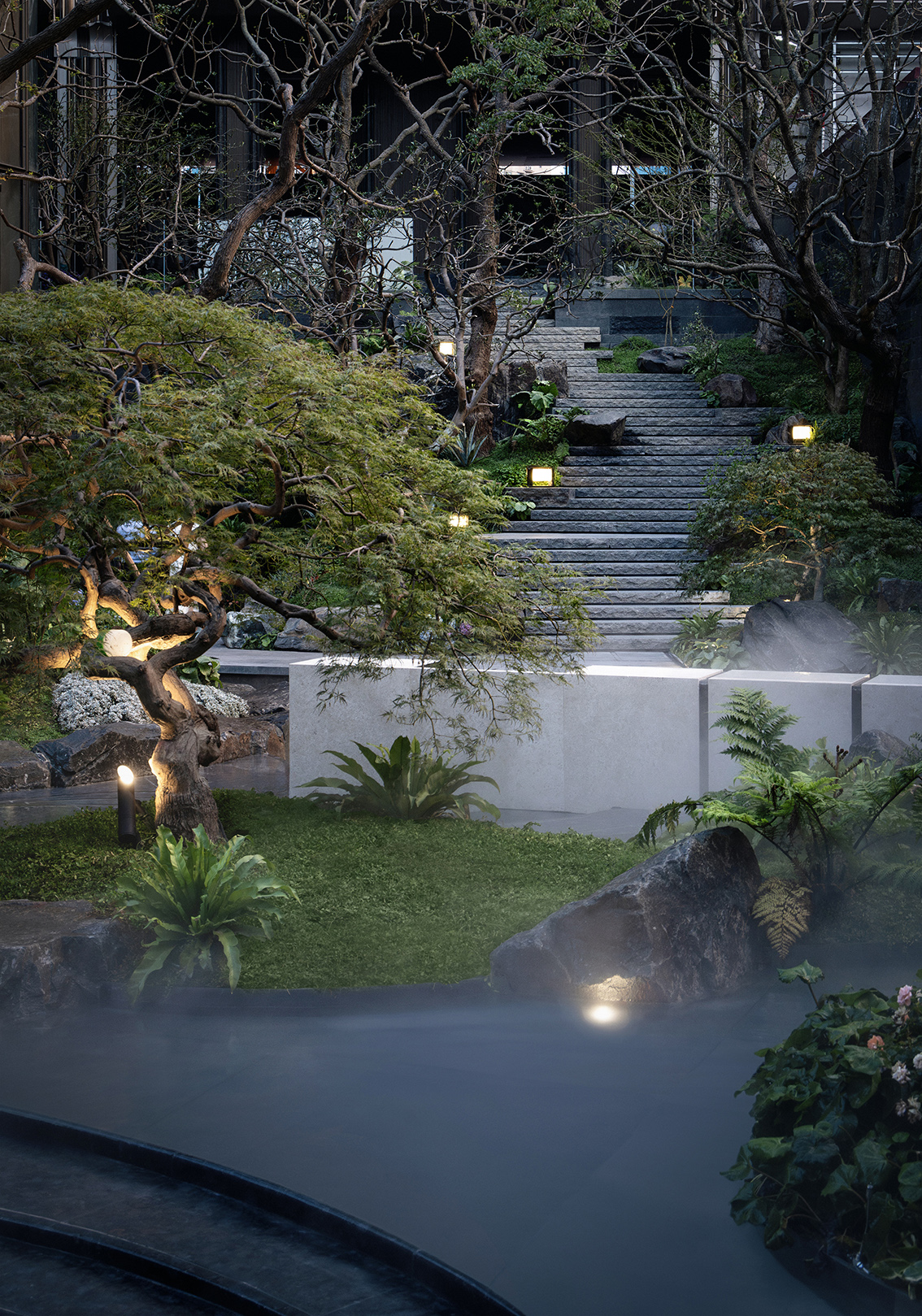 Puyuan stands as a profound urban sanctuary in the heart of Shanghai, a landscape masterpiece that transcends conventional residential greenery to become a living testament to International Oriental artistry. The project's core design challenge lay in reconciling a non-parallel building arrangement and the resulting fragmented, constrained interstitial spaces. Rather than viewing these as limitations, the design transformed them into an opportunity. The solution was to employ a fluid, organic design language that deliberately blurs the rigid contours dictated by architecture, particularly within the sunken courtyard. Instead of a stark, geometric space, a free-flowing and naturally expressive canyon garden was conceived. This central landscape feature unfolds as a three-dimensional landscape painting, where carefully curated rockeries, cascading water features, and the strategic placement of rare trees create a dynamic tableau of layered textures and serene acoustics. The greenery appears to grow and extend naturally, seamlessly spilling beyond its origins to soften architectural edges and connect disparate zones. This "boundary-less" philosophy is further amplified by the north-south building orientation. Green spaces flow seamlessly into elegantly designed elevated pavilions, transforming these transitional zones into a series of interconnected "jewel boxes" that organically string together the landscape. The result is a continuous, expansive visual experience where nature is never interrupted. At Puyuan, the homecoming journey is a poetic passage from the city's vibrant pulse into a tranquil, natural immersion, offering residents a daily retreat into a secluded heartland, cradled in poetry.