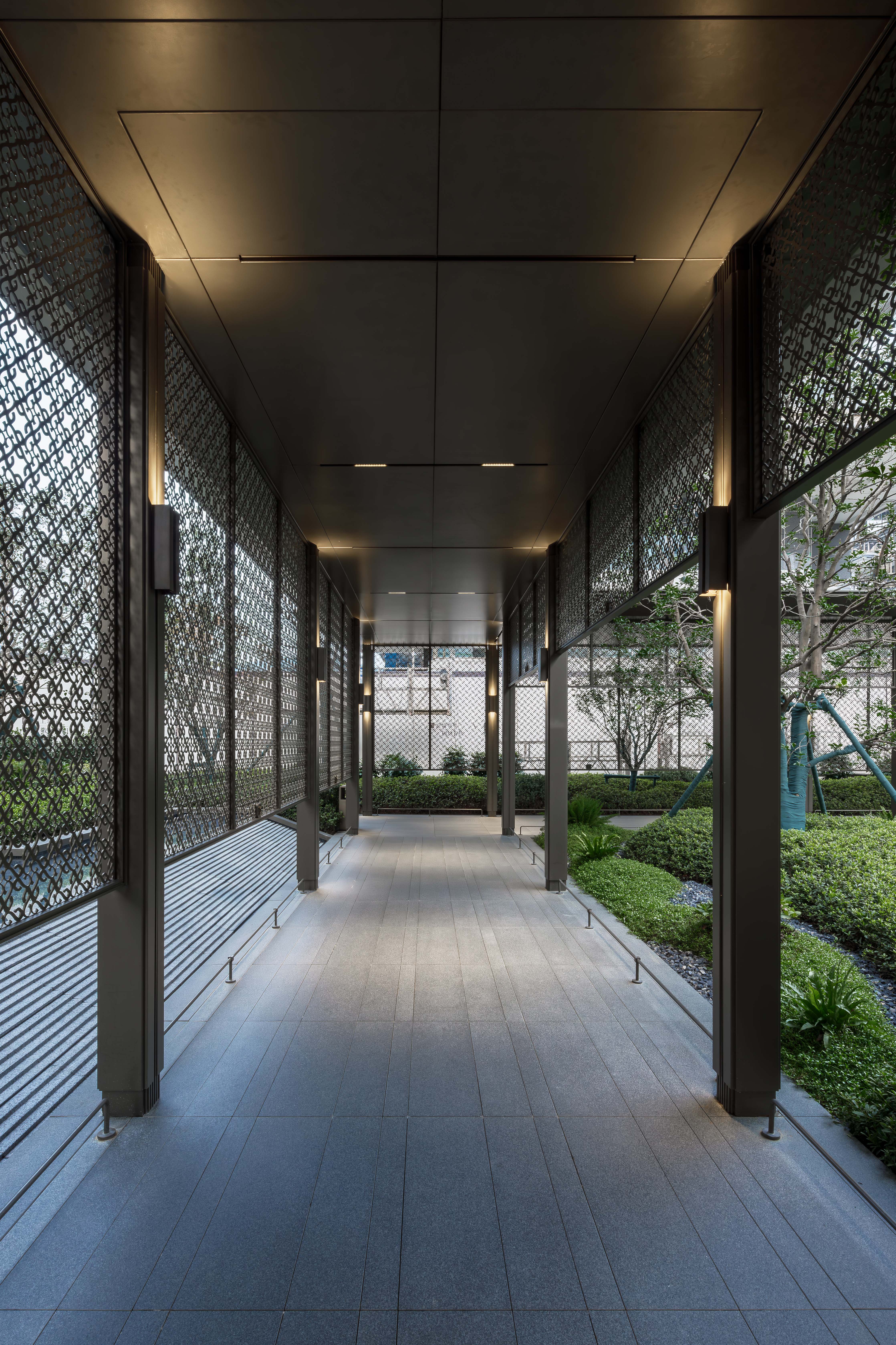 Guided by a people-centered approach, the façade follows the principle of “classic as structure, modern as spirit.” The 50-meter-wide main entrance adopts a three-courtyard layout to create a hotel-grade arrival experience, while the elevated corridor system ensures a “rain-free journey home,” balancing aesthetics with practicality and integrating understated elegance into everyday living.