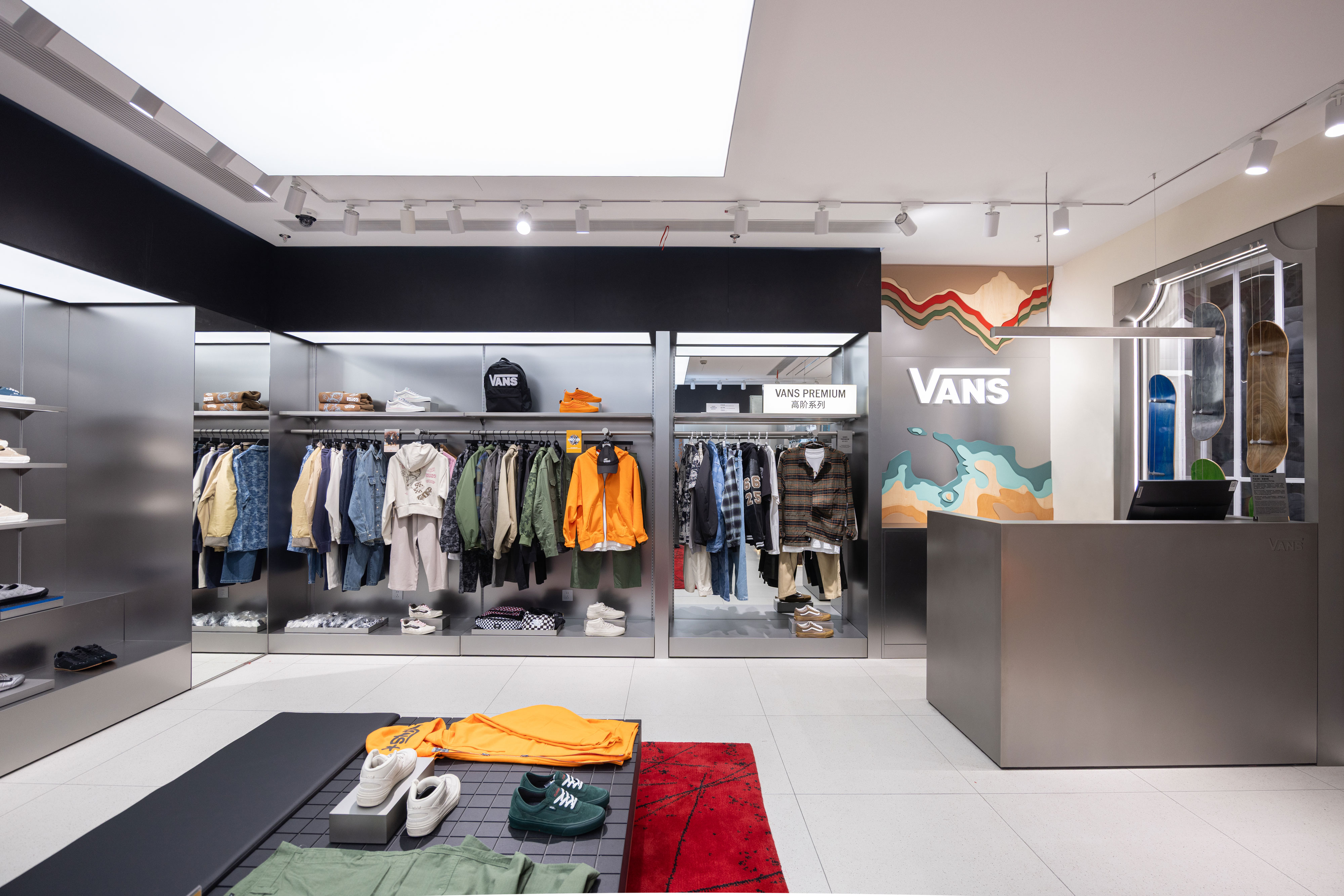 Vans Hangzhou in77 store integrates the city’s local landscape art and cultural motifs into a street-inspired retail environment.