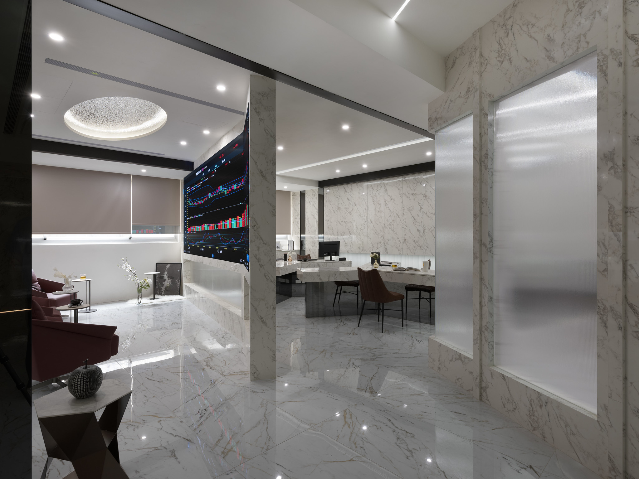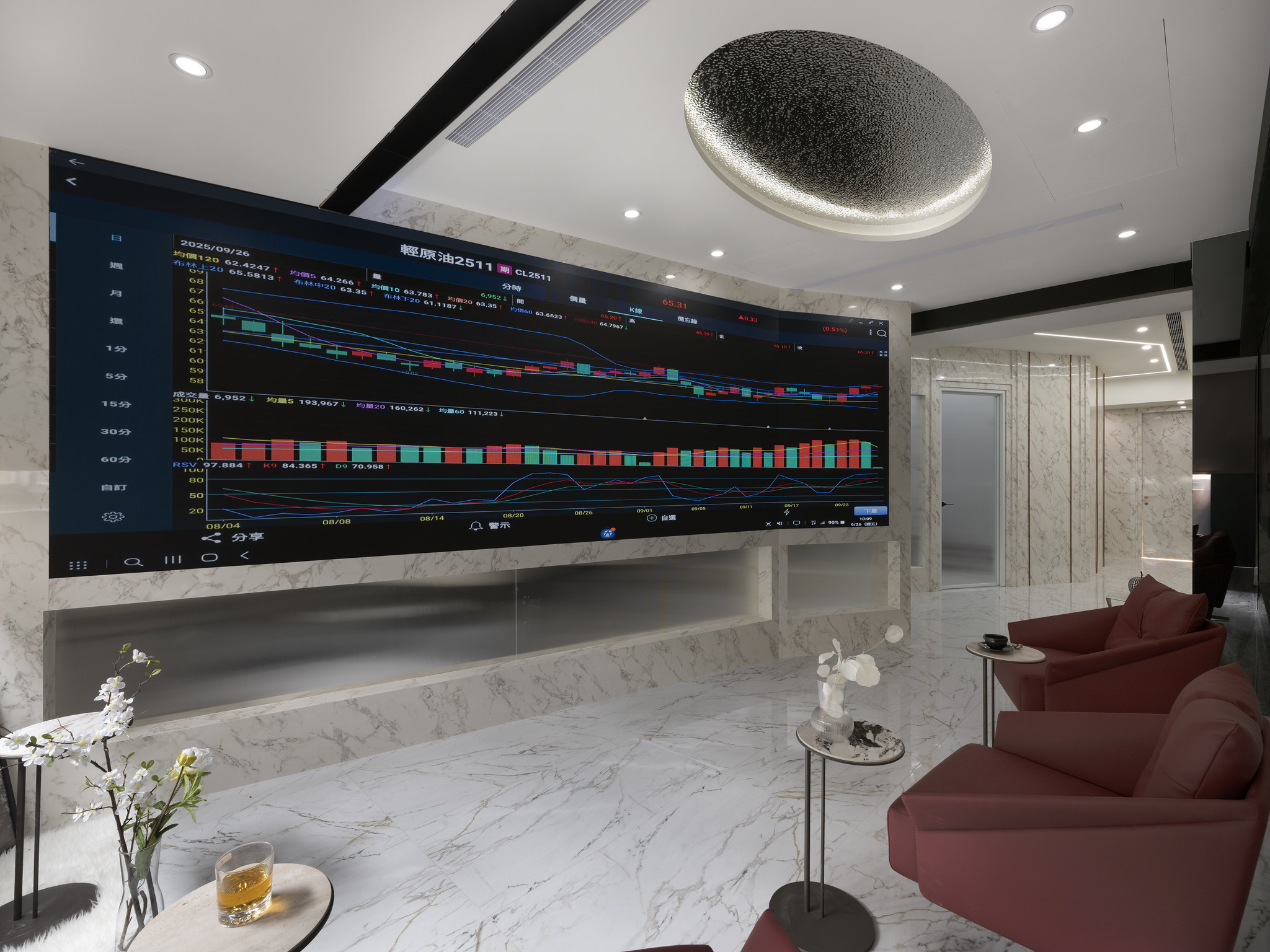 The designers also meticulously crafted the lighting and intelligent control system, and utilized large LED walls to showcase high technology and a professional feel. The use of easy-to-clean surface materials further enhances the client's quality of life, creating a healthy, comfortable, and vibrant workspace for users. This also contributes to achieving the company's sustainable development goals and values.