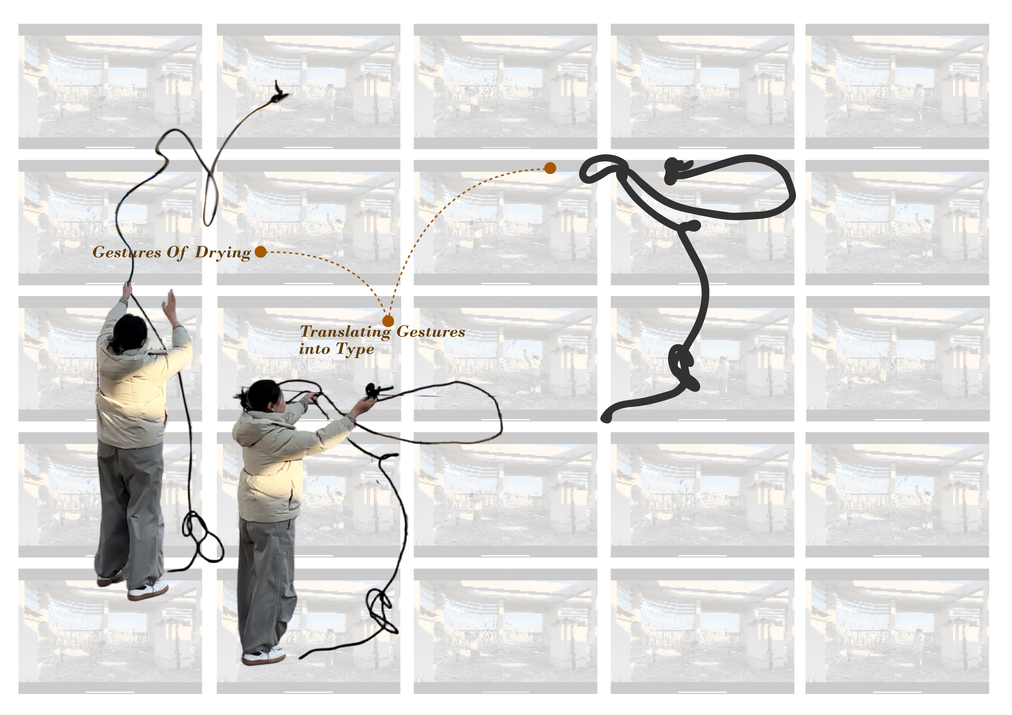 As I kept watching, my focus gradually shifted from the laundry to the hands—the throws, pulls and knots that shaped the rope in the air, Each gesture began to look like a line drawn in space, and this became the starting point for my typographic experiments.