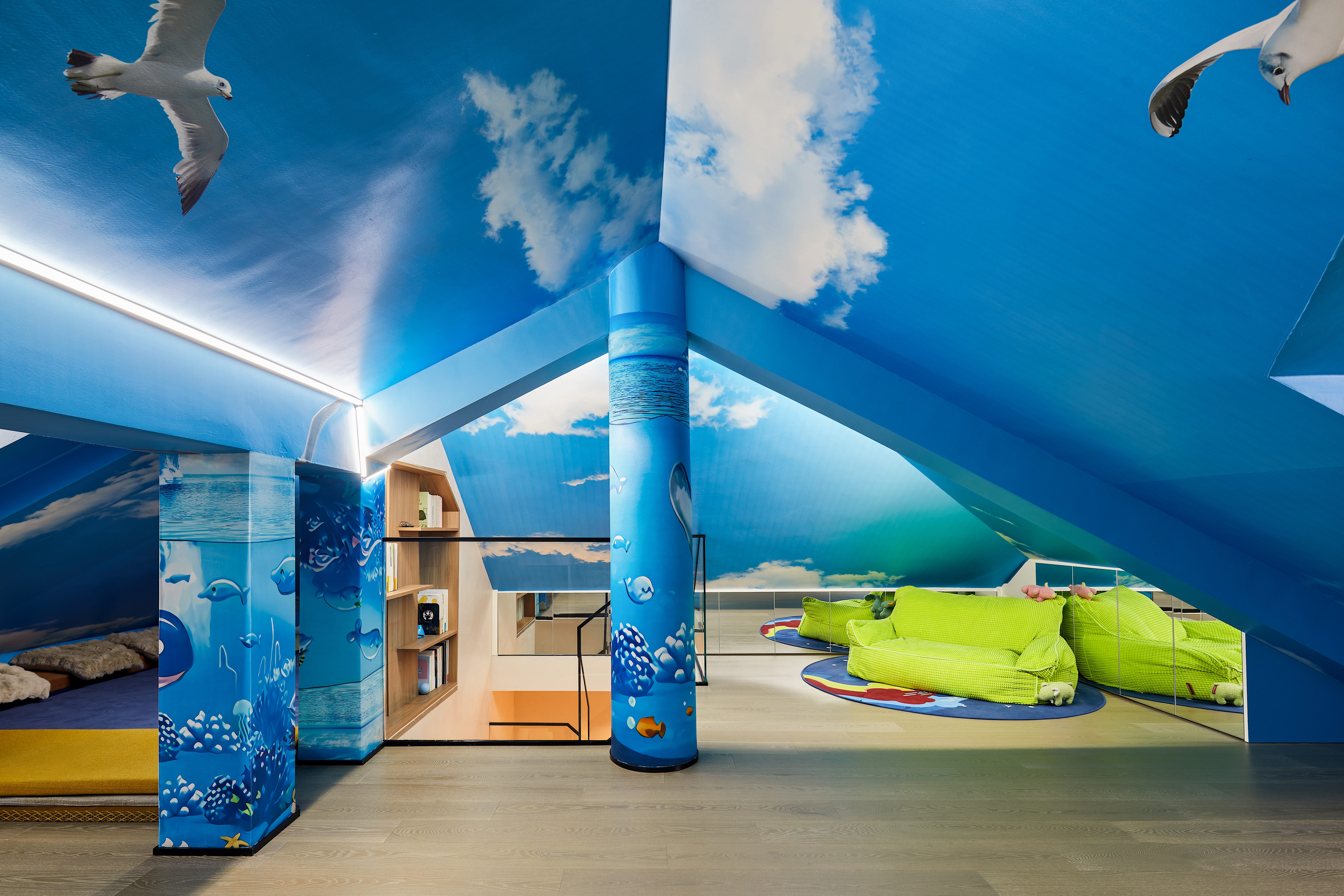 This renovation is a journey of “giving light.” Sunbeams stream through thoughtfully placed apertures, tracing sundial-like shadows beside the piano; reading nooks are wrapped in soft glow, becoming tender backdrops for shared stories. Fluid circulation connects living, resting, and gathering areas, while garden foliage spills gently indoors—framing children’s laughter and family meals like a living stage set. A father’s quiet reflection, a mother’s smile, a child’s peaceful slumber—all find their place in corners kissed by daylight.