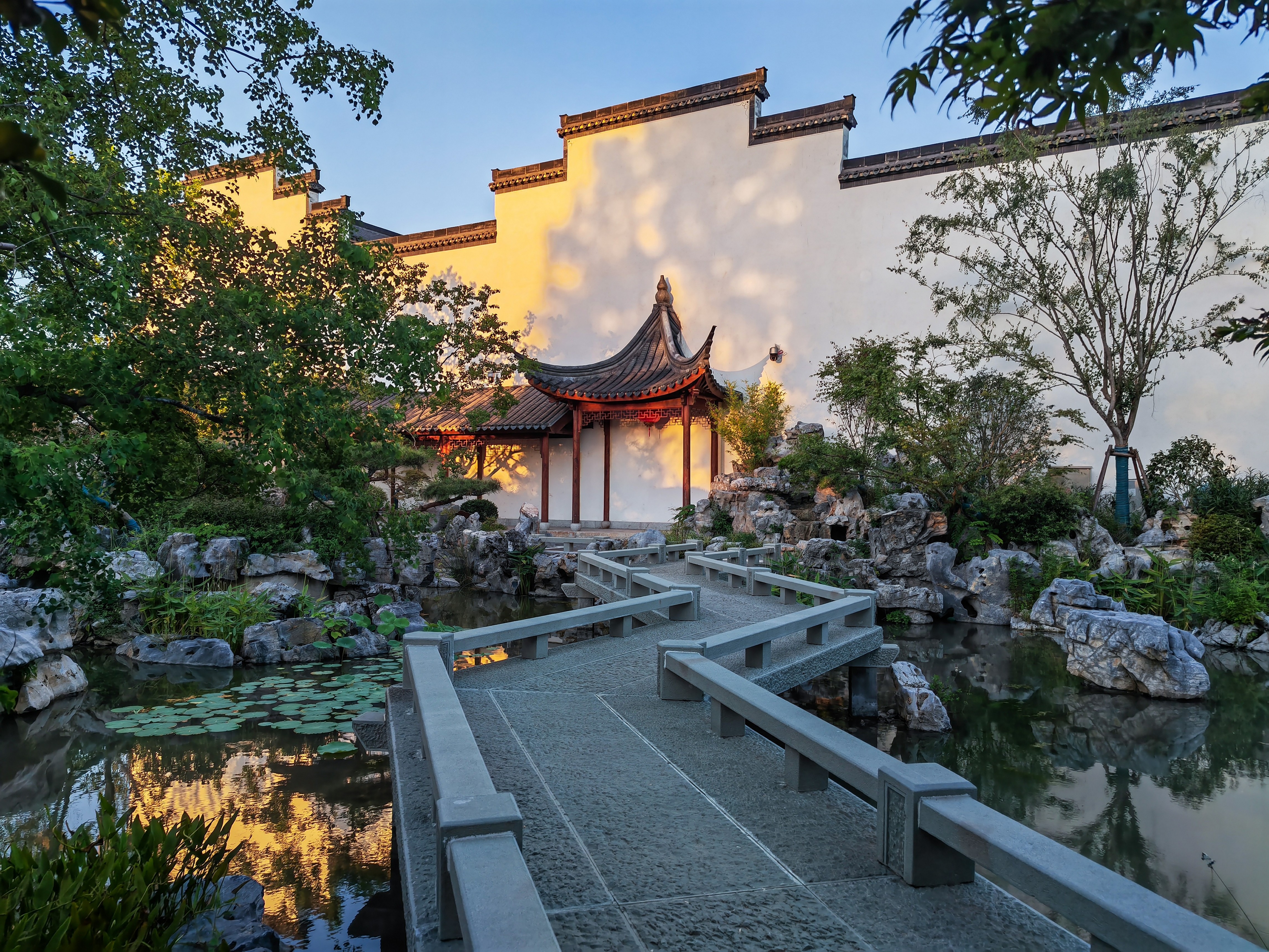 The Project - Jiangnan Hui is in the northern part of the West Bank Natural Art Park, with a view of the lake to the south. Spanning approximately 1.7 hectares, this classical garden features a landscape area of about 17,500 square meters, a building area of around 1,800 square meters, and a water area of roughly 860 square meters, connected to the South Lake.