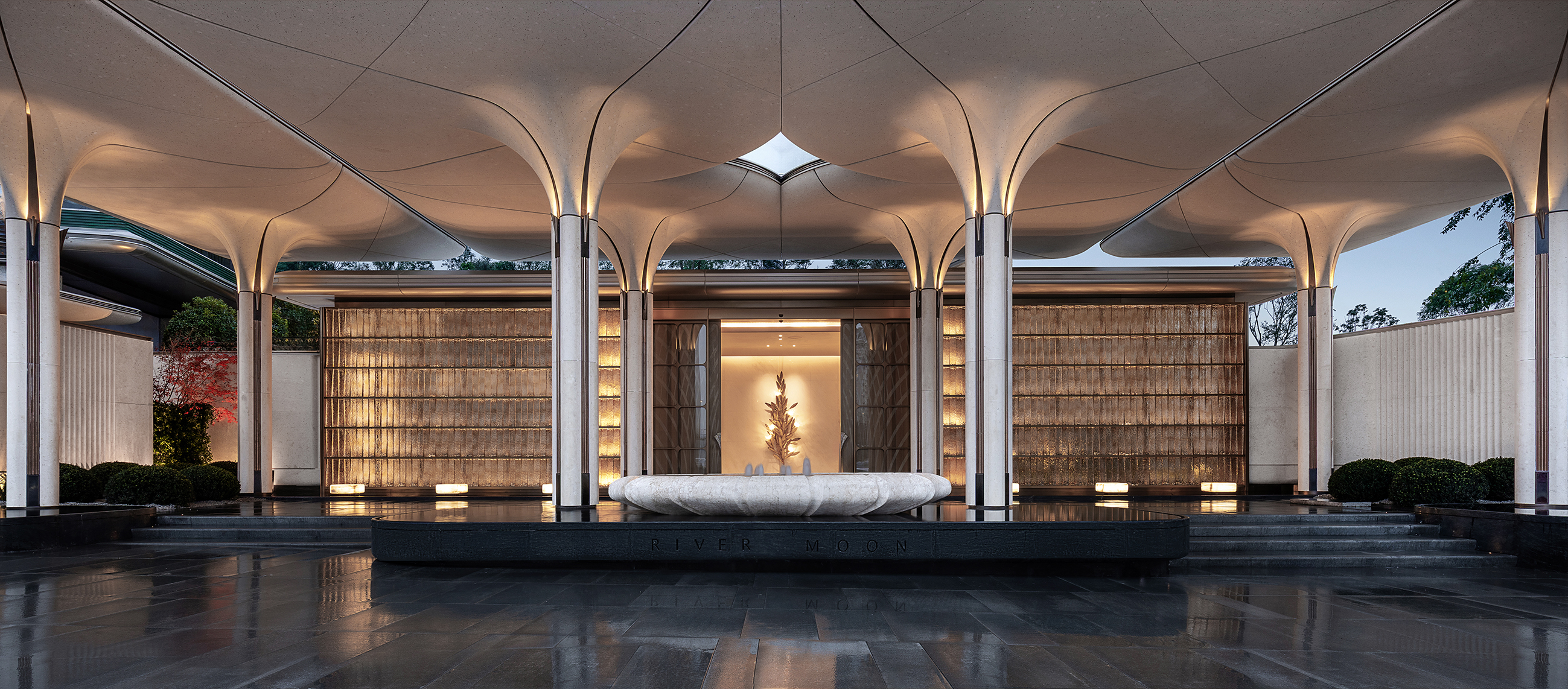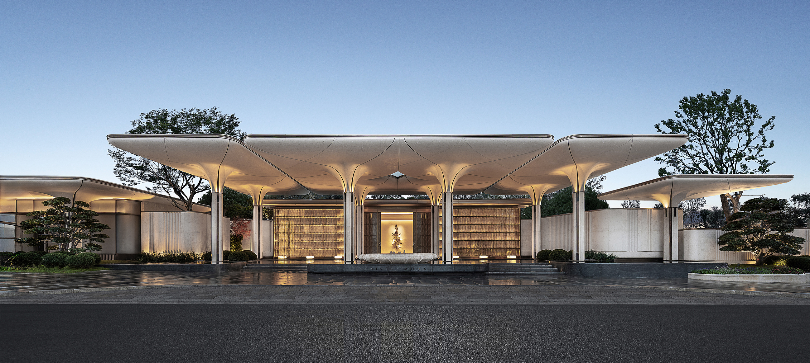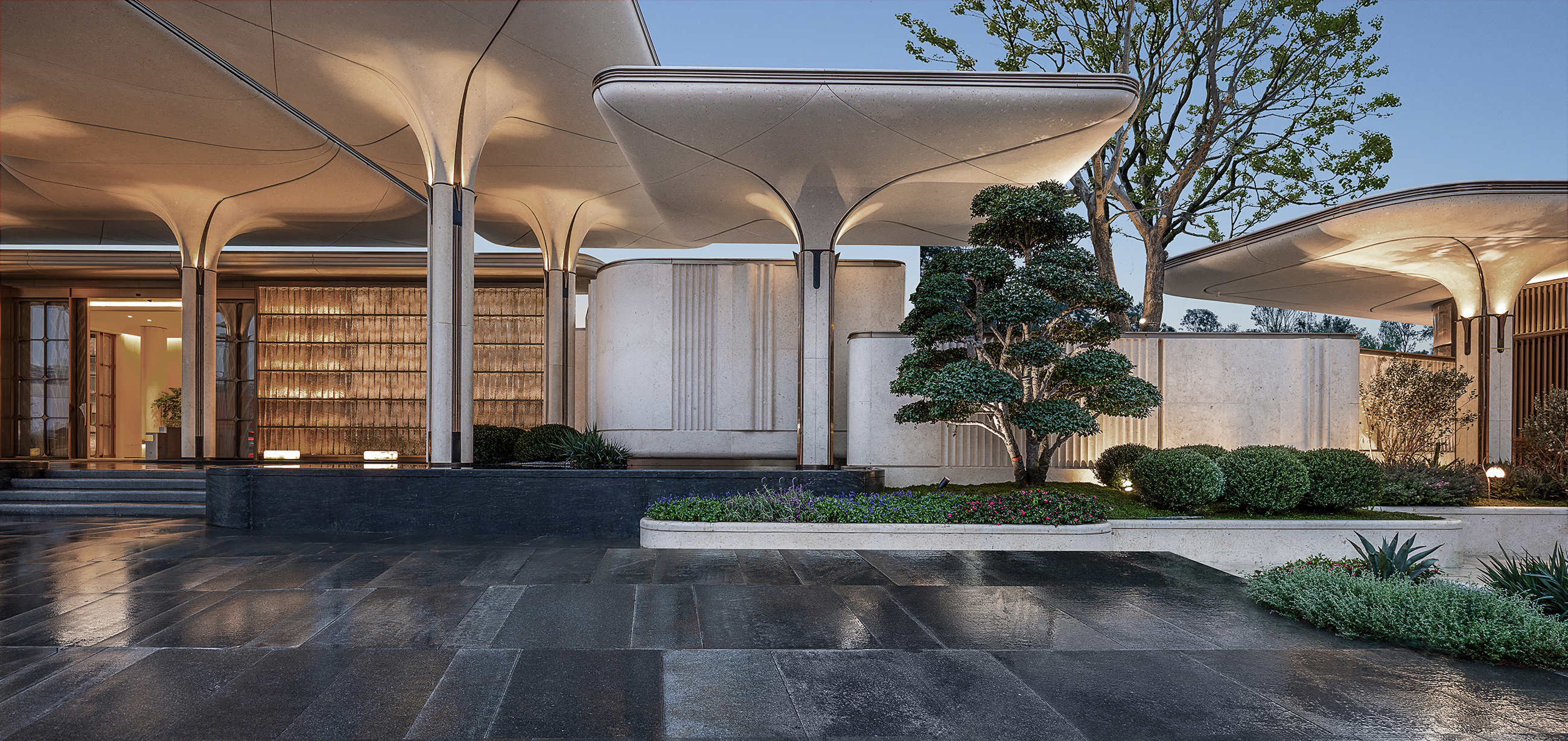 The material strategy prioritizes low-carbon, durable, and recyclable building materials such as UHPC, recycled ceramic panels, high-transparency ultra-white glass, and anodized aluminum panels. The "Jade Tree" structure adopts high-strength precast concrete components to achieve a lightweight sculptural form, reducing on-site wet work and improving construction precision and whole-life cycle value. The facade is dominated by beige tones, complemented by gray-green ceramic panels and Beige Golden Stone, mitigating the urban heat island effect while echoing regional aesthetics.