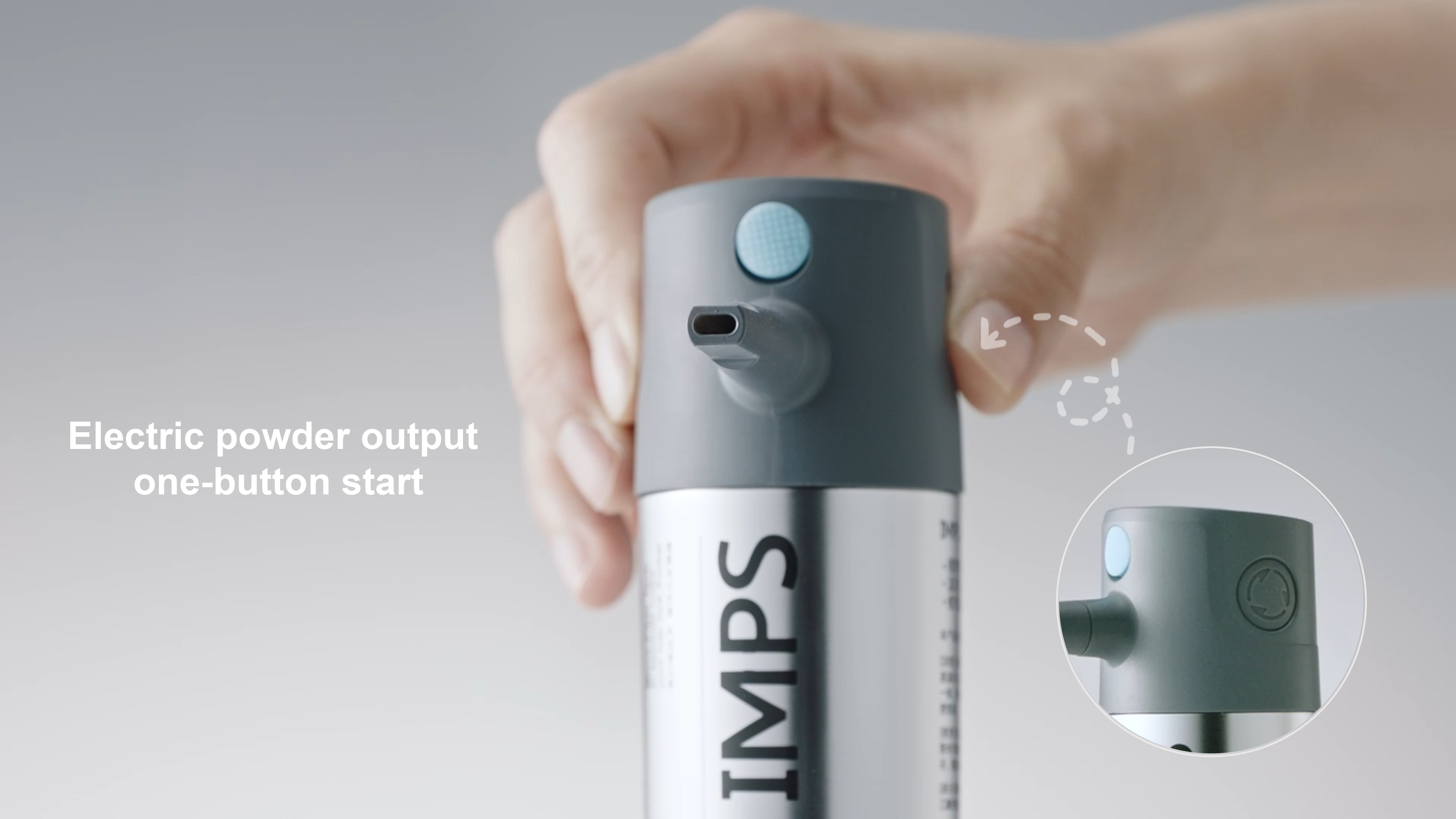 Thanks to the compact motor design replacing the traditional pump structure, the overall device size is significantly reduced, enabling a more ergonomic and comfortable form factor. The design fully considers the convenience of one-handed operation, with the width of the spray head carefully optimized to allow fingers to comfortably press the electric spraying button while securely holding the device. This also makes IMPS more convenient for daily carry and frequent use scenarios.