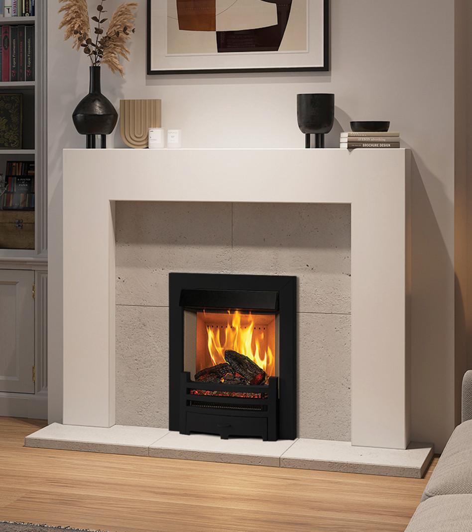 The Mirage 40i is also an excellent solution for replacing inefficient open fires. With no chimney required, the existing fireplace void can be sealed to prevent draughts and heat loss, helping to improve overall energy efficiency. When warmth is needed, a discreet, low-mounted heater delivers gentle convected heat. Unlike top-down heating systems found in many competitor products, this approach is both more effective and visually unobtrusive.