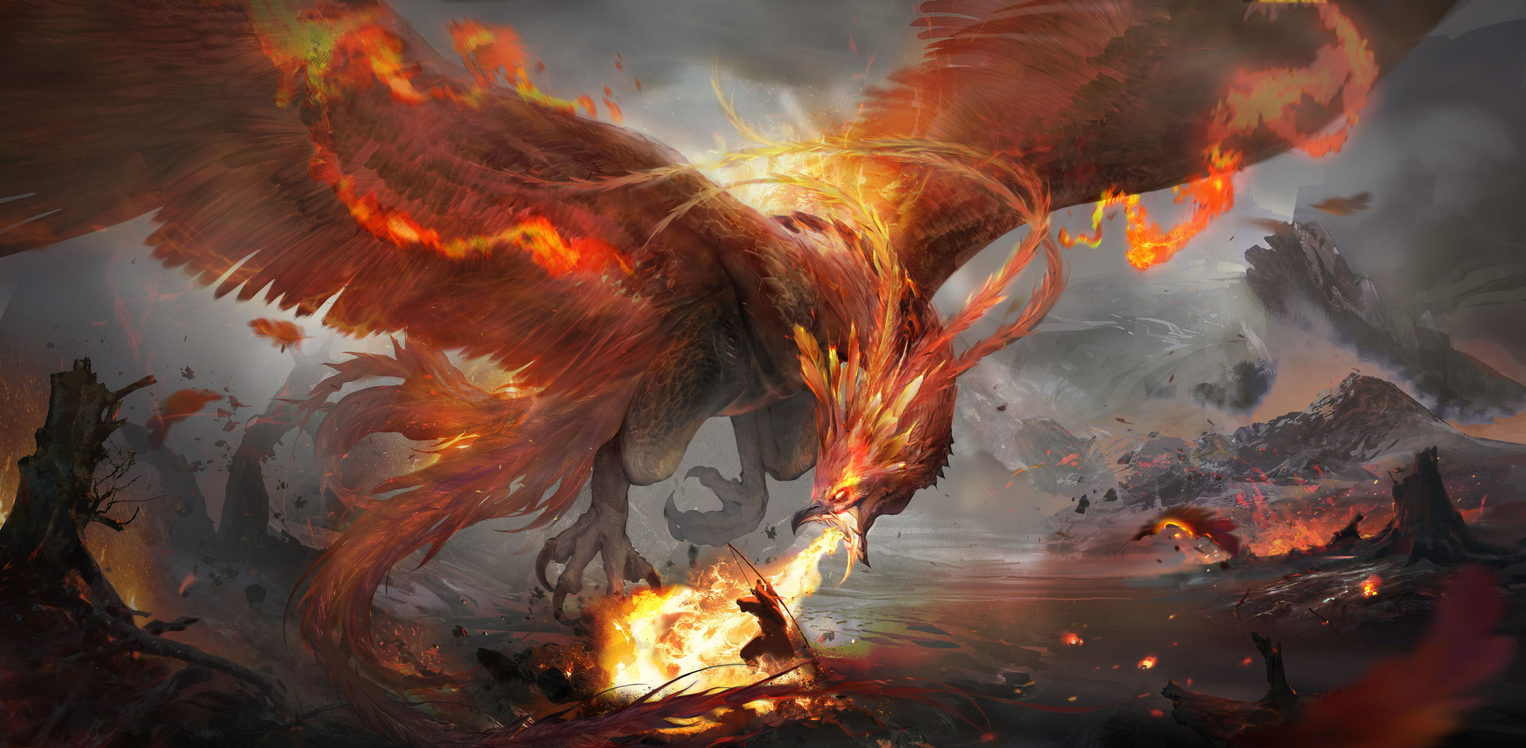 This concept design is inspired by traditional Chinese mythology, reimagining the Vermilion Bird (Zhuque) as a powerful, destructive boss-scale creature. The work explores the symbolism of fire, rebirth, and divine wrath through dynamic composition and dramatic lighting, translating mythological imagery into a contemporary entertainment design context.