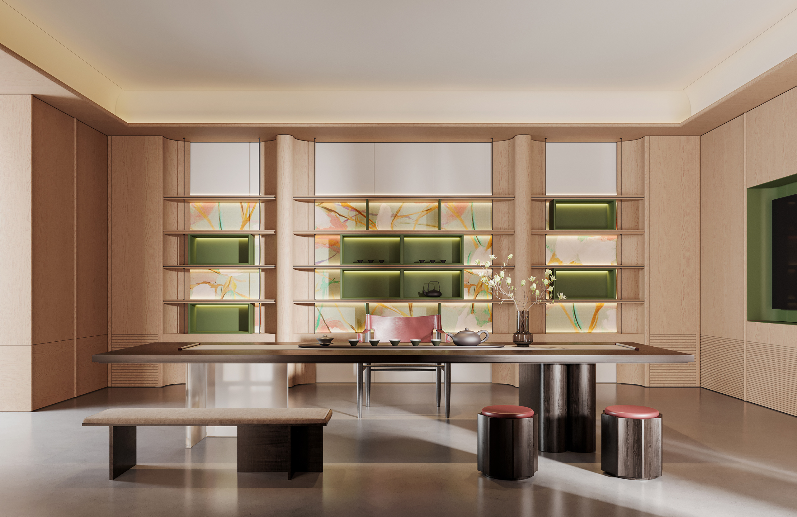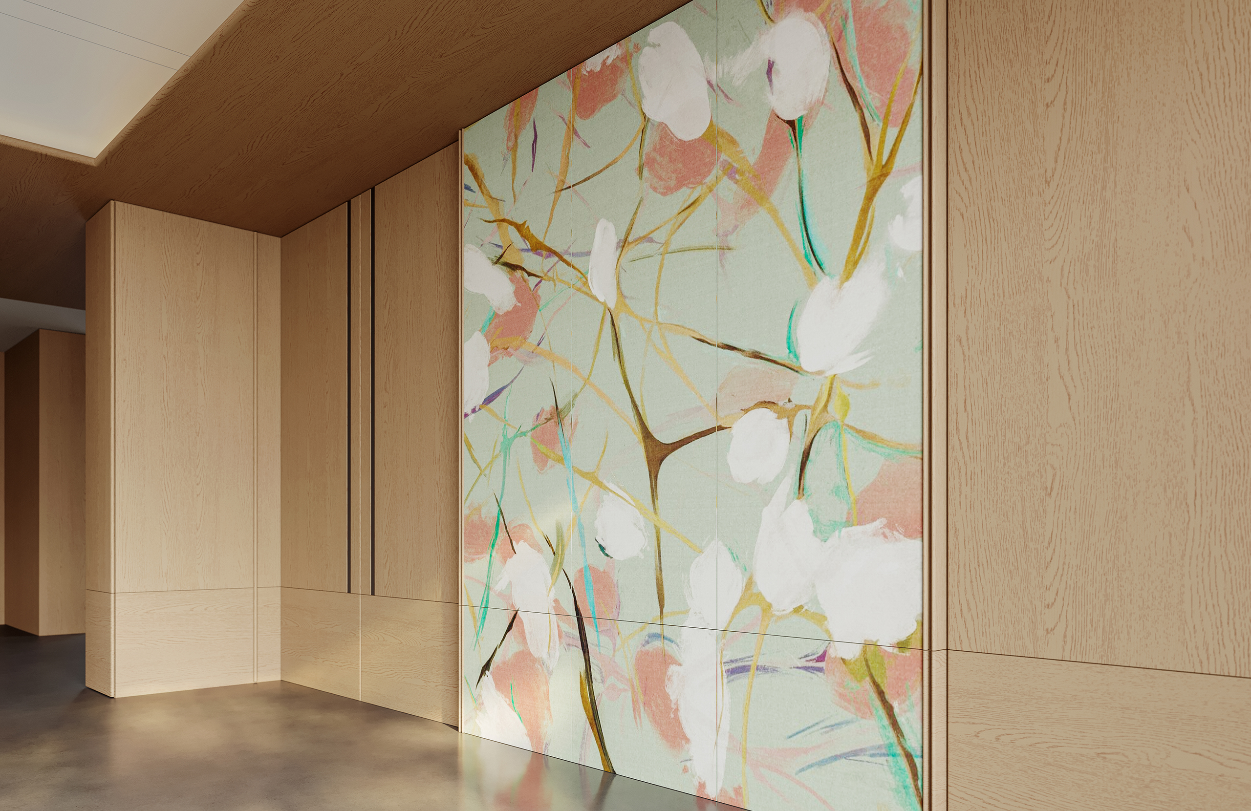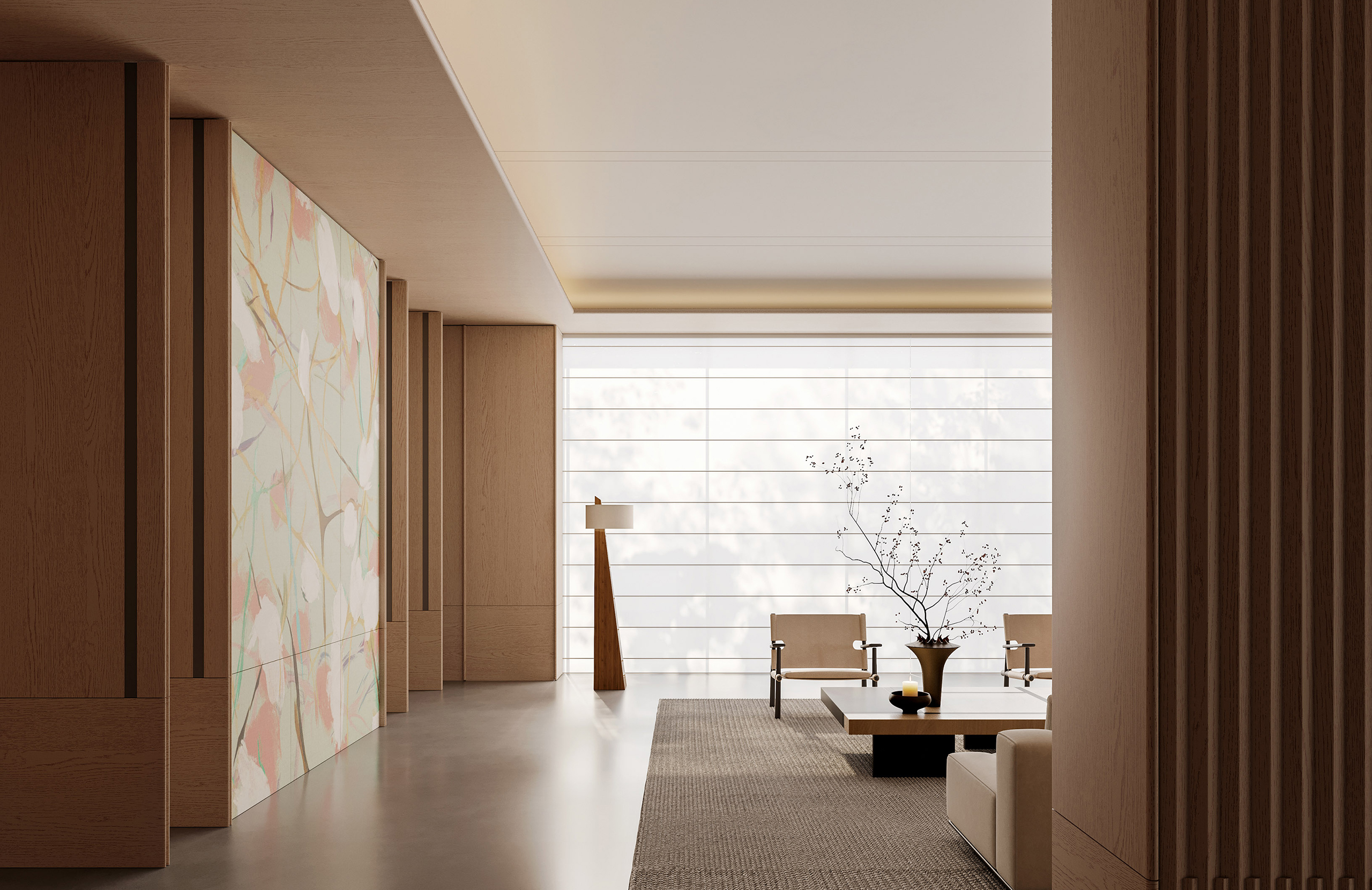 Spring Mambo draws inspiration from blooming magnolias, blending traditional Oriental ink painting with modern illustration to capture spring's rhythm and hope. In Chinese culture, magnolias symbolize vitality and are particularly beloved in cities like Shanghai, where they carry deep regional significance. The term "Mambo" represents rhythm and energy, allowing patterns to transcend tradition. Through abstract decorative techniques, we reconstruct spring imagery to achieve a subtle cultural expression and natural emotional flow perfect for contemporary homes. Breaking away from conventional continuous patterns, this work adopts composition techniques from Chinese bird-and-flower scrolls to enhance visual storytelling. The floral structure strikes a balance between abstraction and representation, using both ink wash and illustration to create layered Oriental textures. The color palette draws from Qing Dynasty enamelware, with striking contrasts of malachite green and pink that showcase a fresh vitality in Chinese design. This approach moves beyond traditional monotony to infuse modern spaces with contemporary Chinese aesthetics. Design transcends mere decoration to become emotional expression within a space. Spring Mambo evokes collective memories of cities, seasons, and family through magnolias, transforming patterns into "emotional anchors" within living environments. With cultural depth that remains accessible, it brings unique warmth and nostalgia to homes. The design subtly yet effectively integrates local culture into daily life through modern visual language, strengthening users' sense of cultural identity in their living spaces. Craftsmanship-wise, this piece employs UV inkjet printing with low-temperature curing solutions to minimize harmful emissions typically produced at high temperatures. The use of formaldehyde-free boards and water-based inks reduces VOC emissions, prioritizing user health. The printing equipment features an ink recycling system that minimizes waste and improves resource efficiency. The pattern can seamlessly extend across various home surfaces, supporting modular applications that balance aesthetic appeal with sustainability. In a home market dominated by wood grains and solid colors, Spring Mambo represents an innovative approach to visual patterning, introducing culturally distinctive design language that meets growing demands for personalization and artistic expression. By refining local cultural symbols and integrating thoughtful color aesthetics with emotional resonance, it establishes a "young national trend" brand identity.